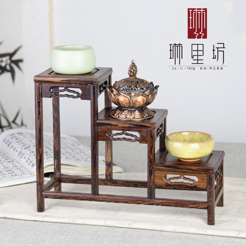 实木紫砂壶架子茶具架小博古架鸡翅木多宝阁中式展示架工艺品摆件