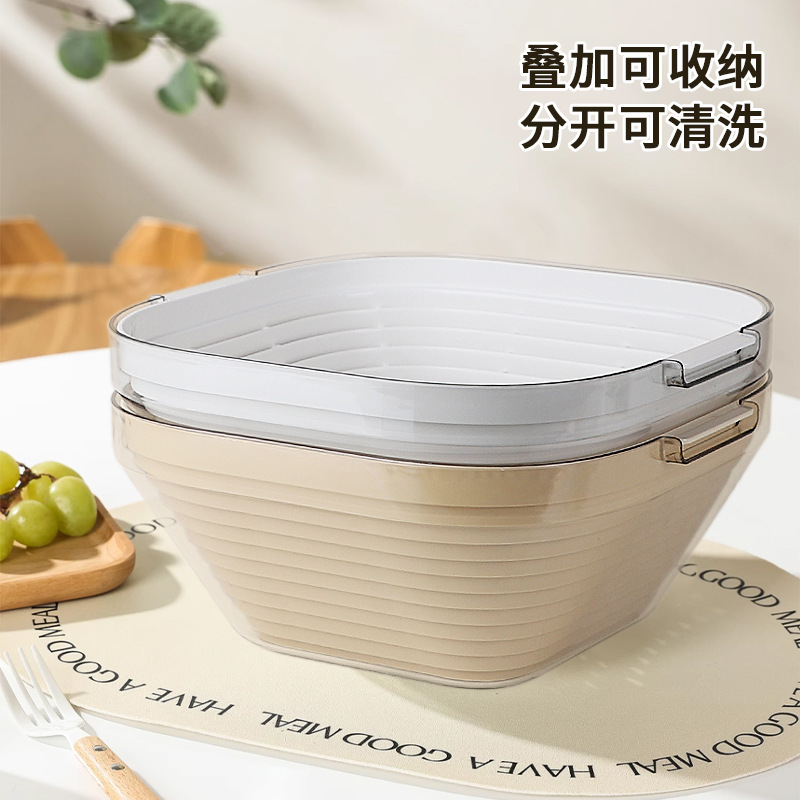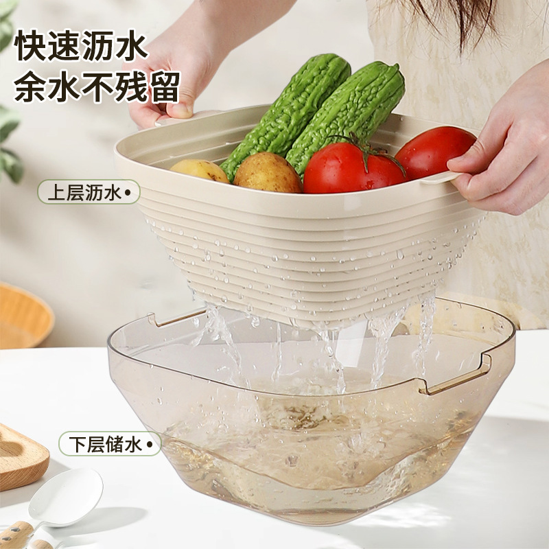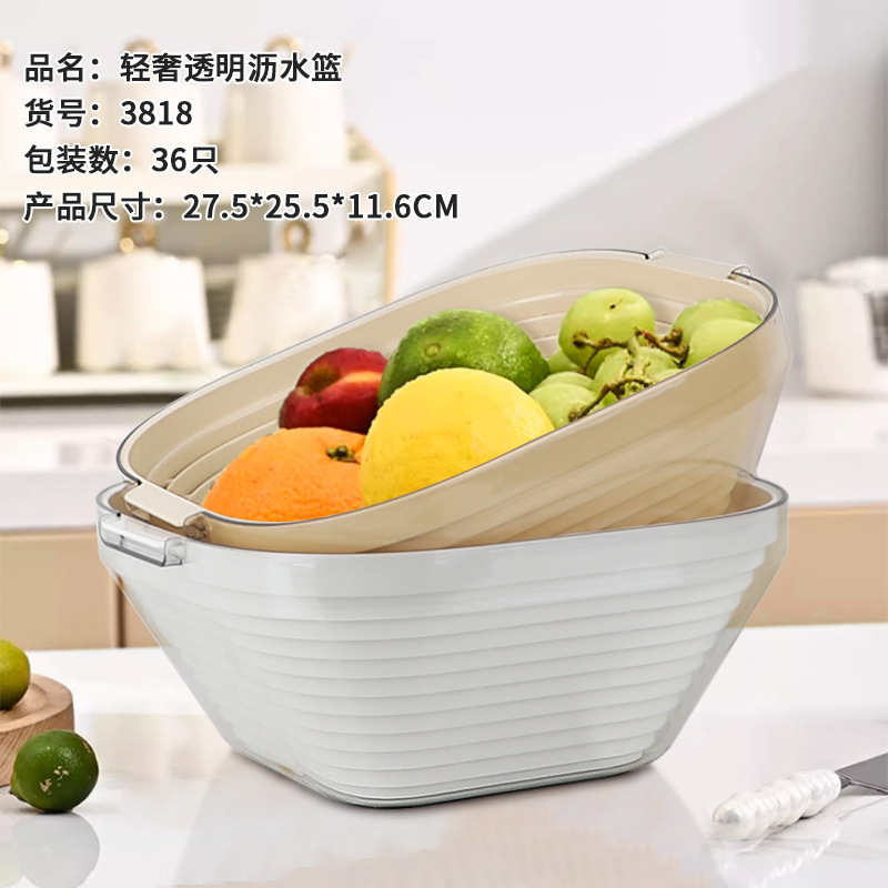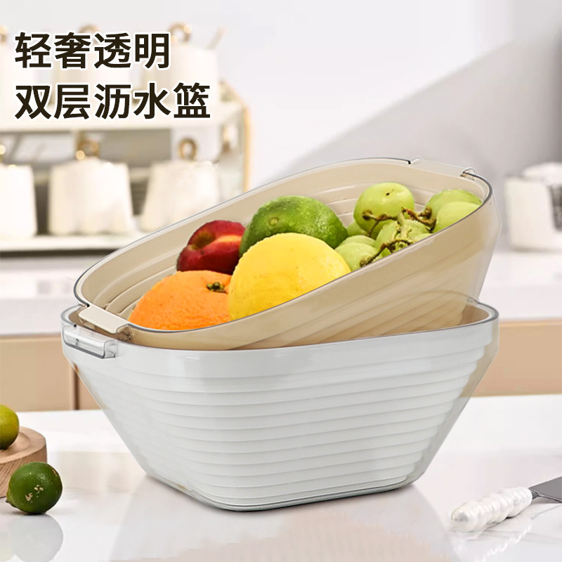 轻奢PET透明双层果蔬沥水篮厨房家用大容量洗菜篮水果篮塑料果篮