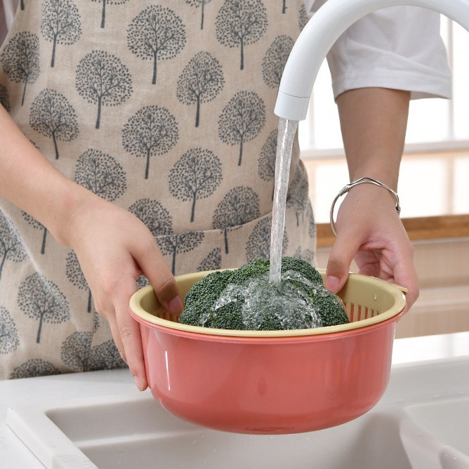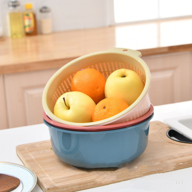 沥水篮双层塑料中号厨房塑料果蔬篮圆形 洗菜篮