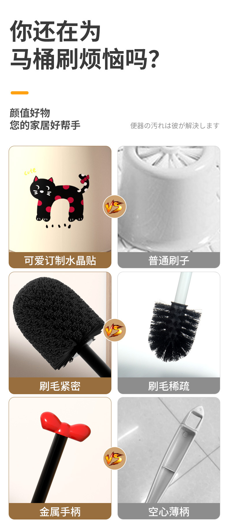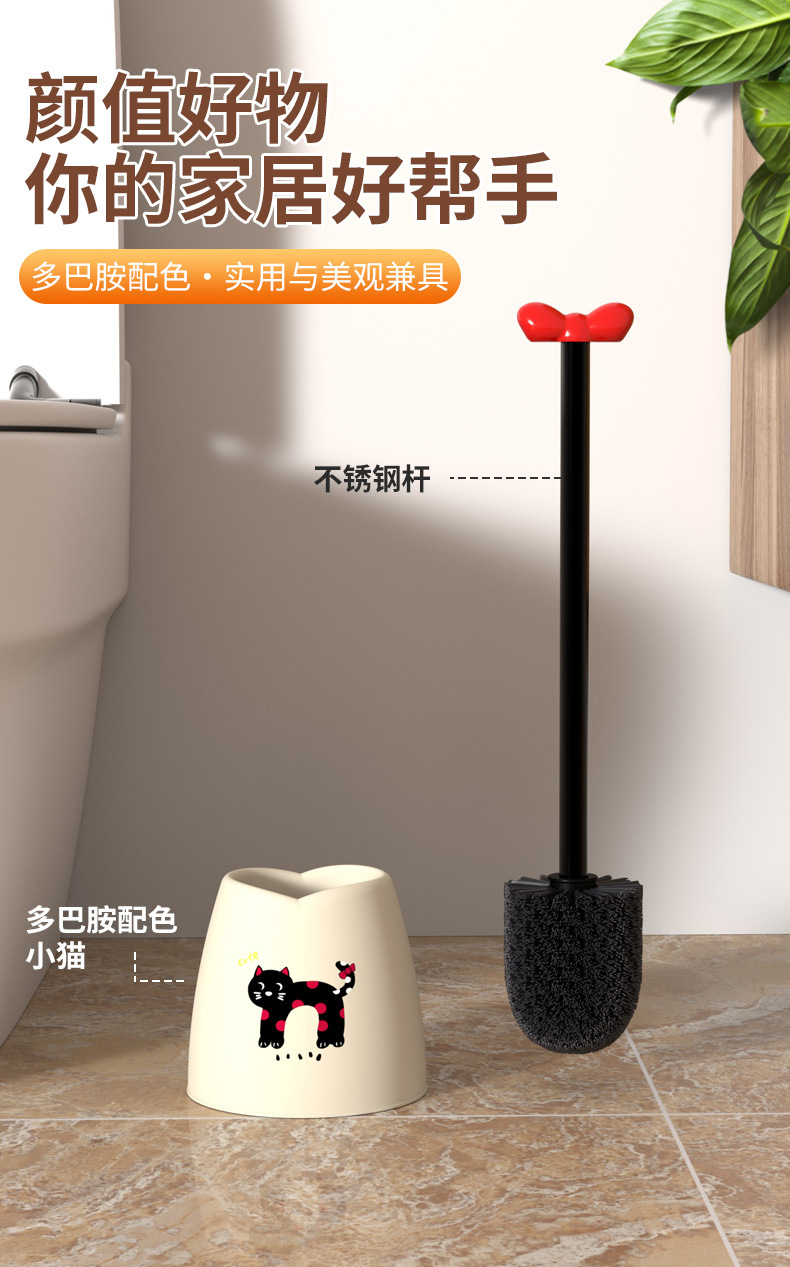 猫咪马桶刷多巴胺厕所清洁高颜值马桶刷带底座圆形无死角清洁刷
