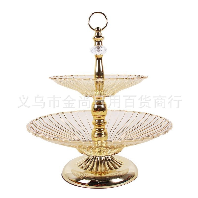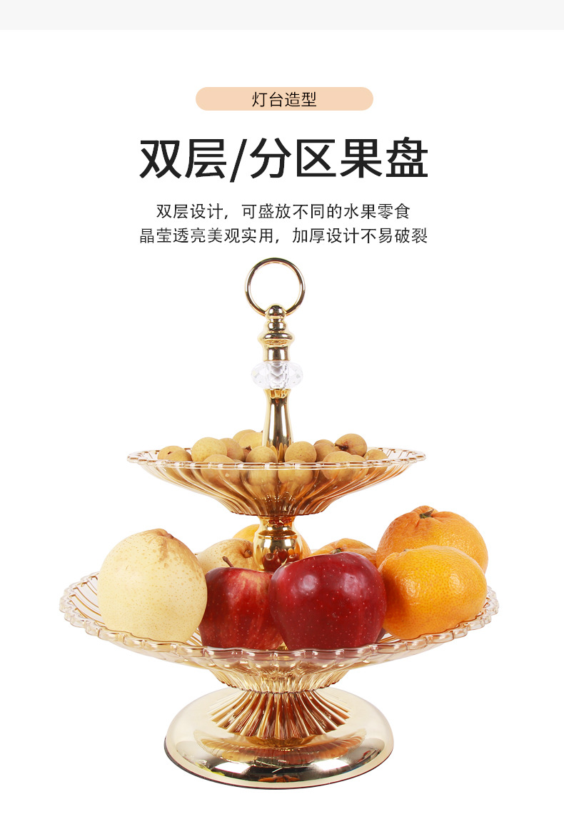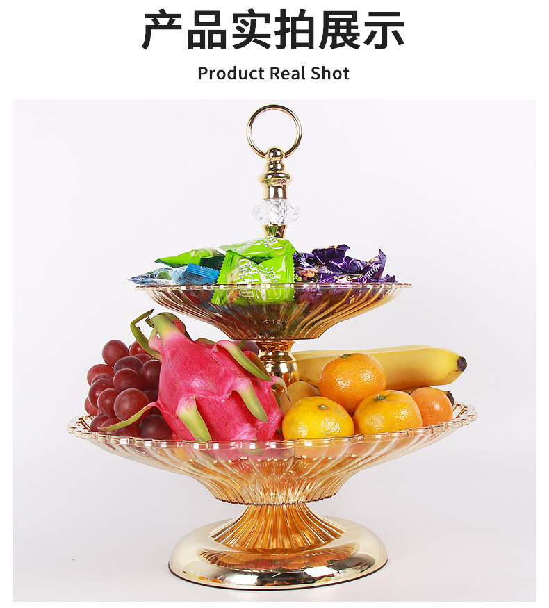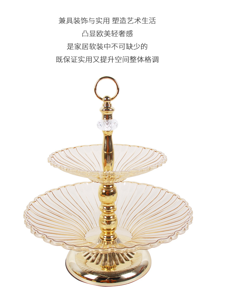 简约欧式装饰果盘水晶双层果盘家居甜品展示架茶几餐桌KTV用大号