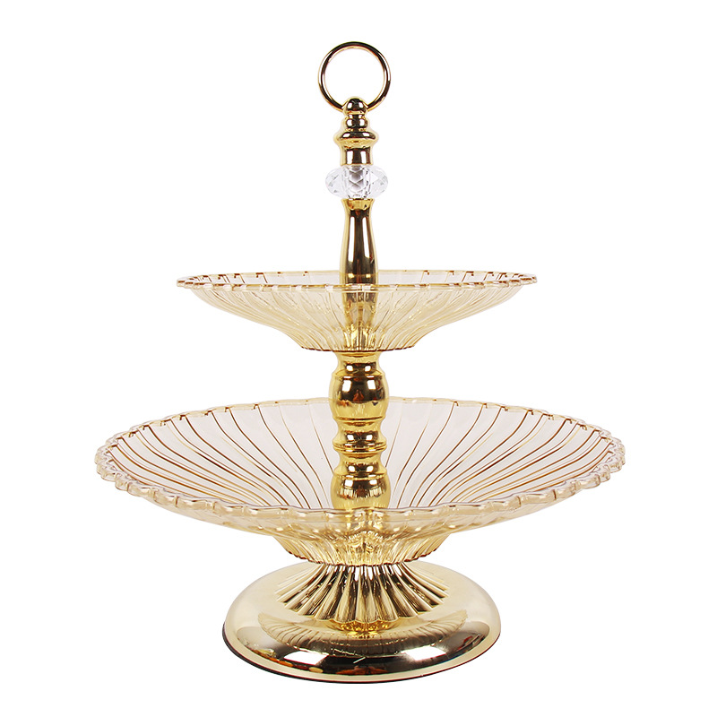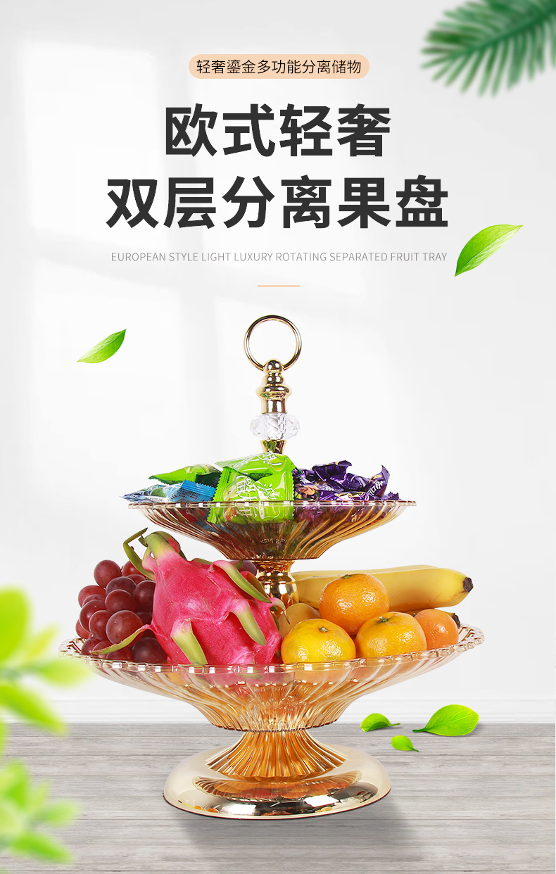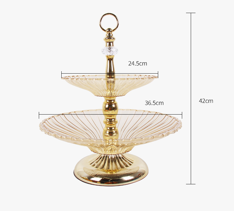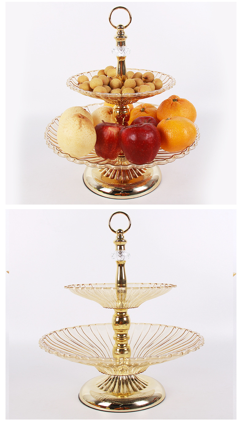 简约欧式装饰果盘水晶双层果盘家居甜品展示架茶几餐桌KTV用大号