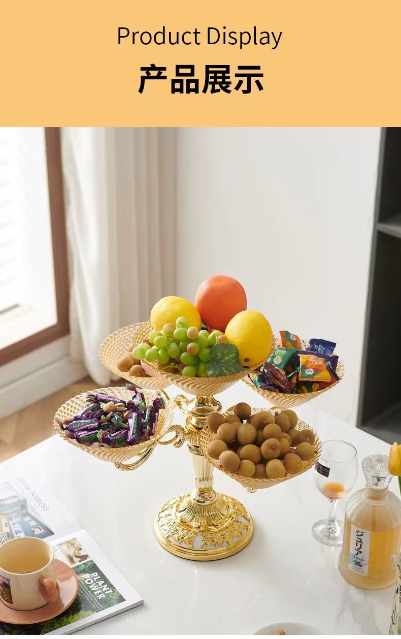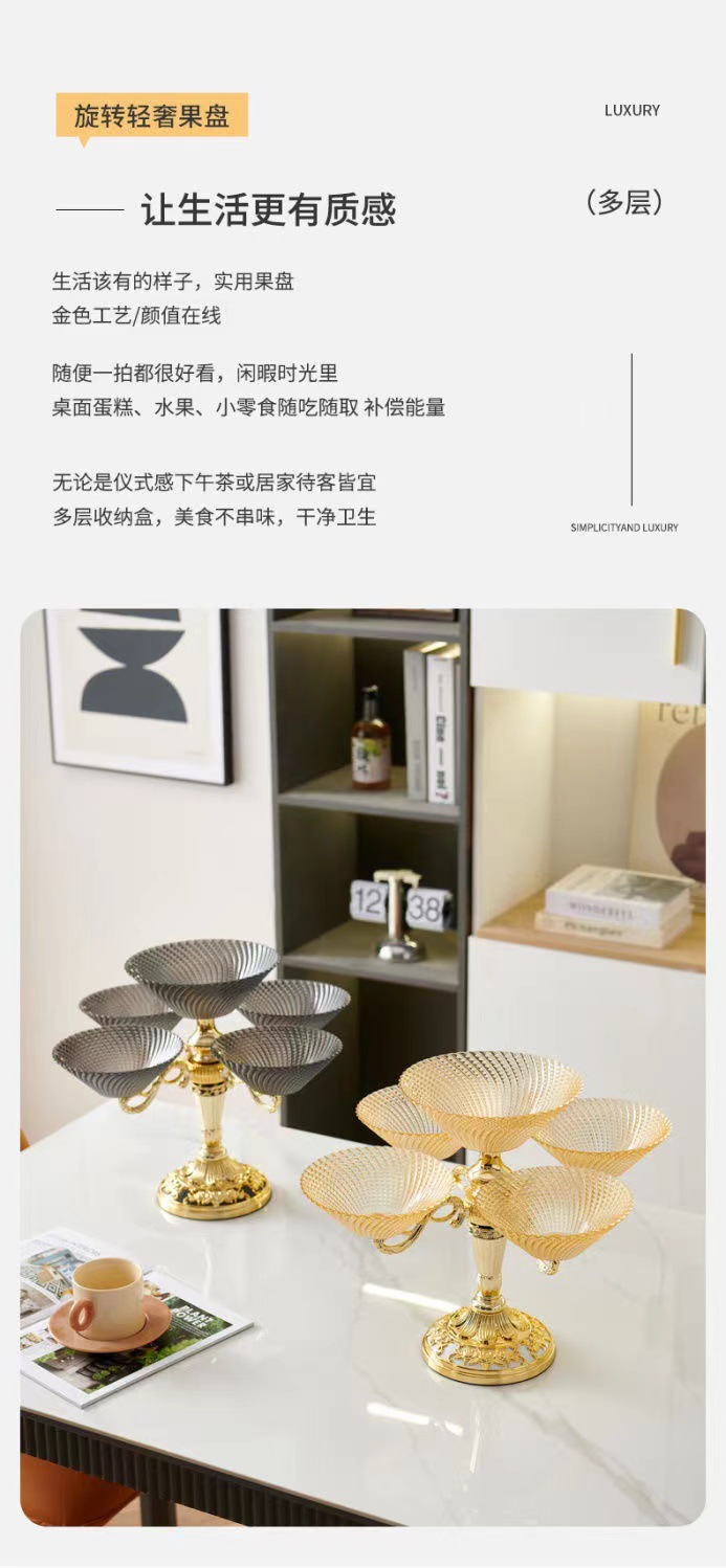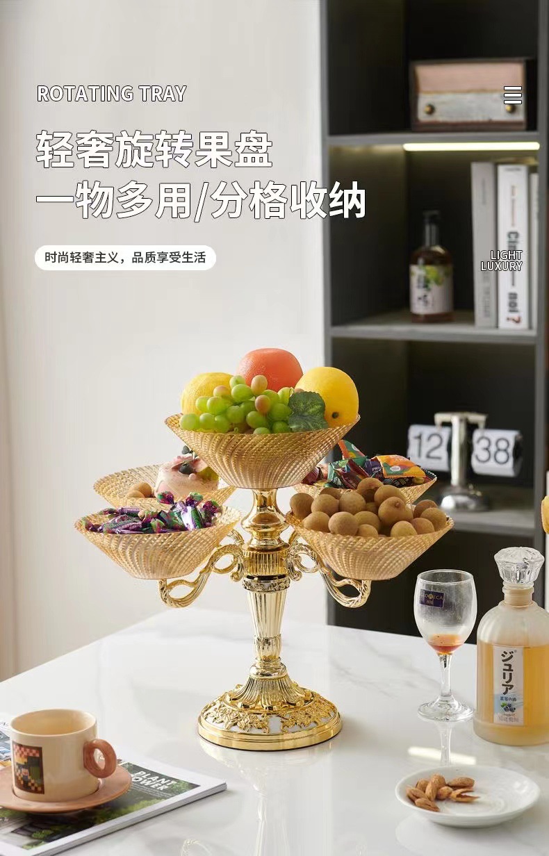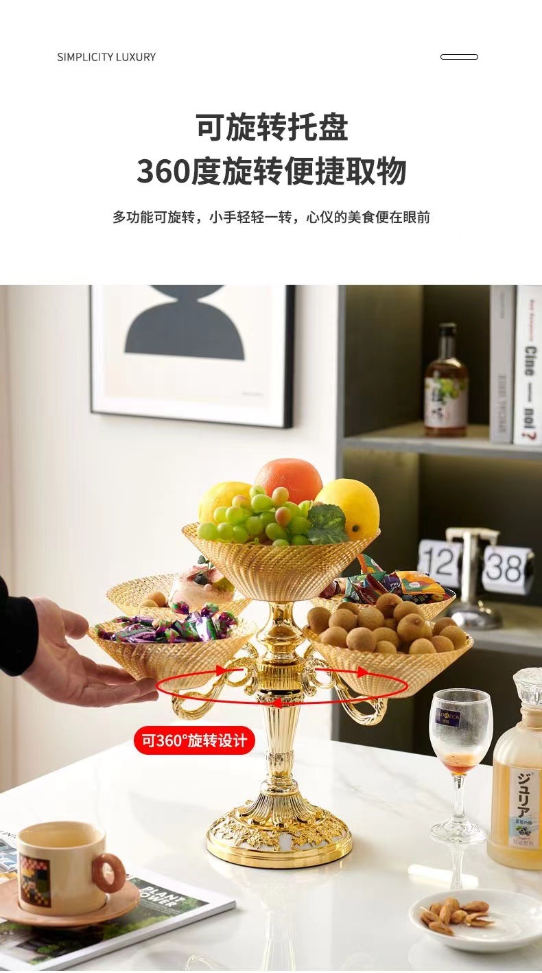 多层零食结婚乔迁喜庆果盘 轻奢豪华旋转果盘高端水果盘客厅上档