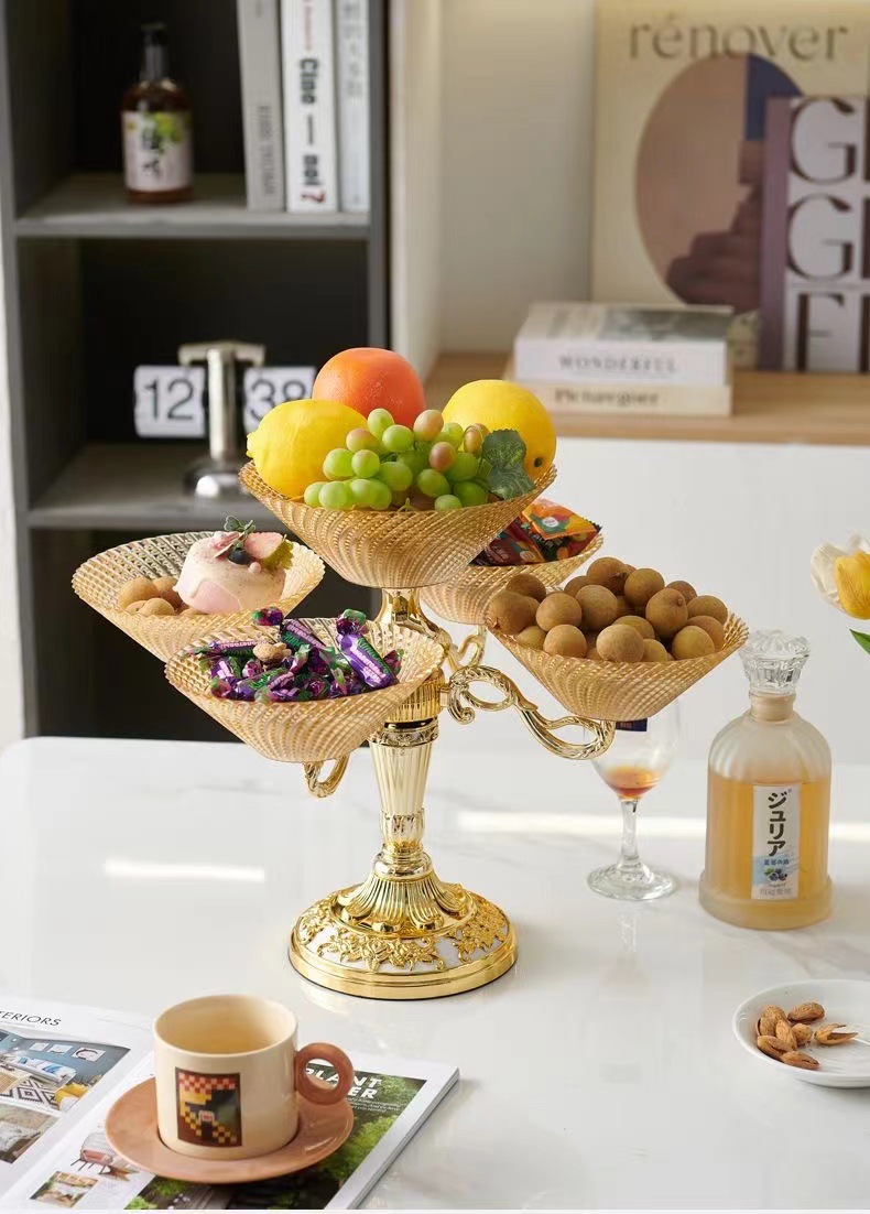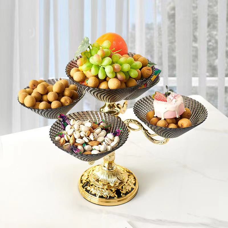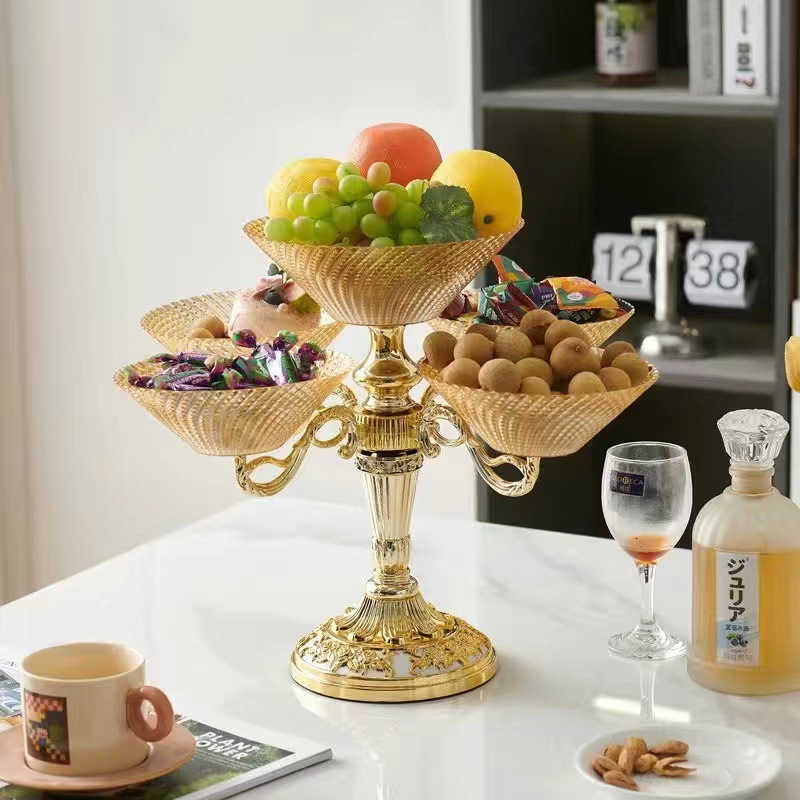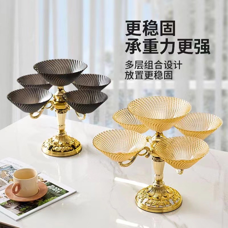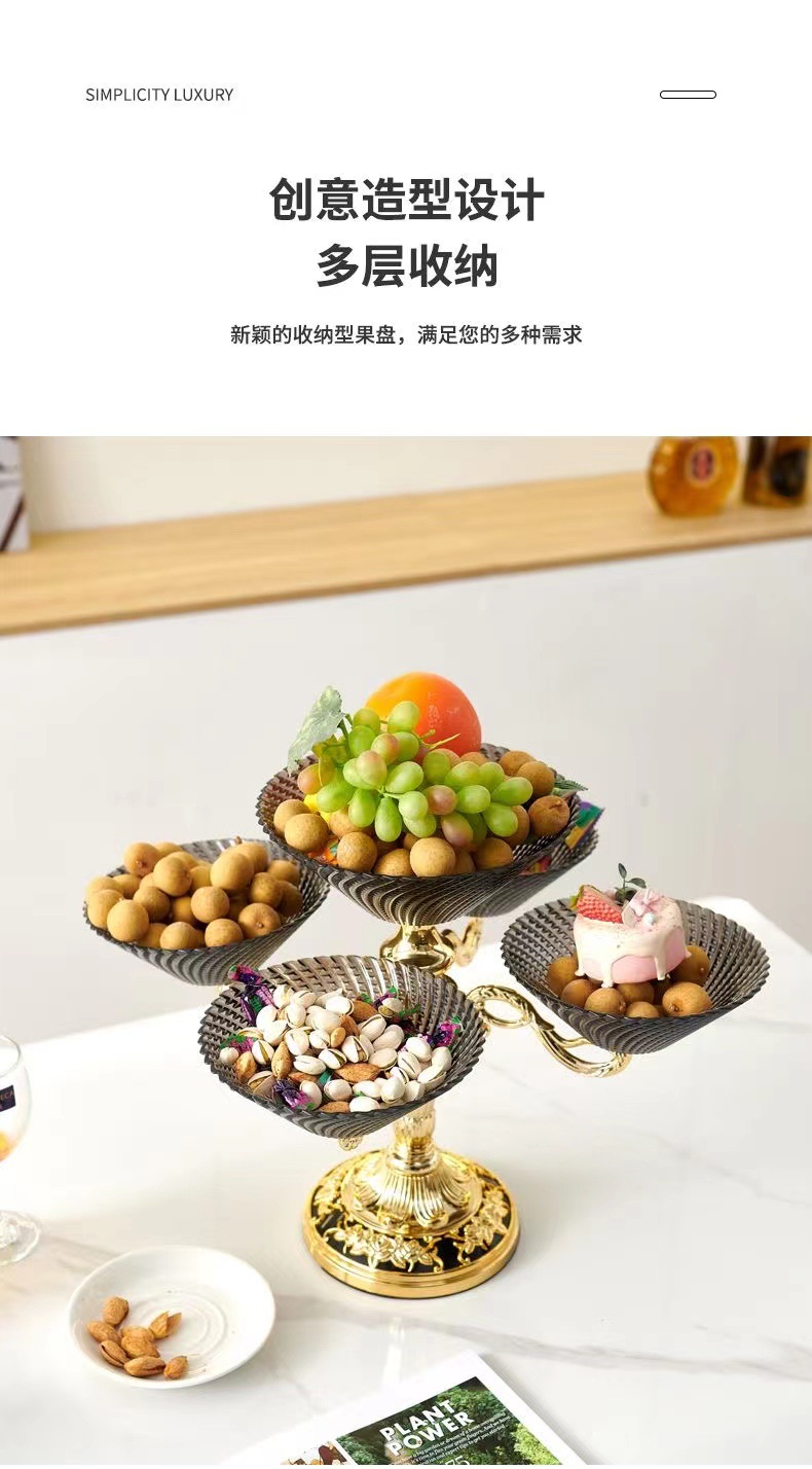 多层零食结婚乔迁喜庆果盘 轻奢豪华旋转果盘高端水果盘客厅上档