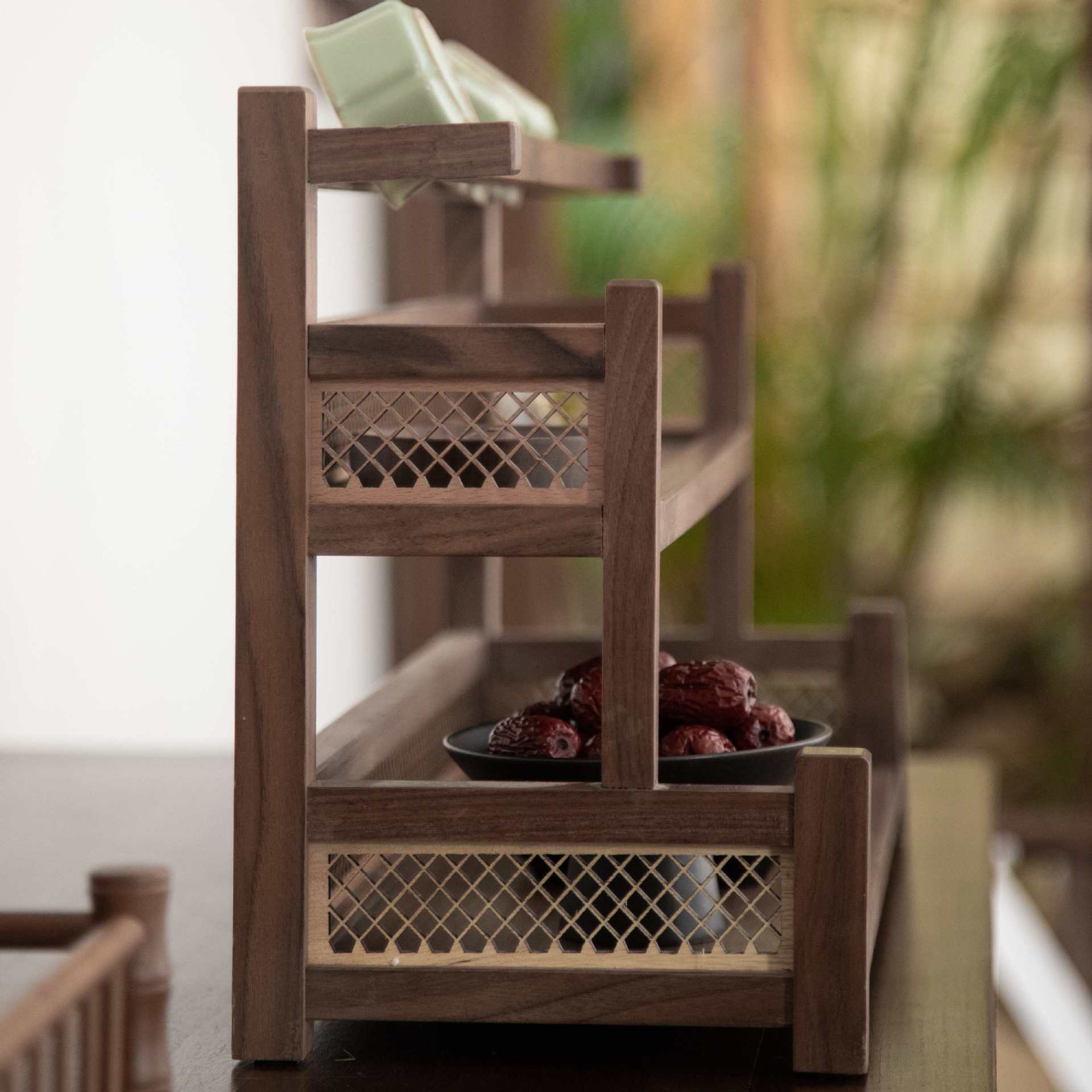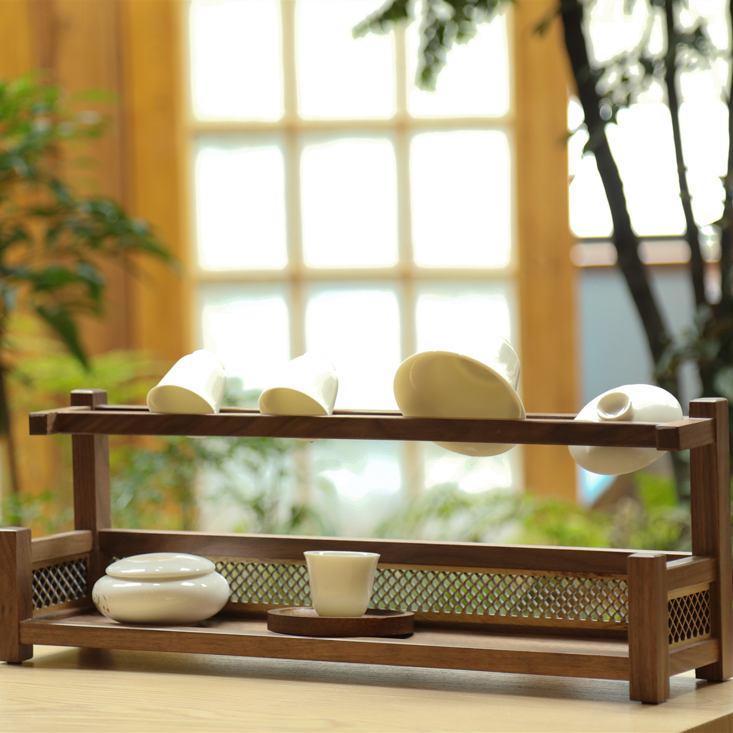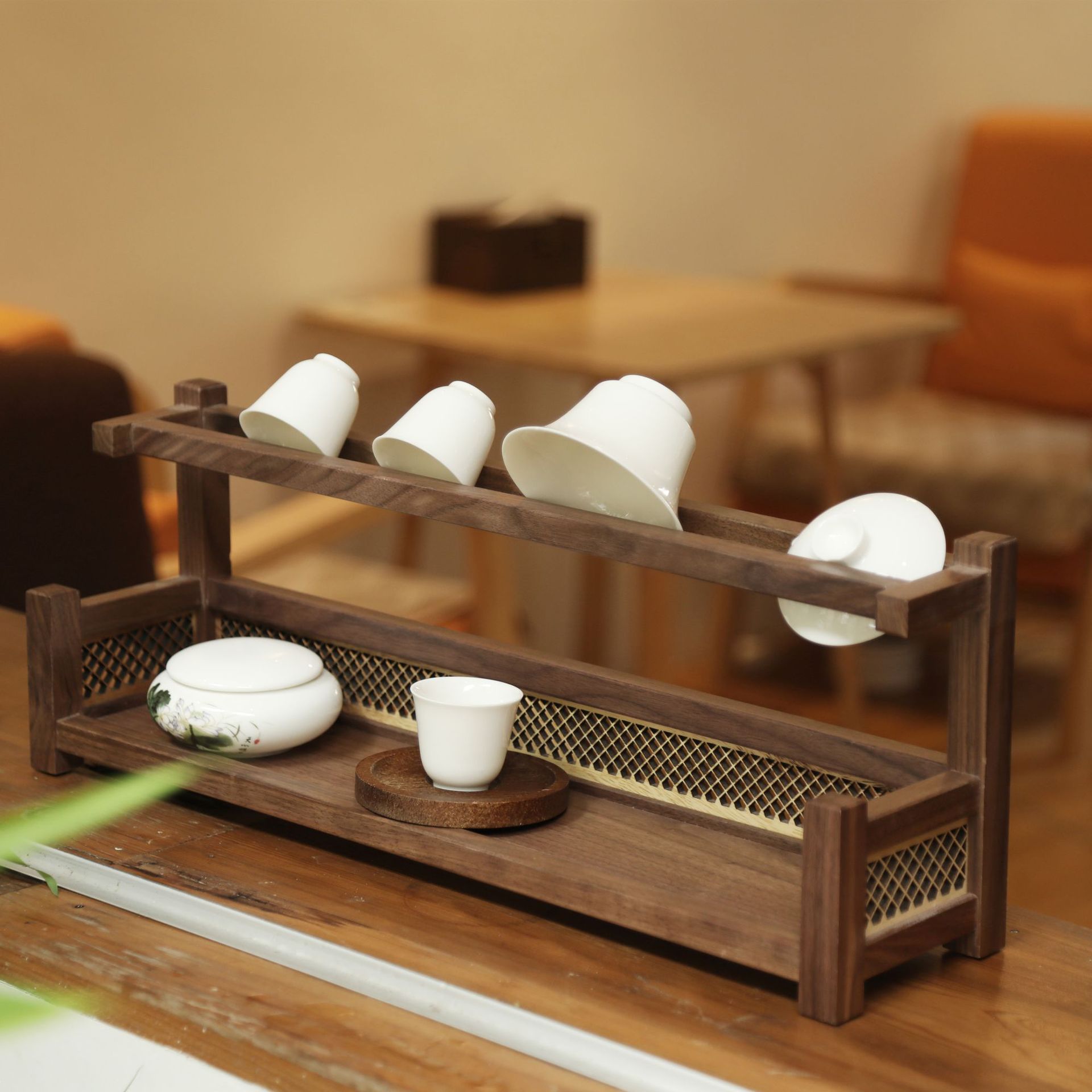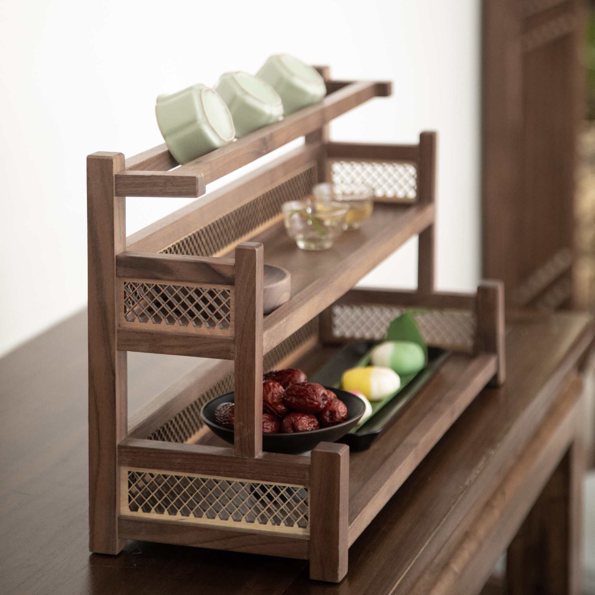 超艺新中式北美黑胡桃观澜茶杯架实木博古架茶杯收纳摆放置物架
