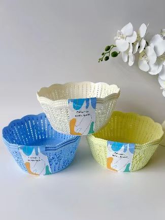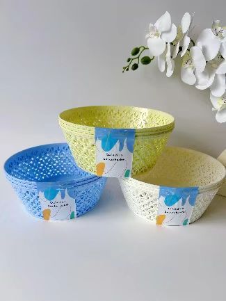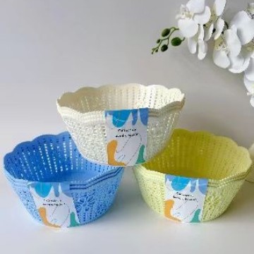 圆形创意零食糖果盘干果盘塑料果盆收纳篮糖果色镂空花边水果盘