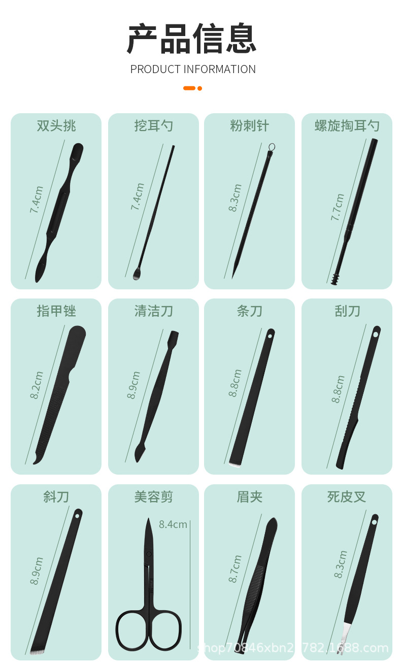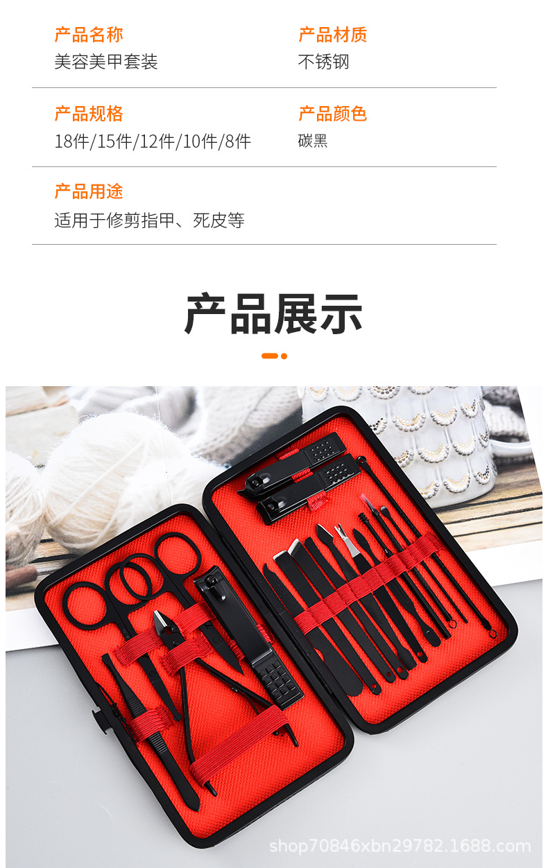 现货黑色18件套指甲刀套装修甲美甲指甲剪全套礼品工具批发指甲钳
