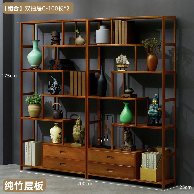 博古架实木中式书架茶家具酒柜花架隔断柜客厅摆件多层落地置物架
