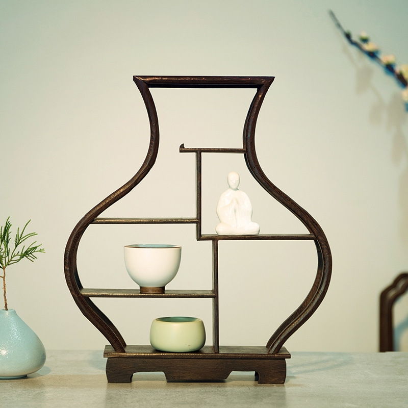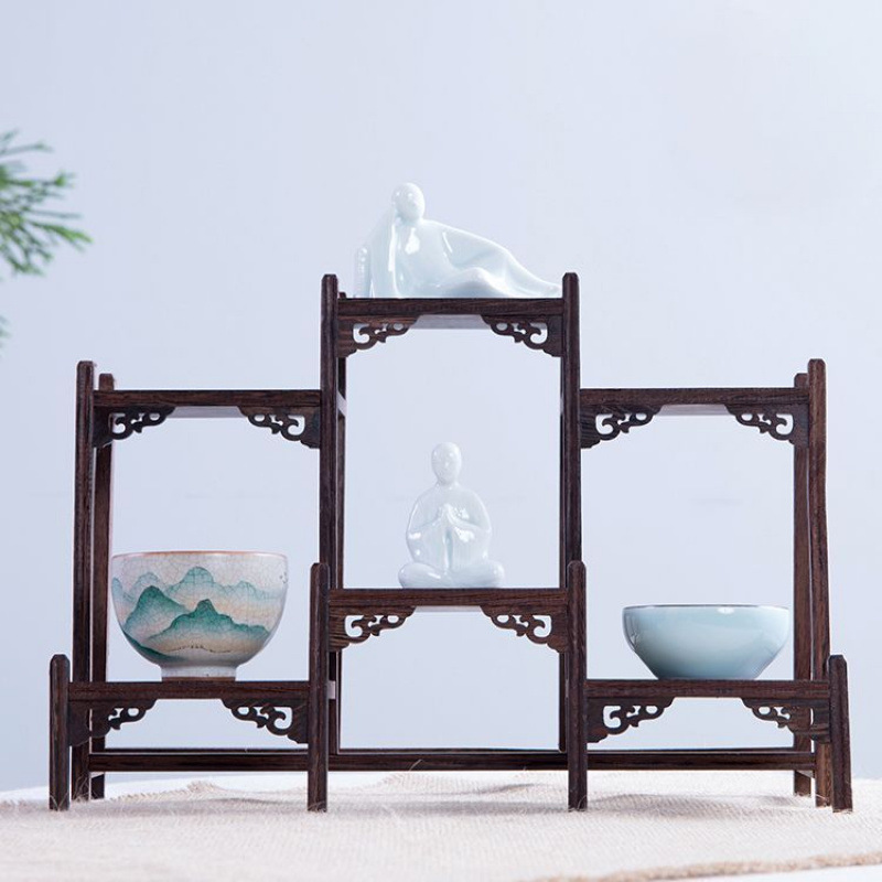 博古架小型桌面博古架考古古代实木置物架茶桌摆件架厂供应链批发