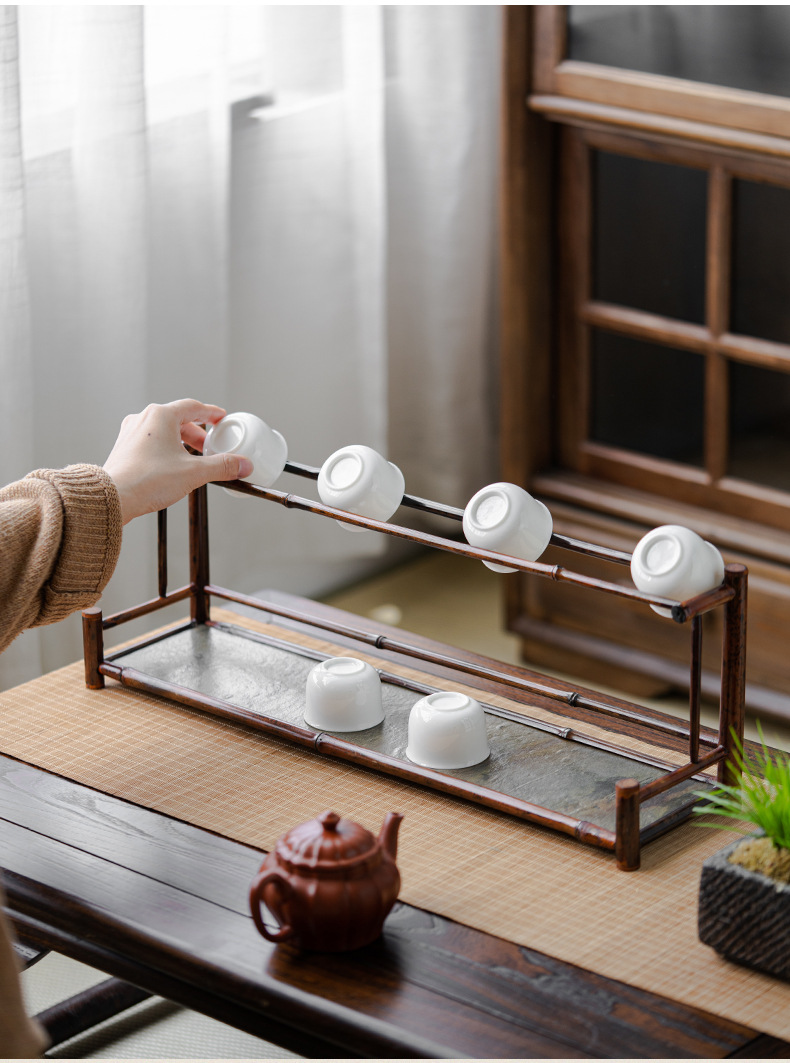 中式茶杯架子 茶具展示架 沥水架桌面收纳架置物架台式博古架摆件