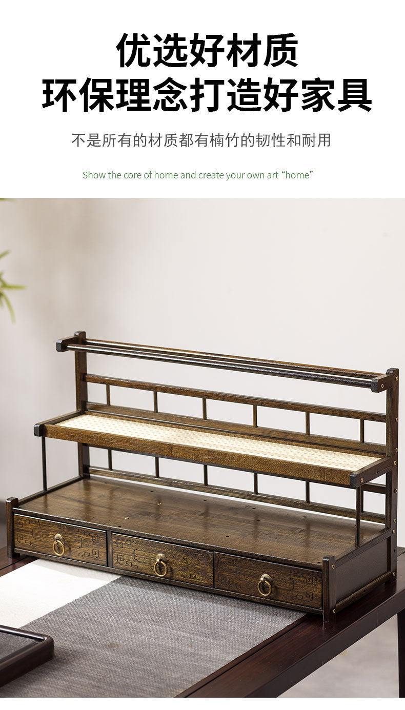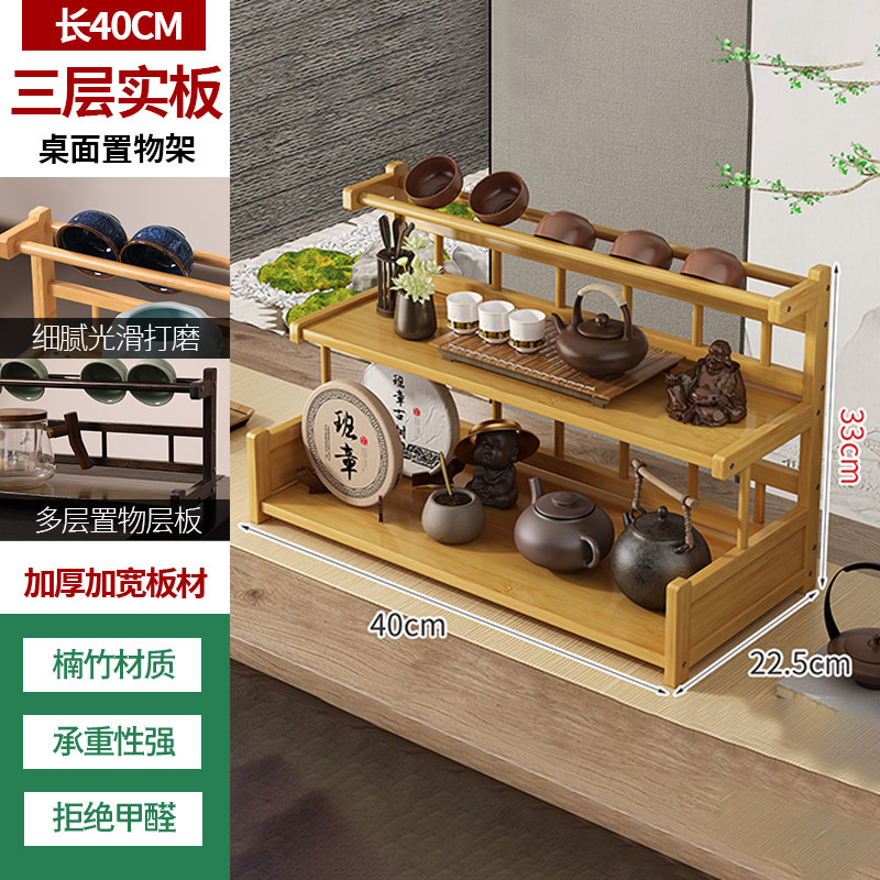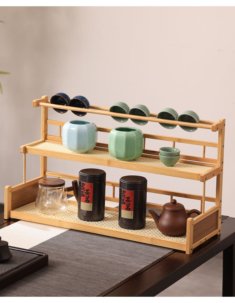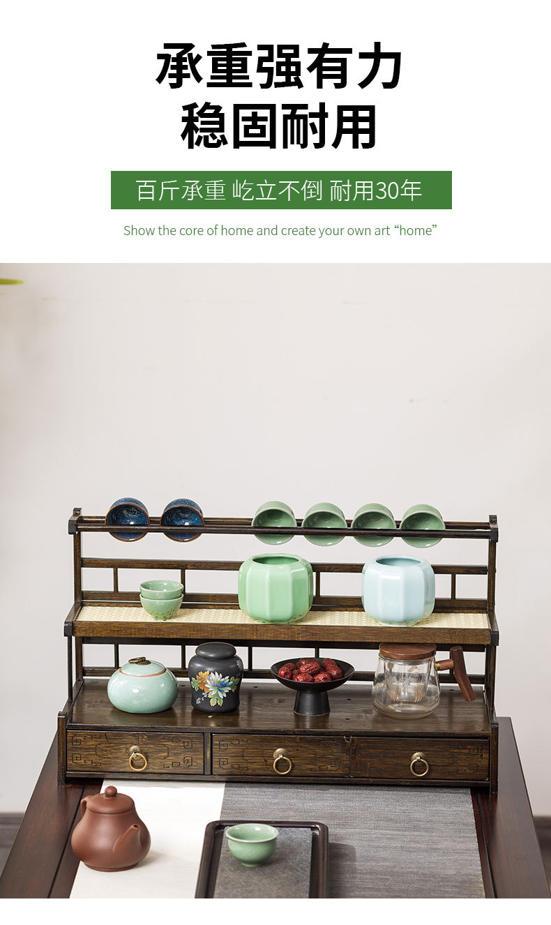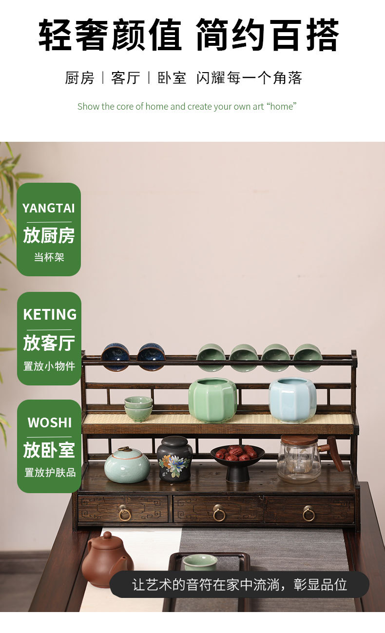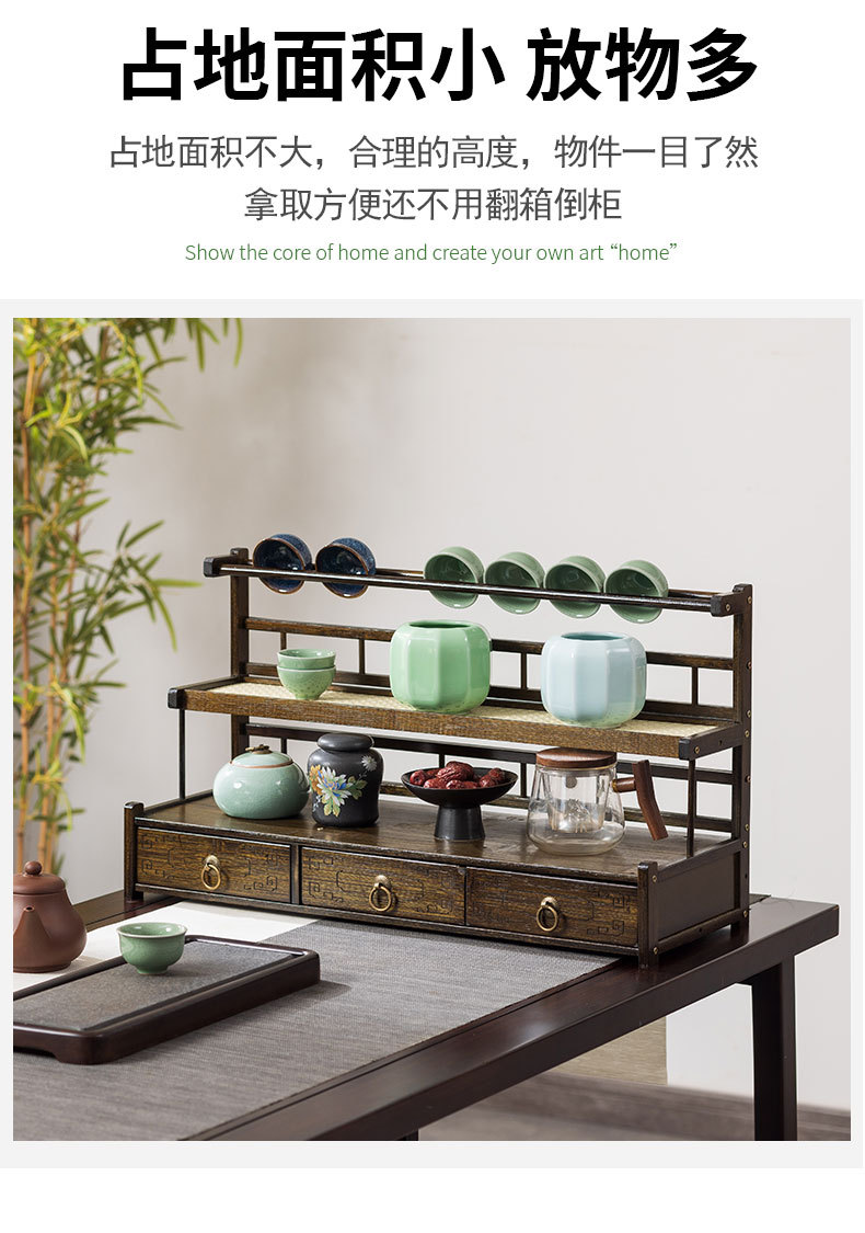 桌面博古架新中式茶具茶杯置物架小型非实木多功能紫砂壶收纳架子