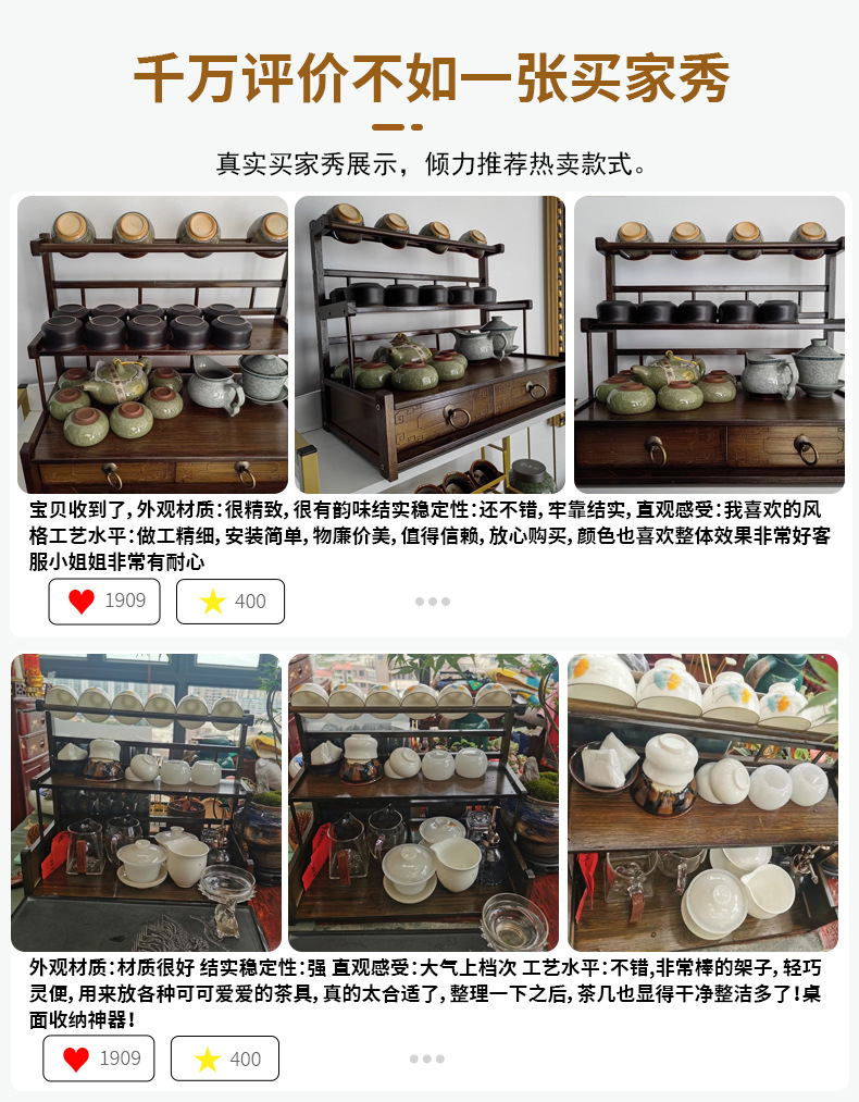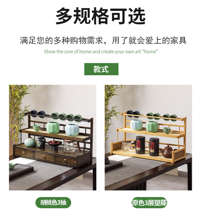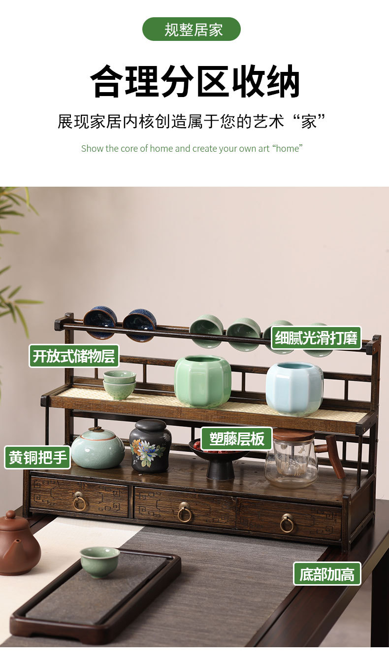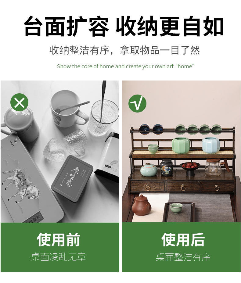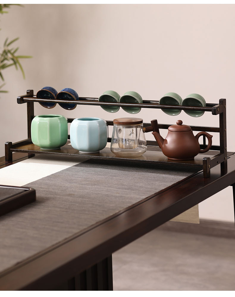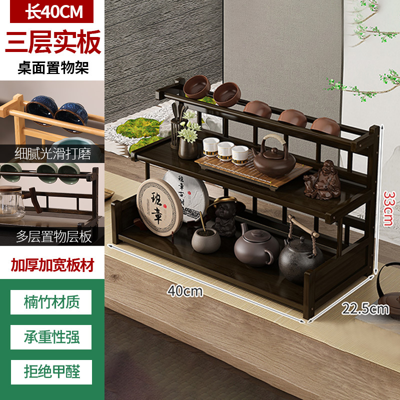 桌面博古架新中式茶具茶杯置物架小型非实木多功能紫砂壶收纳架子