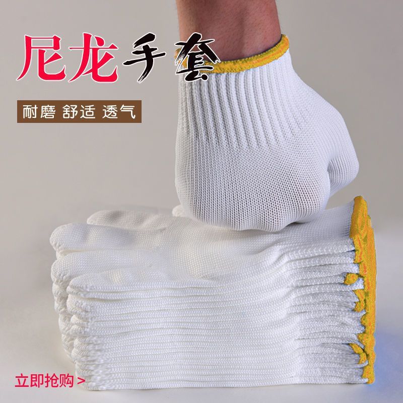 尼龙手套十针手套工地上用手套劳保耐磨线手套工厂包邮发货白色