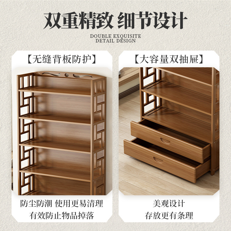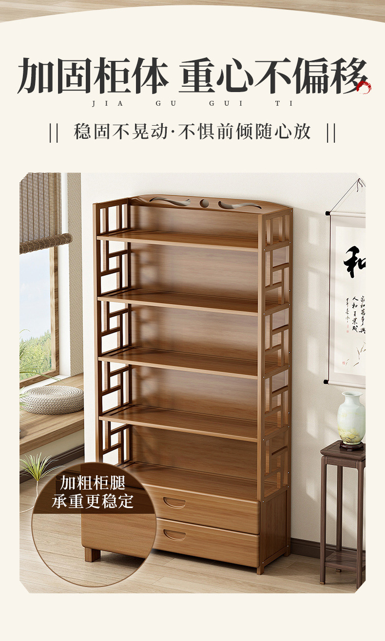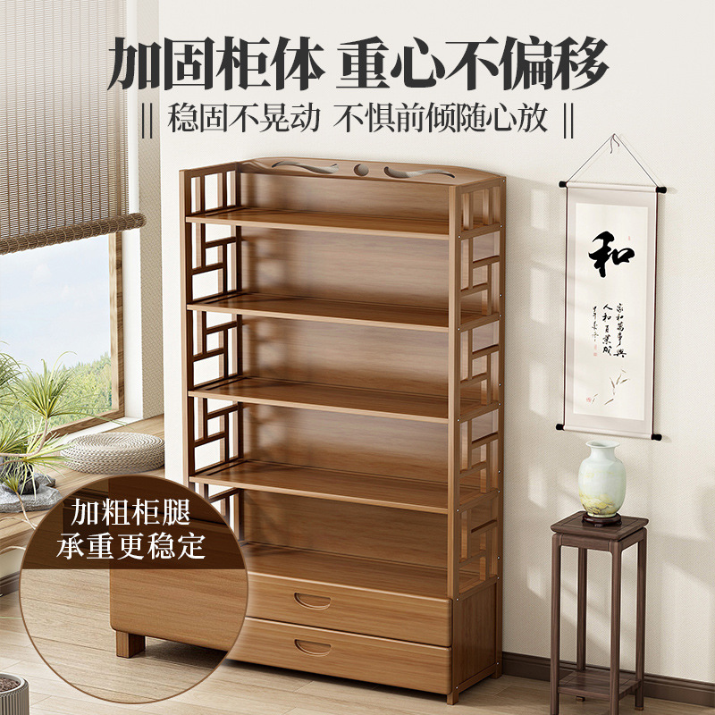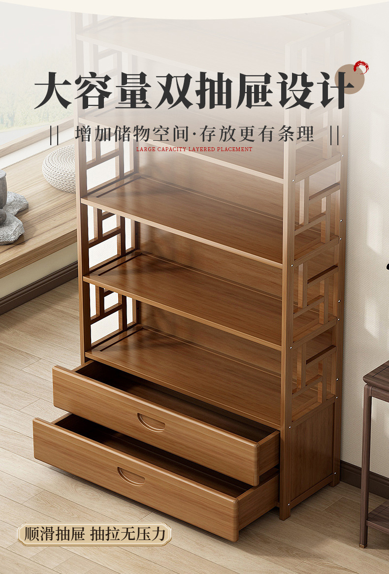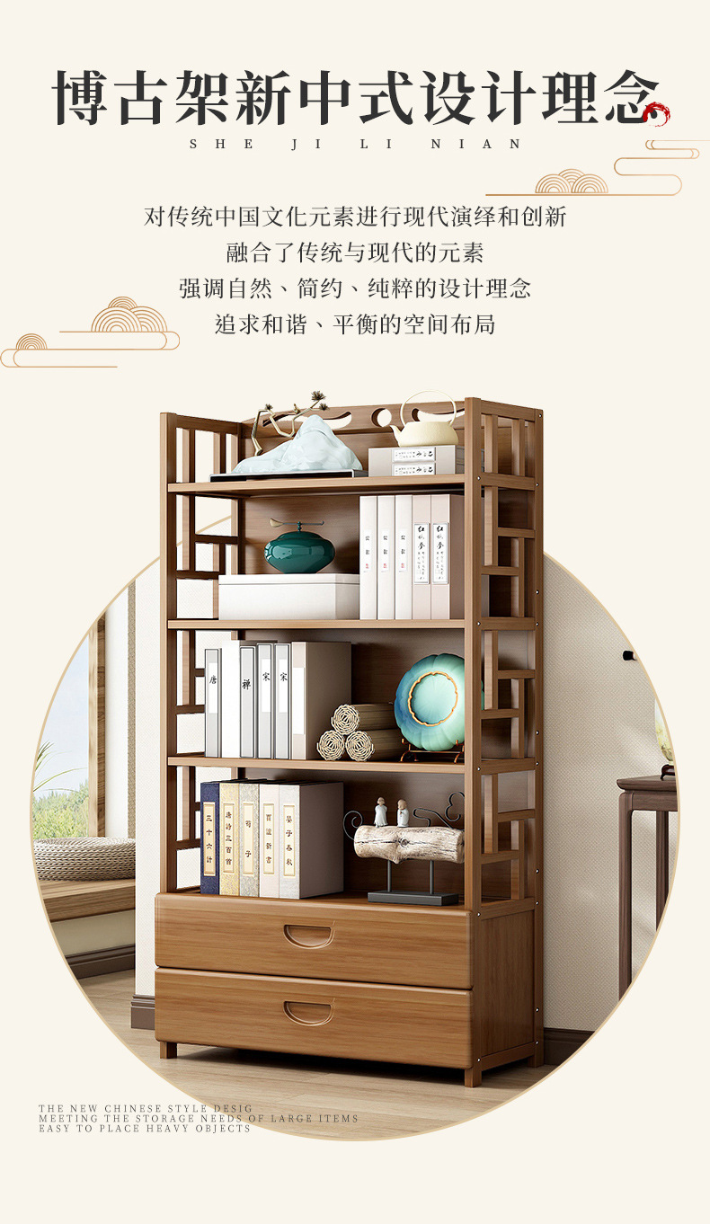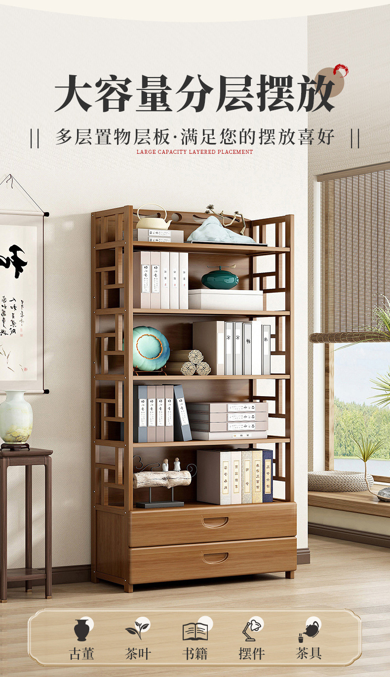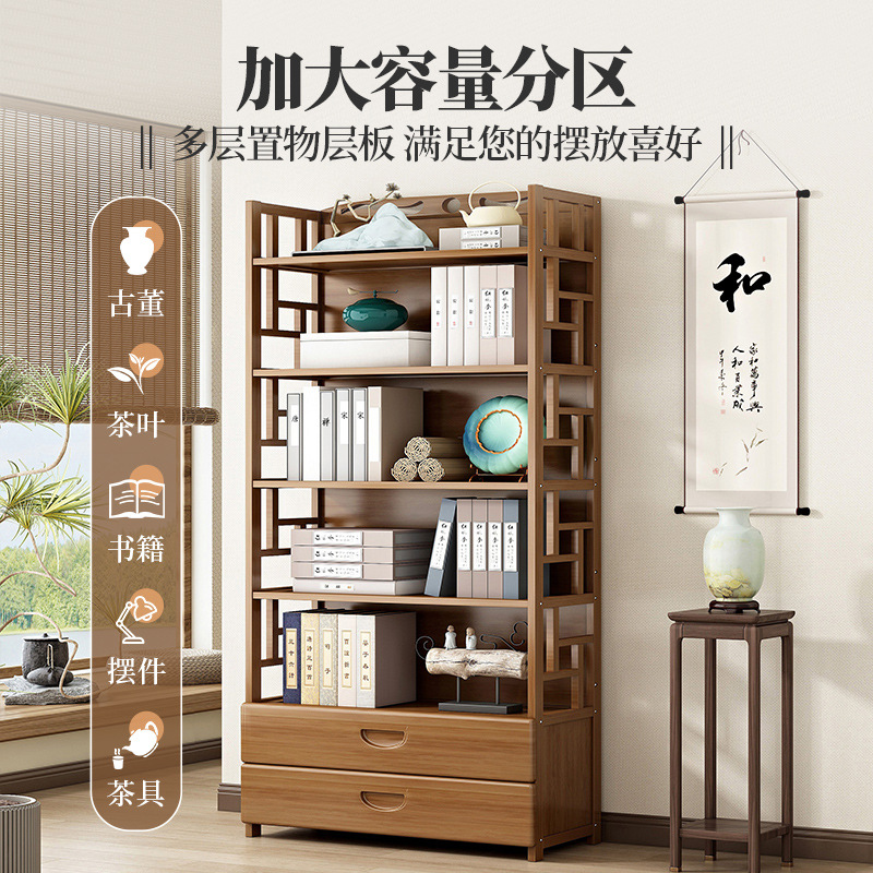 博古架带抽屉实木新中式置物架多宝阁茶具茶叶展示柜客厅摆件架子