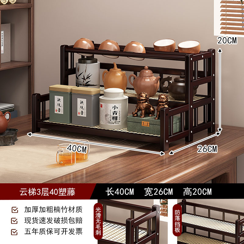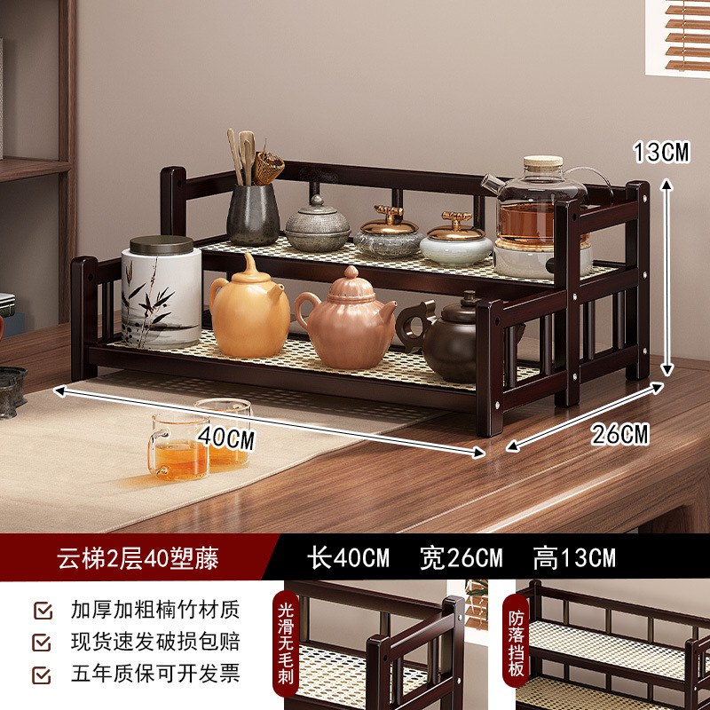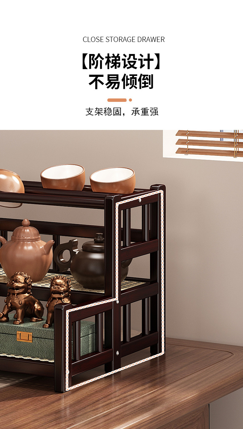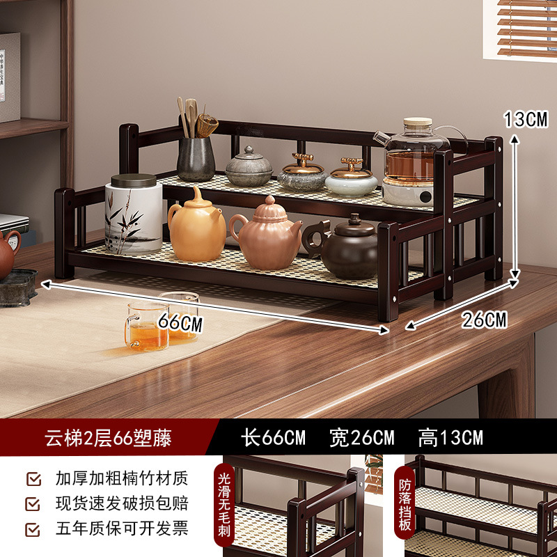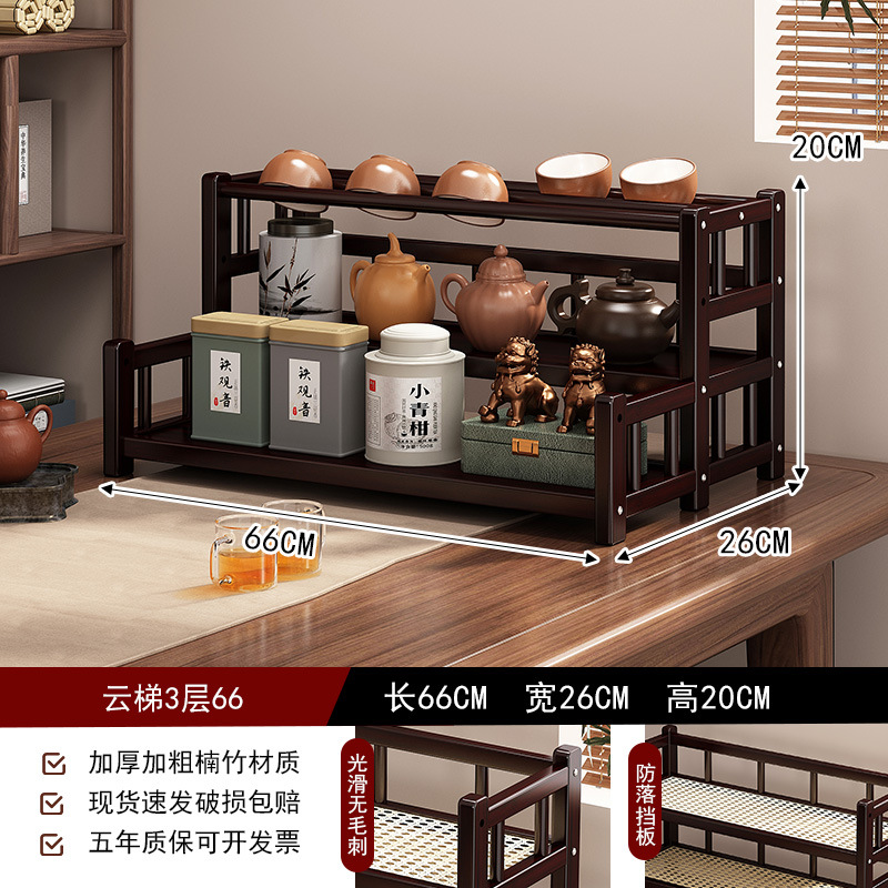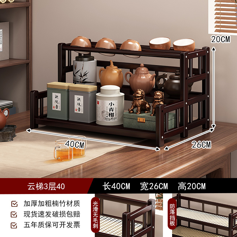 桌面小型博古架茶杯茶具置物架新中茶叶收纳架非实木紫砂壶摆放架