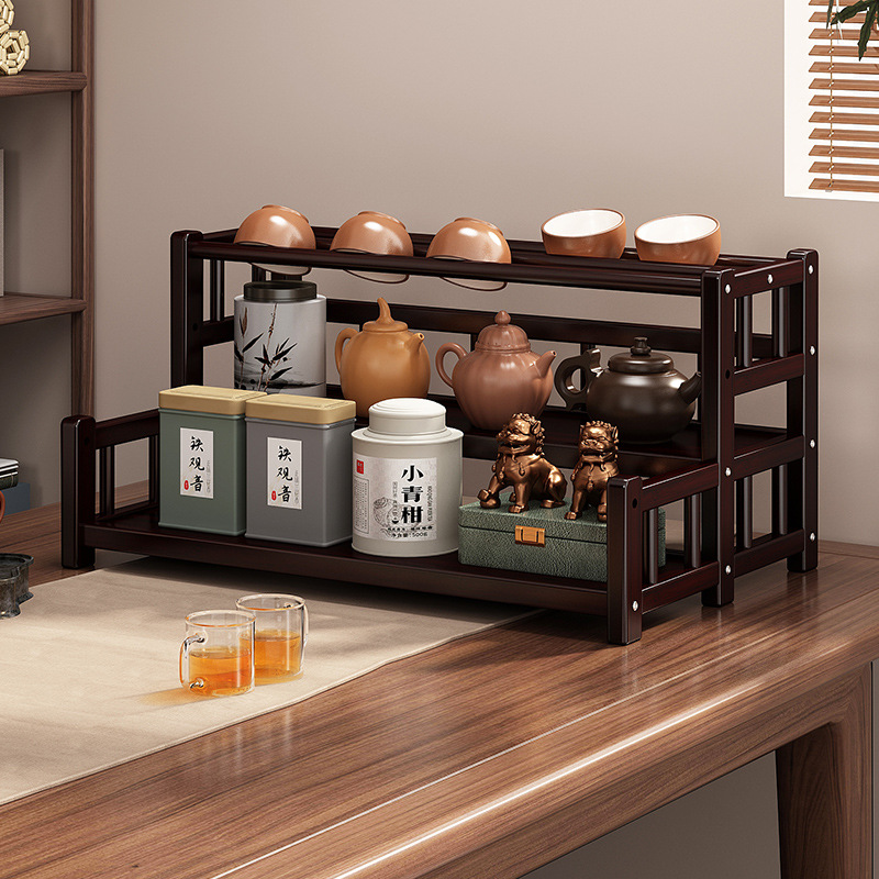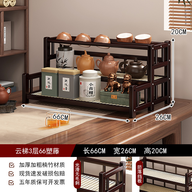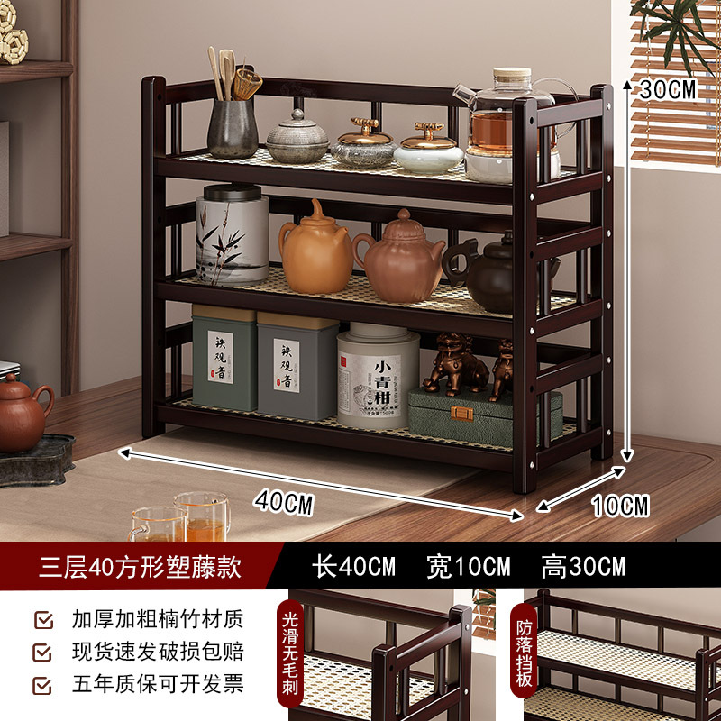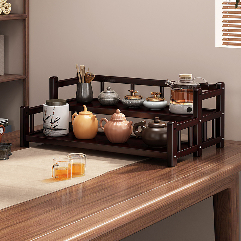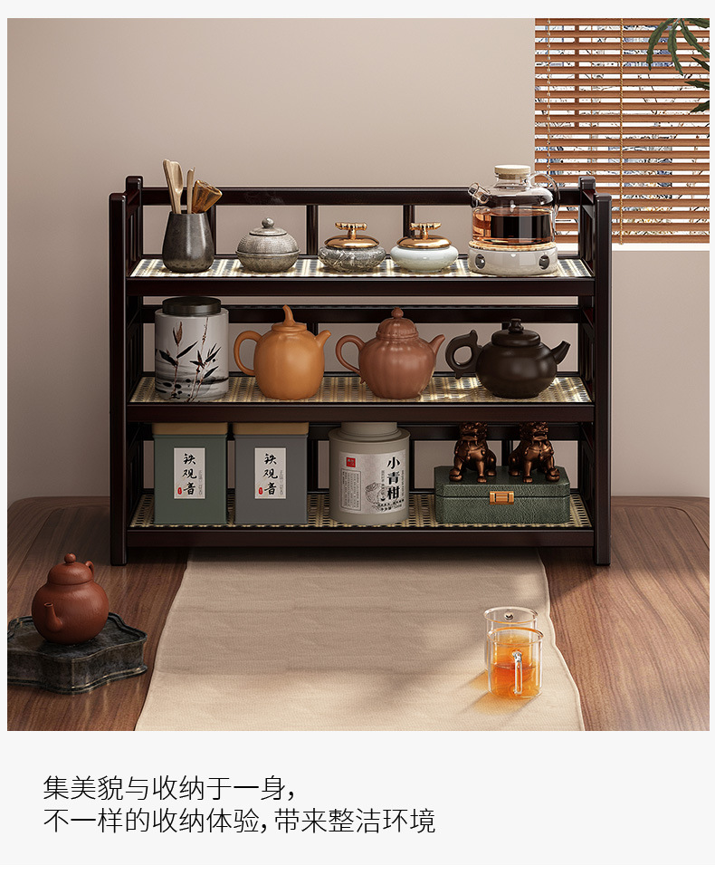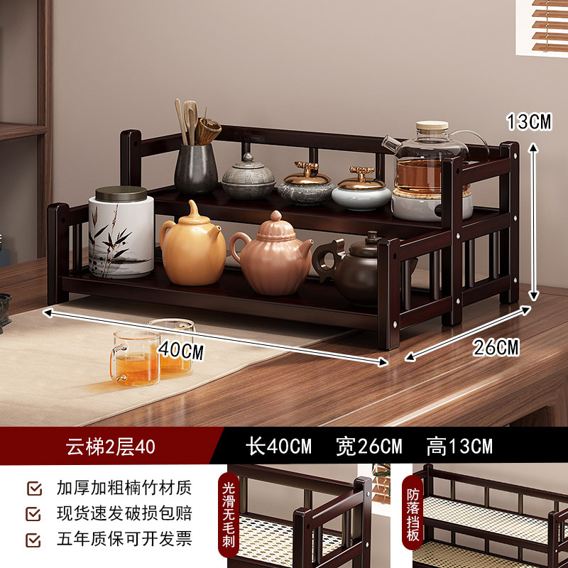 桌面小型博古架茶杯茶具置物架新中茶叶收纳架非实木紫砂壶摆放架