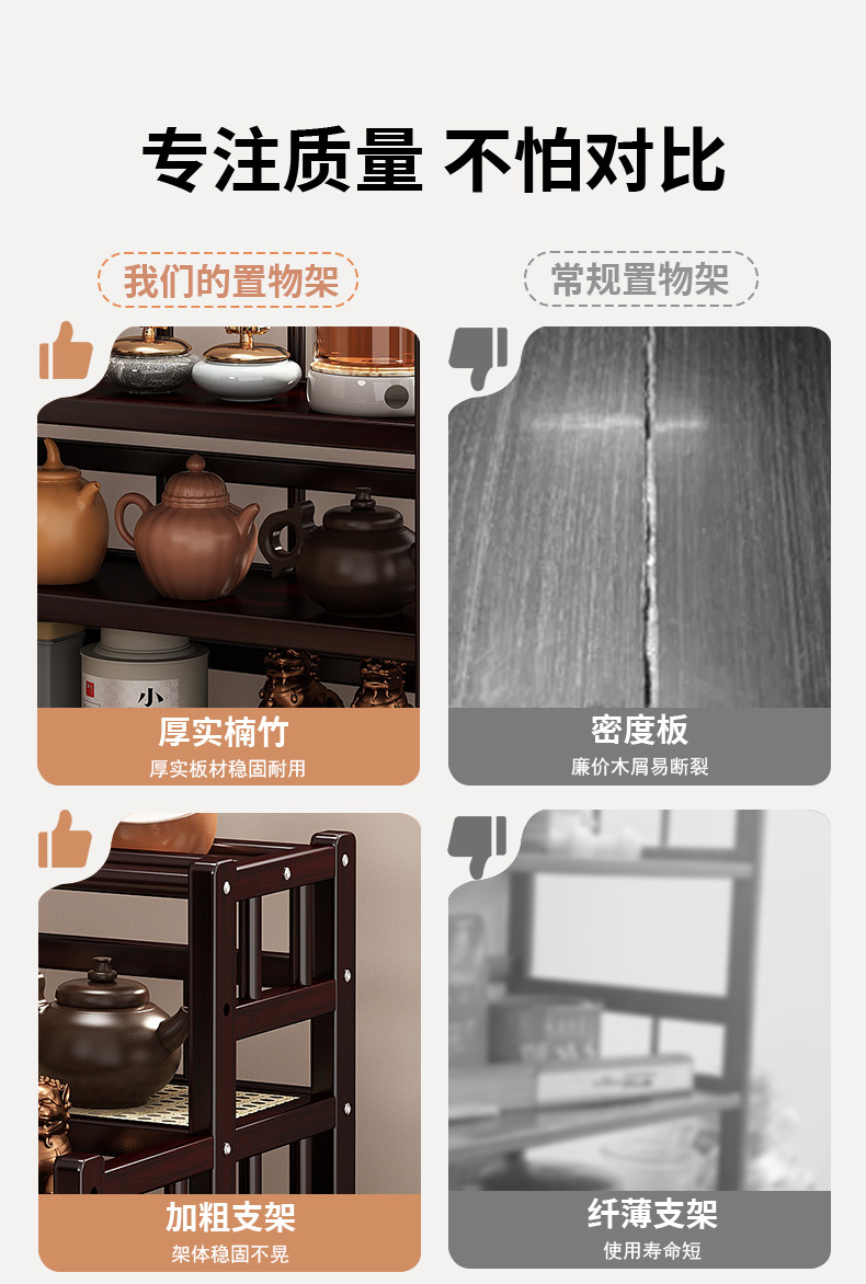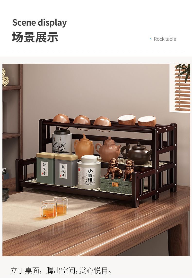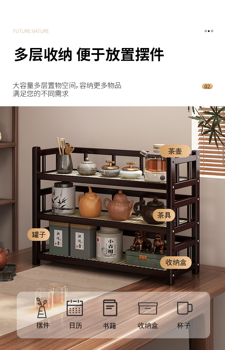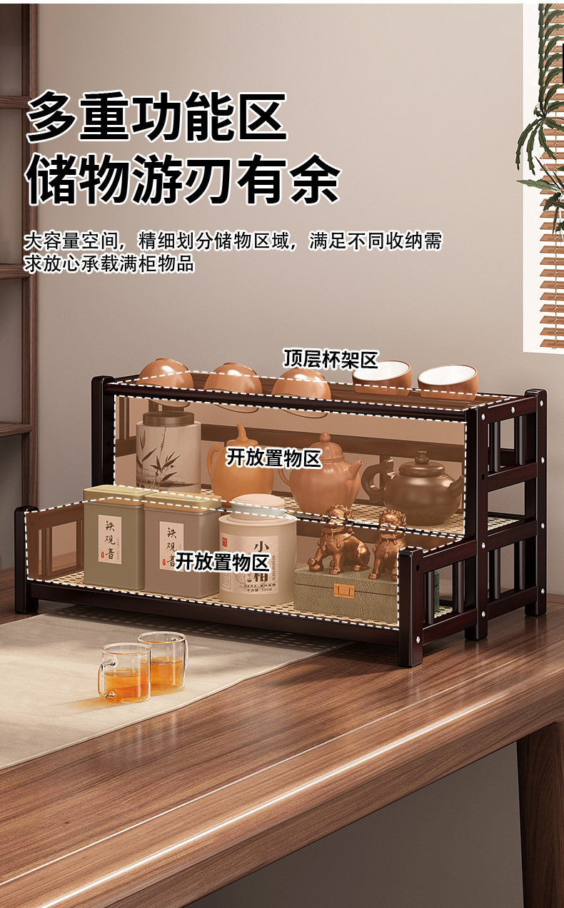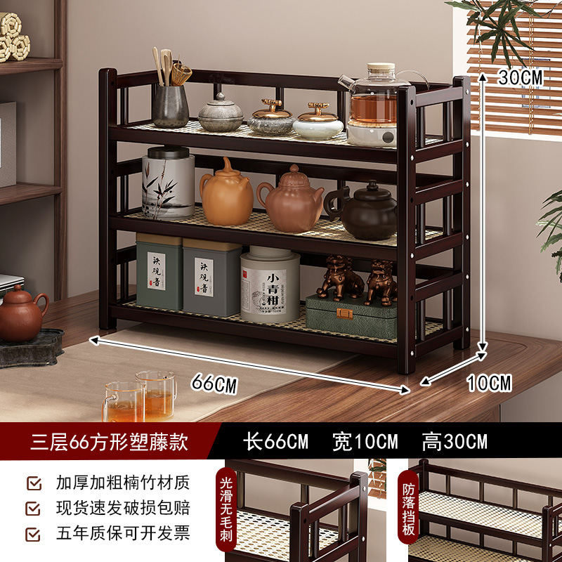 桌面小型博古架茶杯茶具置物架新中茶叶收纳架非实木紫砂壶摆放架