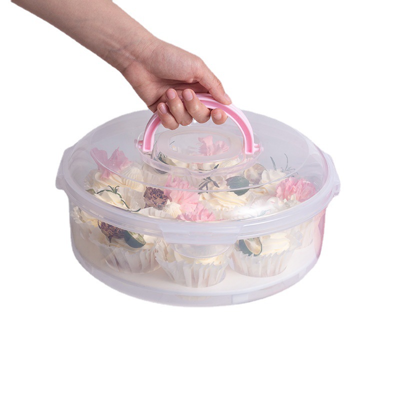 批发可重复使用圆形甜品西点包装盒塑料商用甜甜圈多层生日蛋糕盒