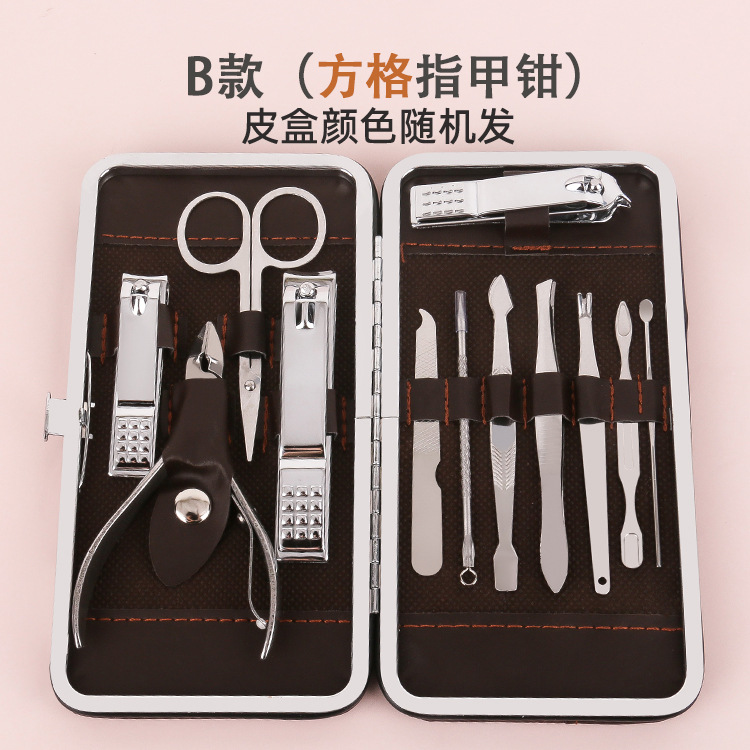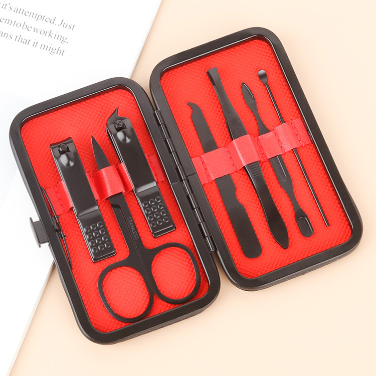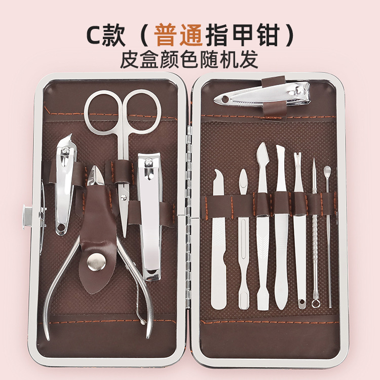义乌现货指甲剪套装皮盒7件套跨境印LOGO广告礼品指甲刀套装
