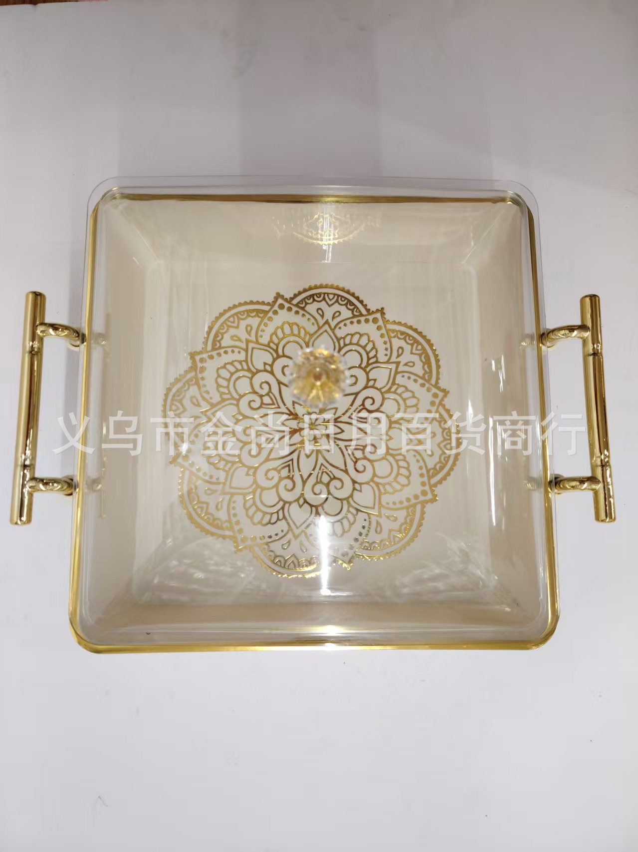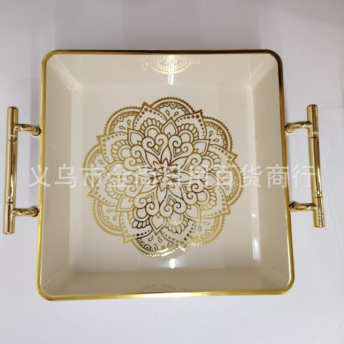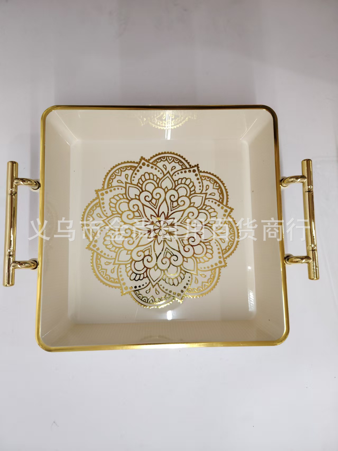 正方形金色欧式雕花水果托盘甜品酒店托盘咖啡厅西餐厅水果糕点盘