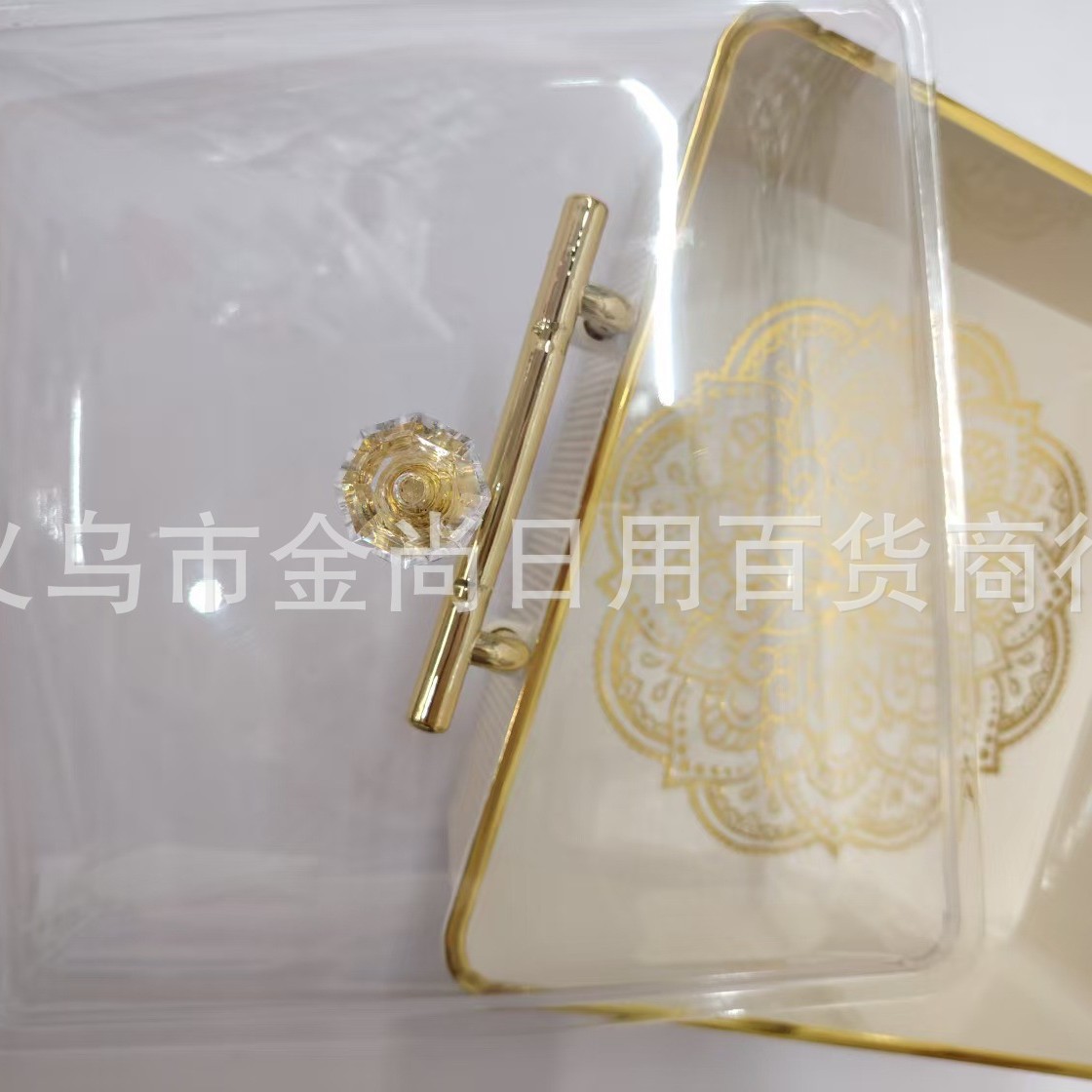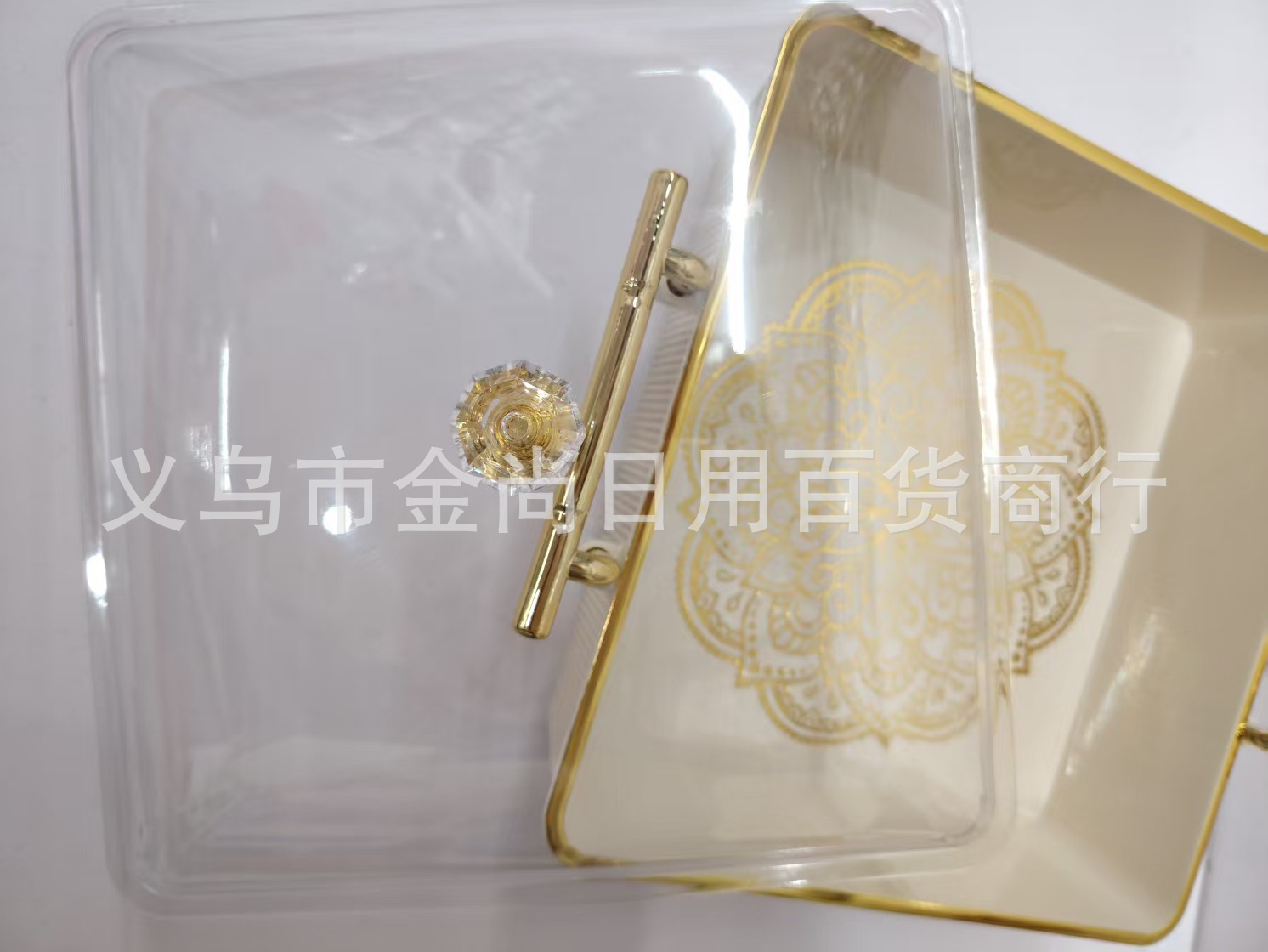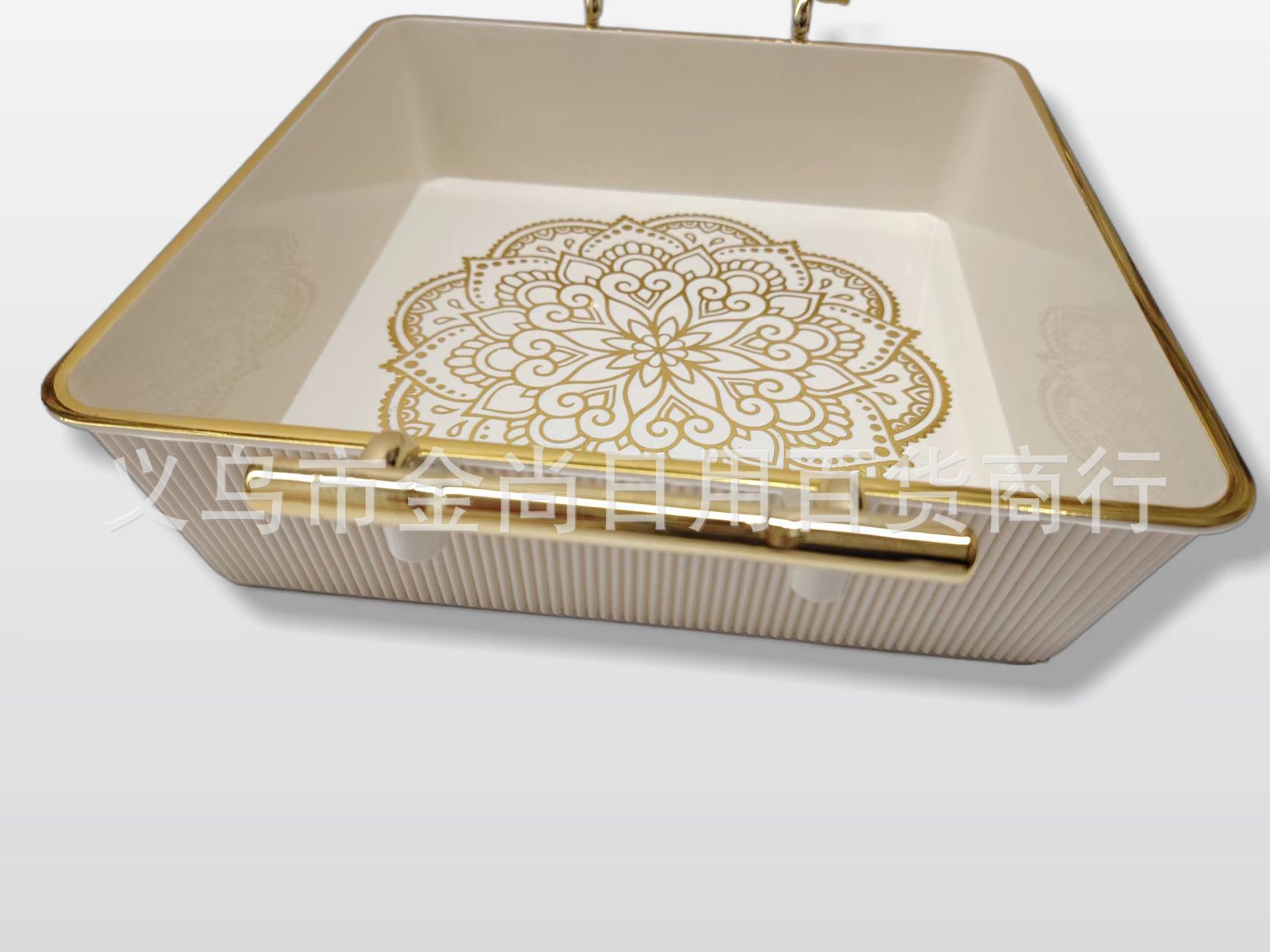 正方形金色欧式雕花水果托盘甜品酒店托盘咖啡厅西餐厅水果糕点盘