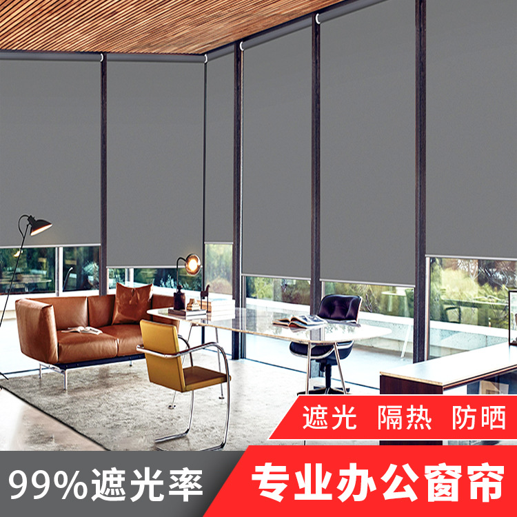 全遮光隔热办公室窗帘卷帘 智能升降防晒遮阳帘logo广告卷帘窗帘