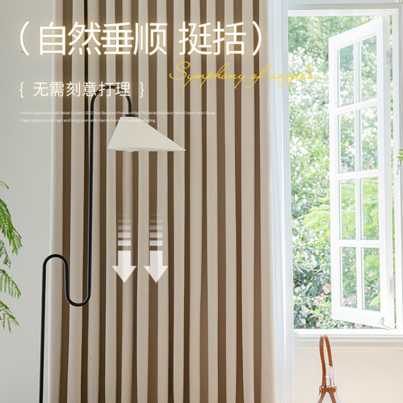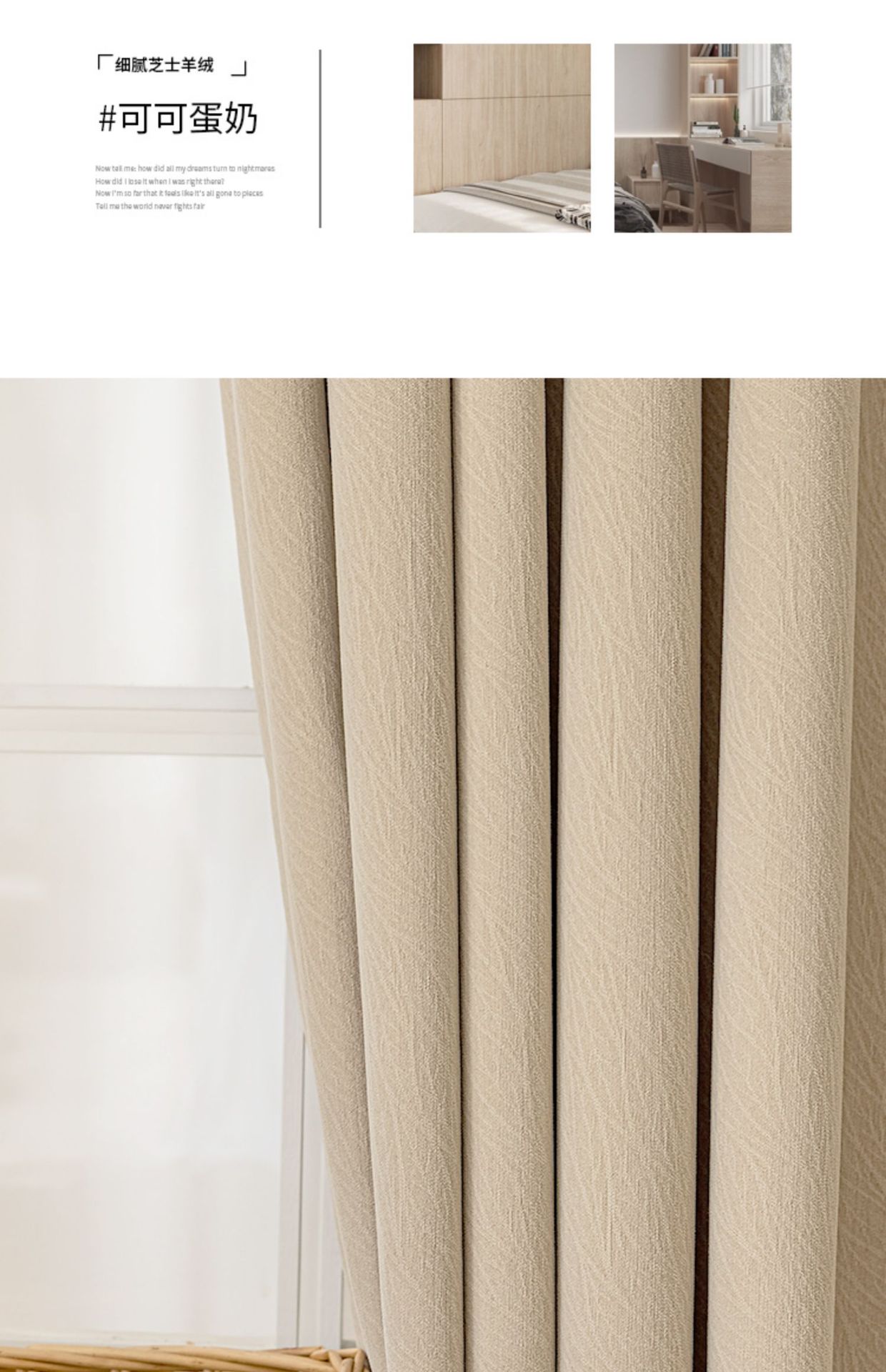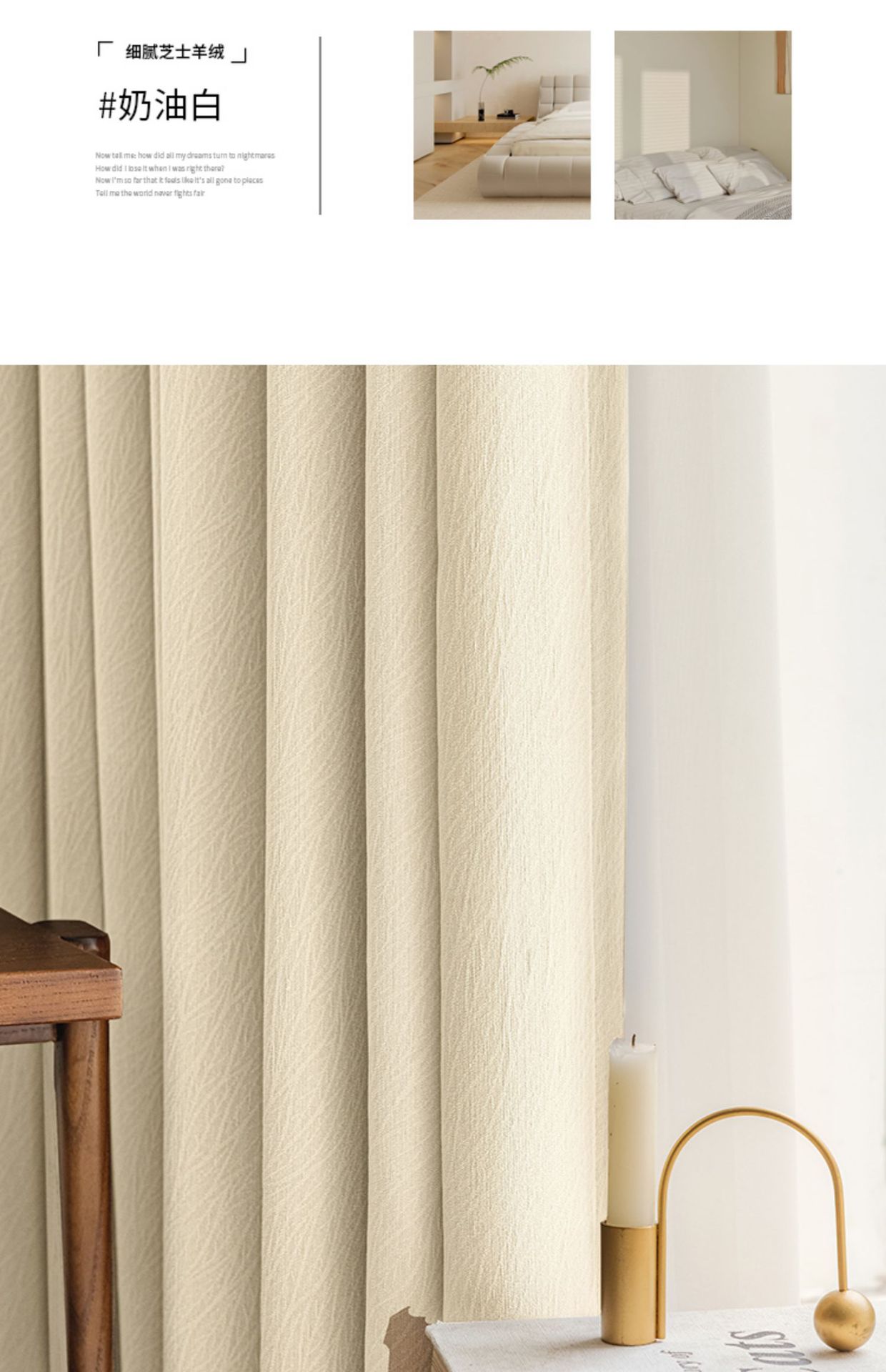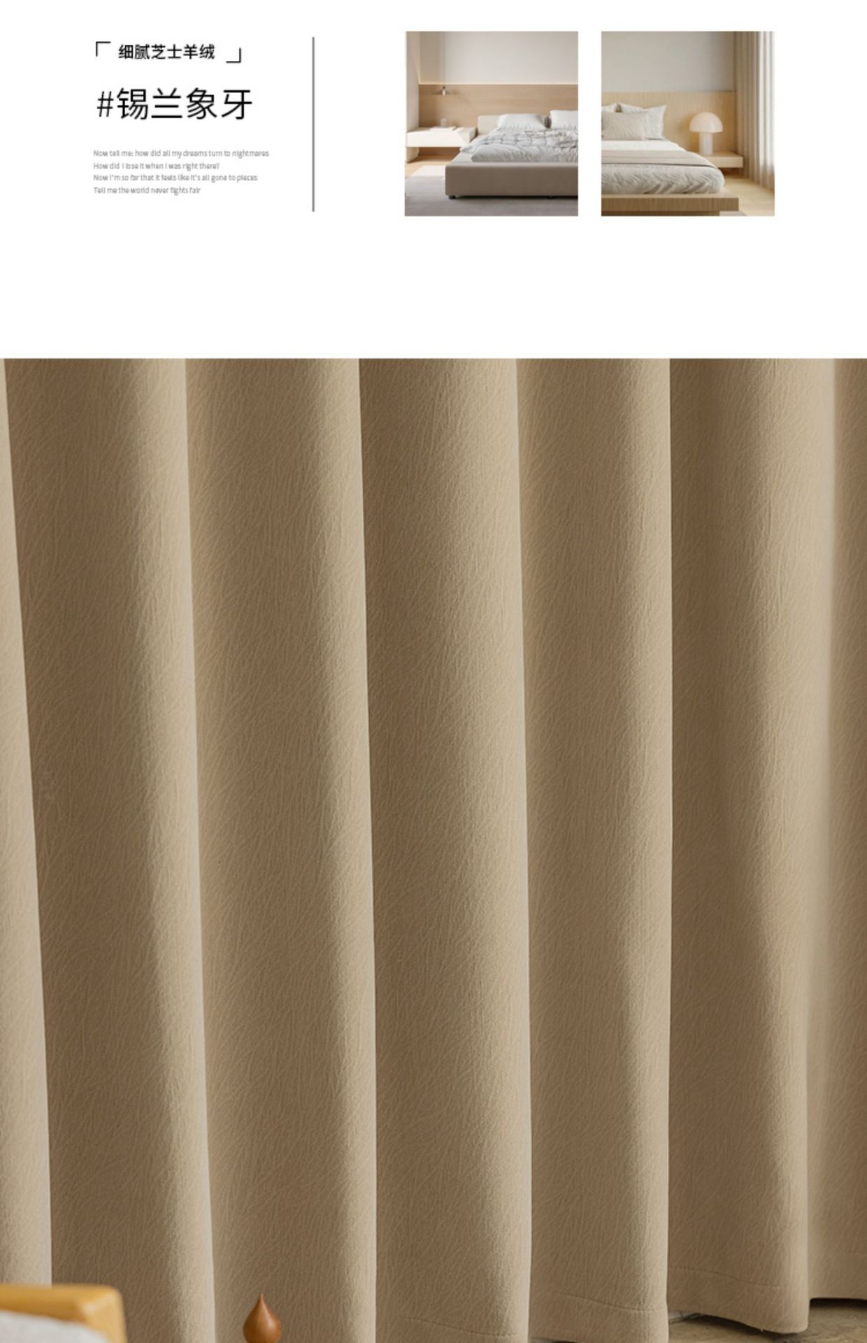 芝士羊绒纹理卧室小红书雪尼尔高遮光奶油色客厅书房民宿窗帘