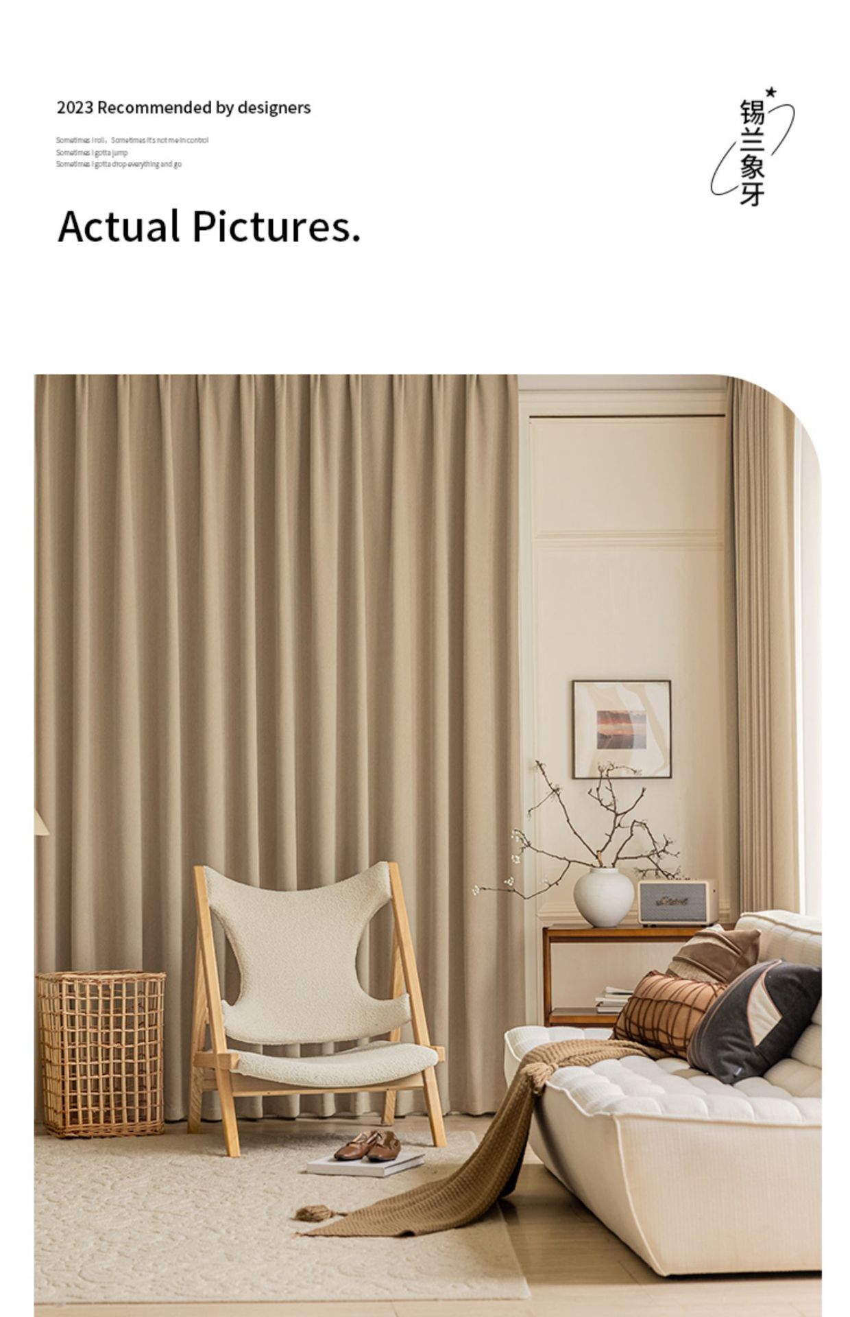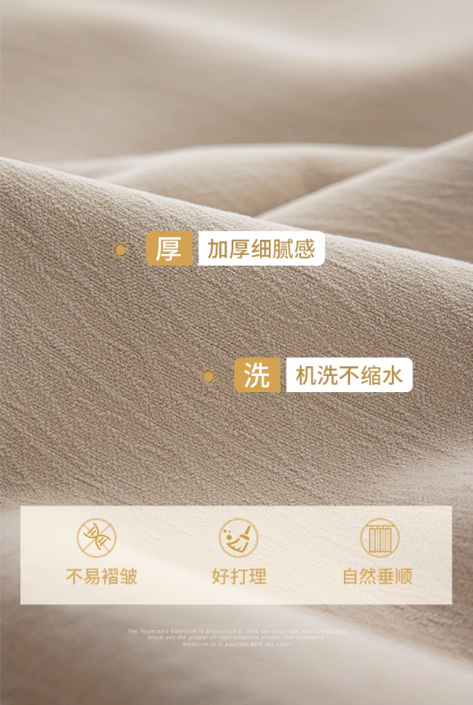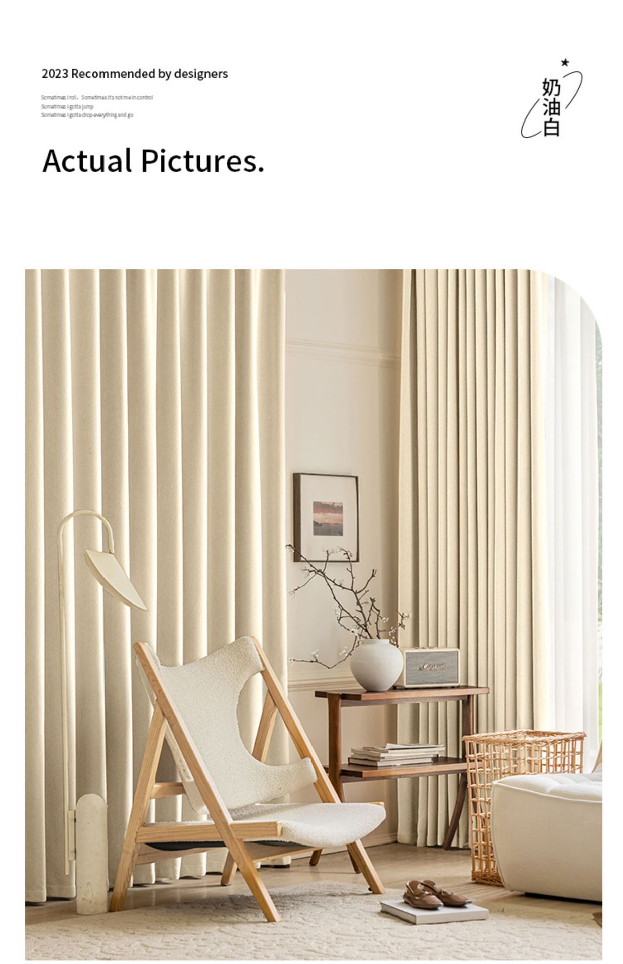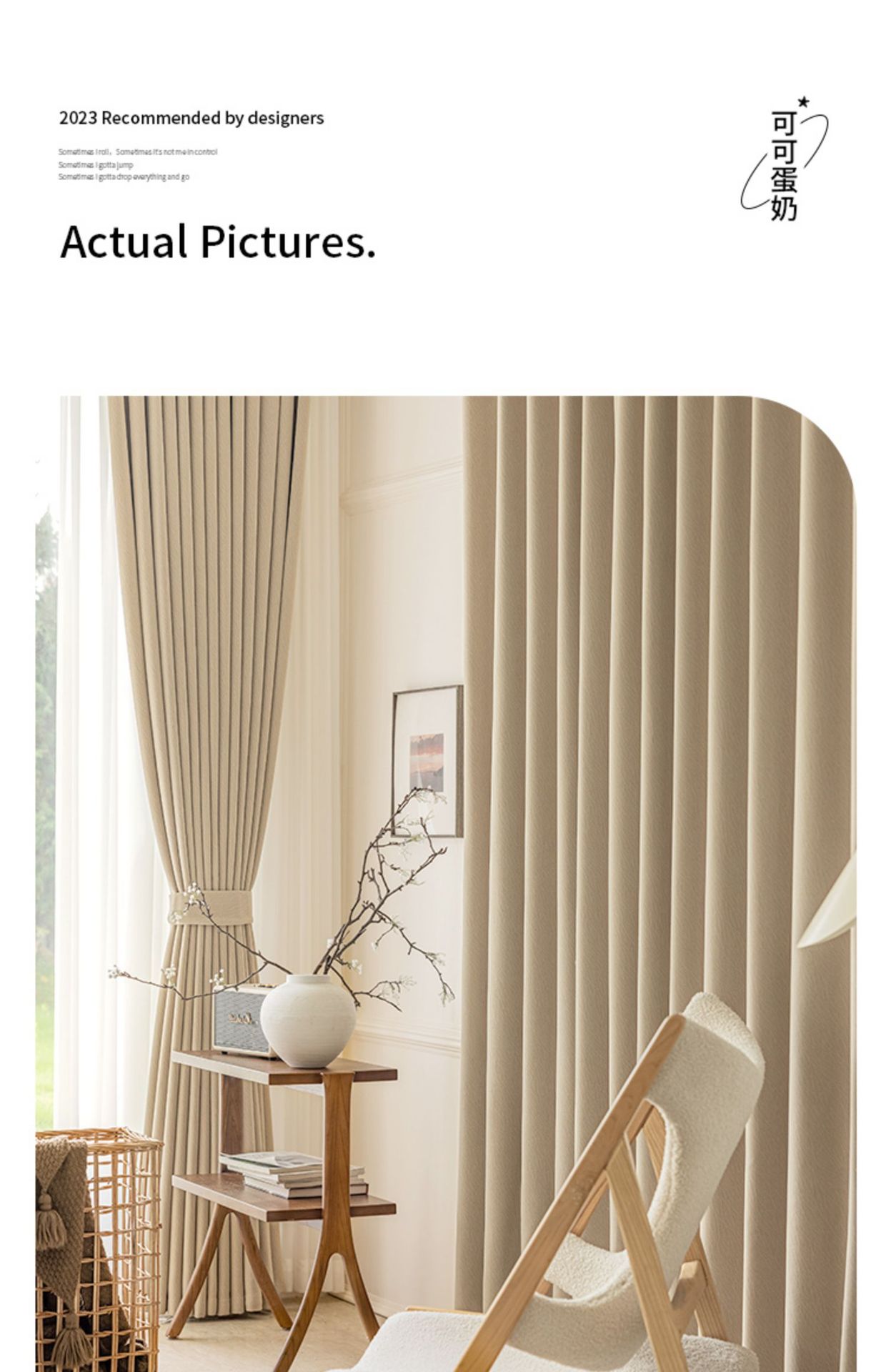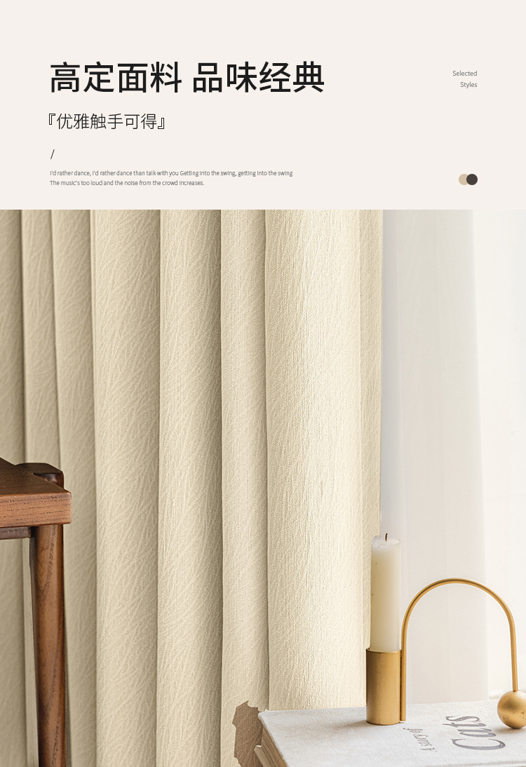 芝士羊绒纹理卧室小红书雪尼尔高遮光奶油色客厅书房民宿窗帘