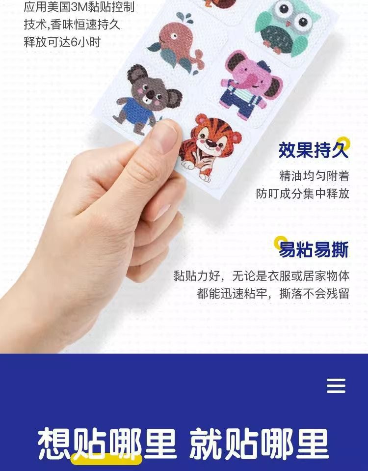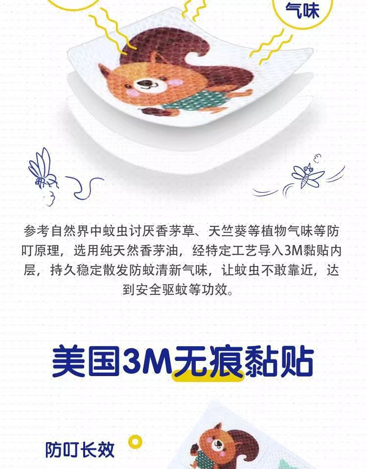 日本叮叮驱蚊贴长效驱蚊神器儿童宝宝专用防叮防蚊贴卡通植物香茅