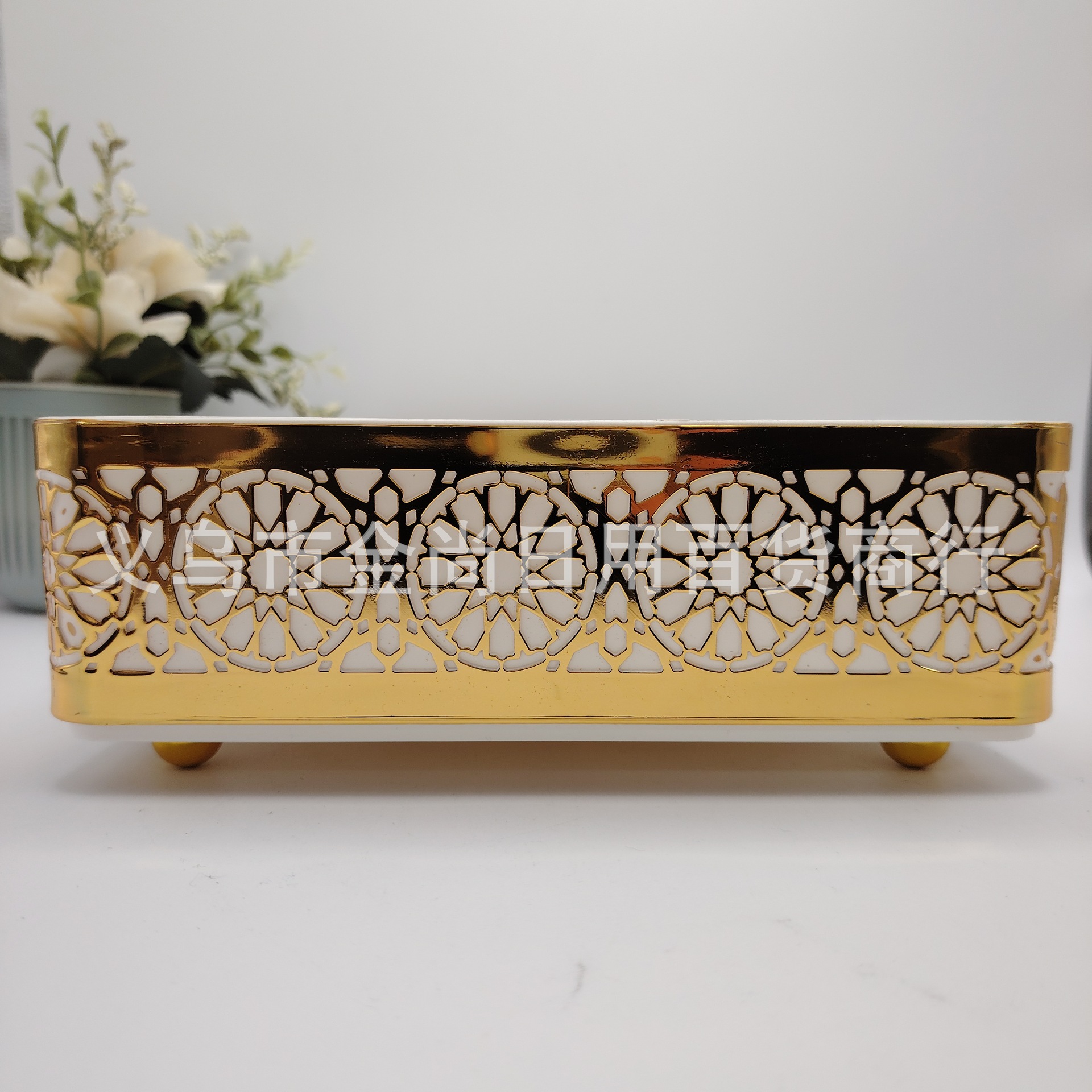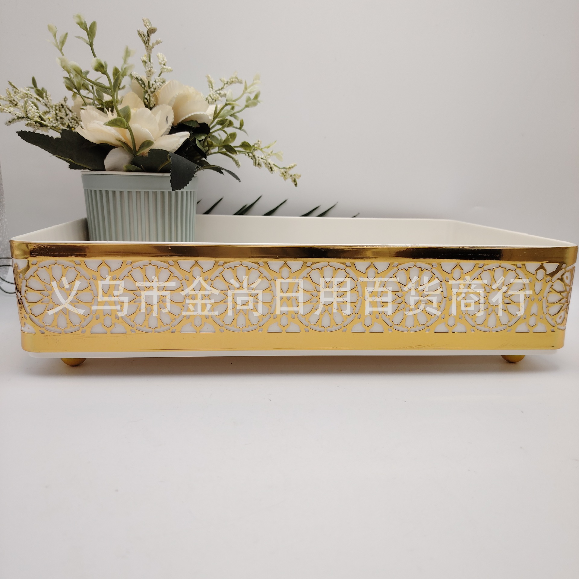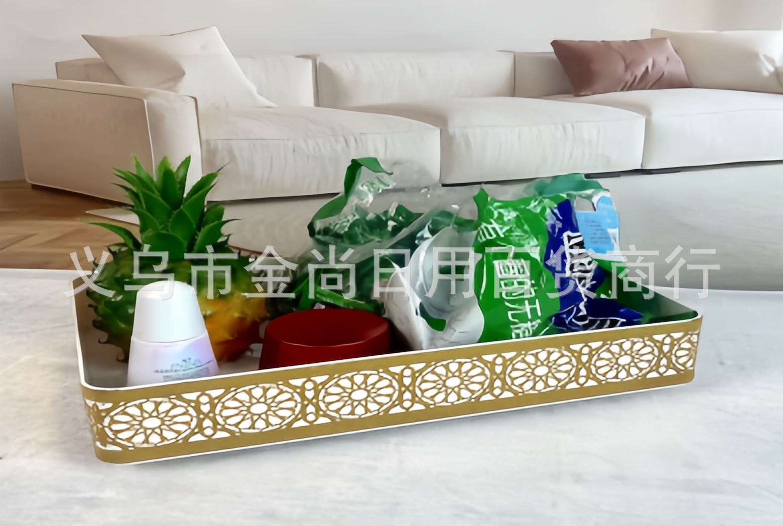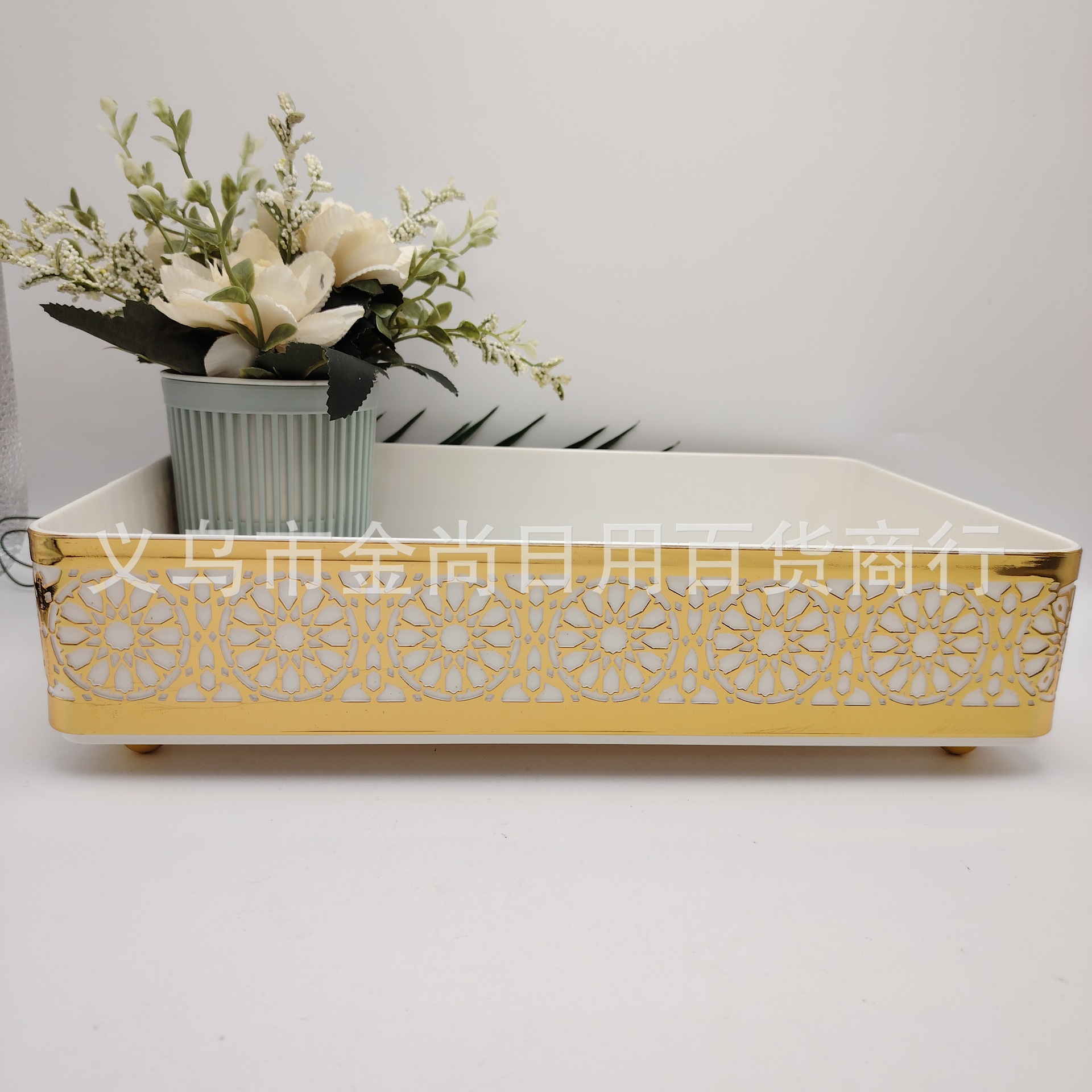 长方形实色果盘轻奢金边水果盘客厅茶几零食坚果盘子厨房收纳盘