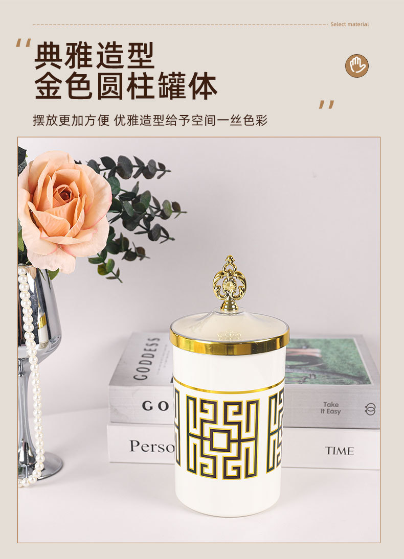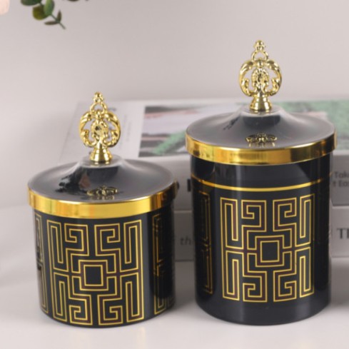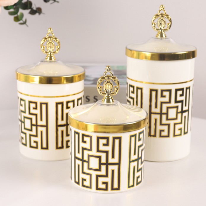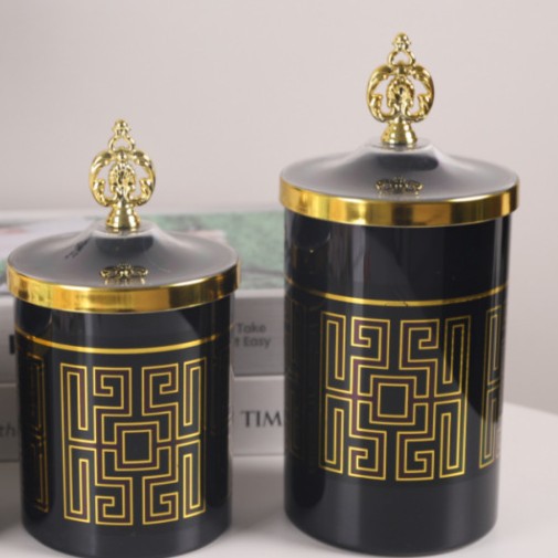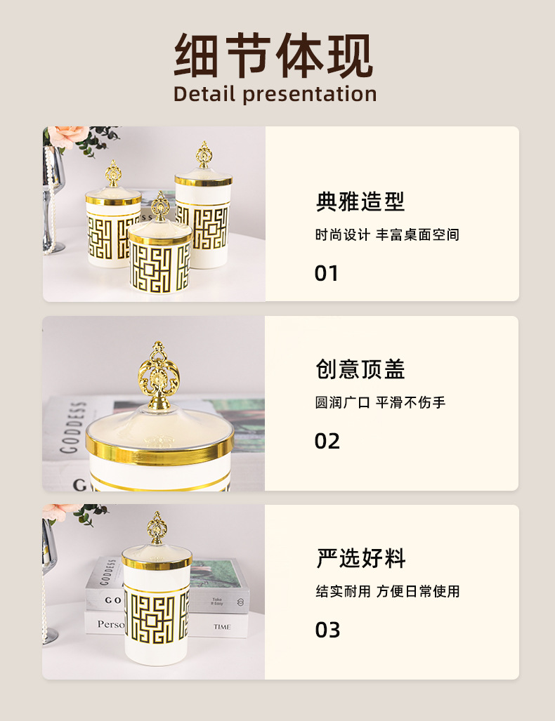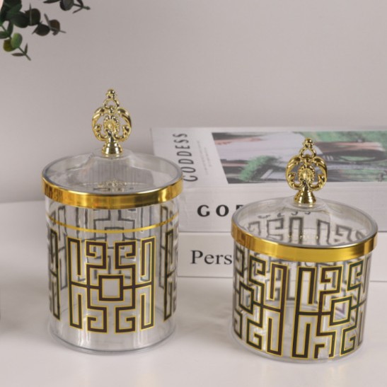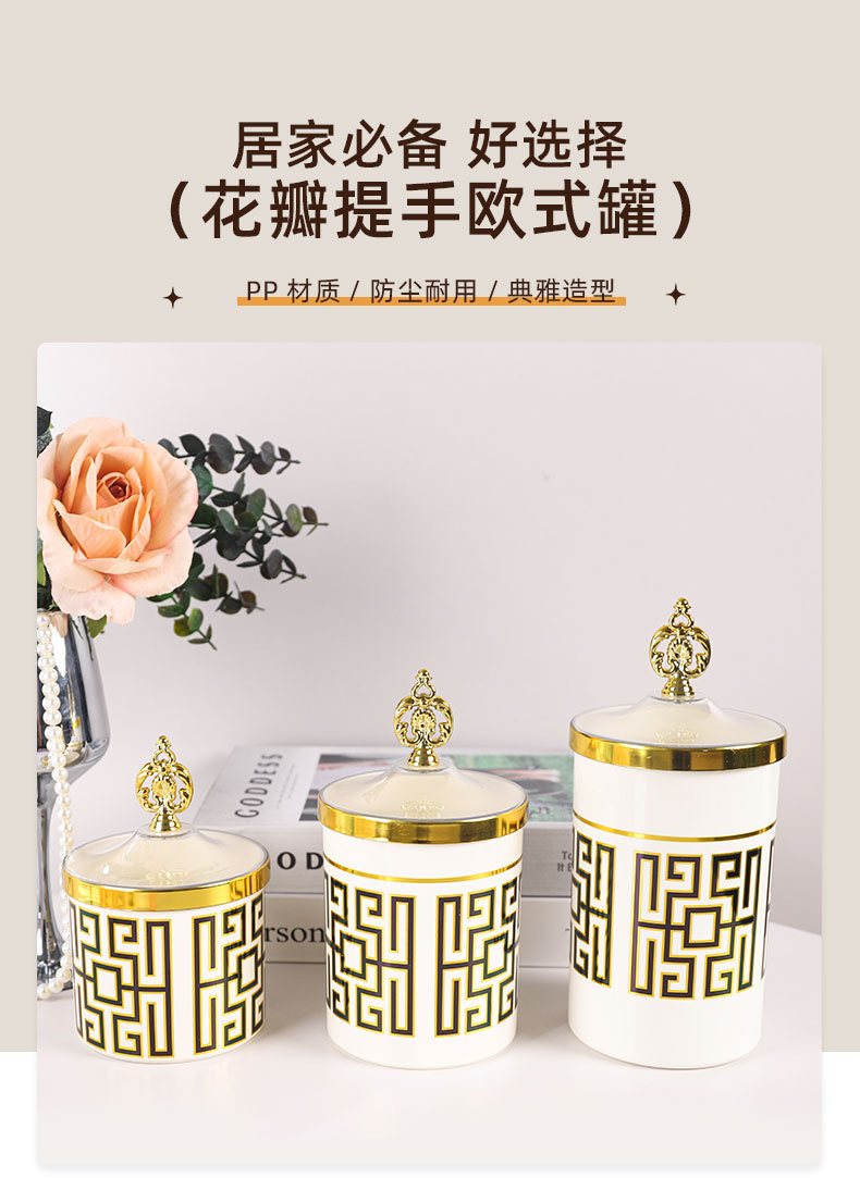 跨境食品储物罐新款烫金回形纹欧式轻奢罐家用零食干果茶叶罐方糖