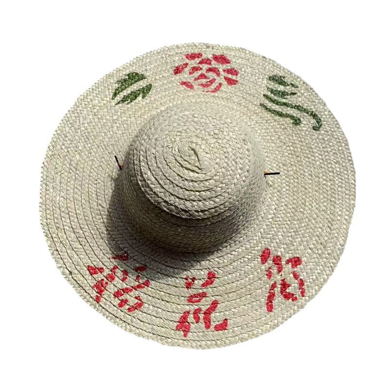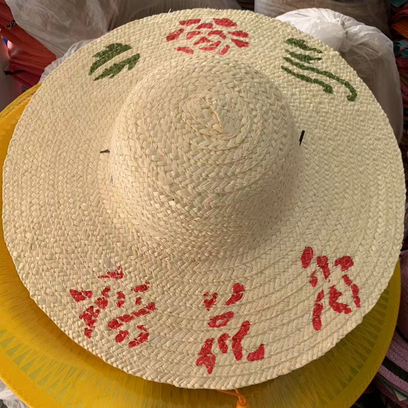 大檐麦秆草帽草编夏季凉帽遮太阳农民工老式田园防晒帽可印字logo