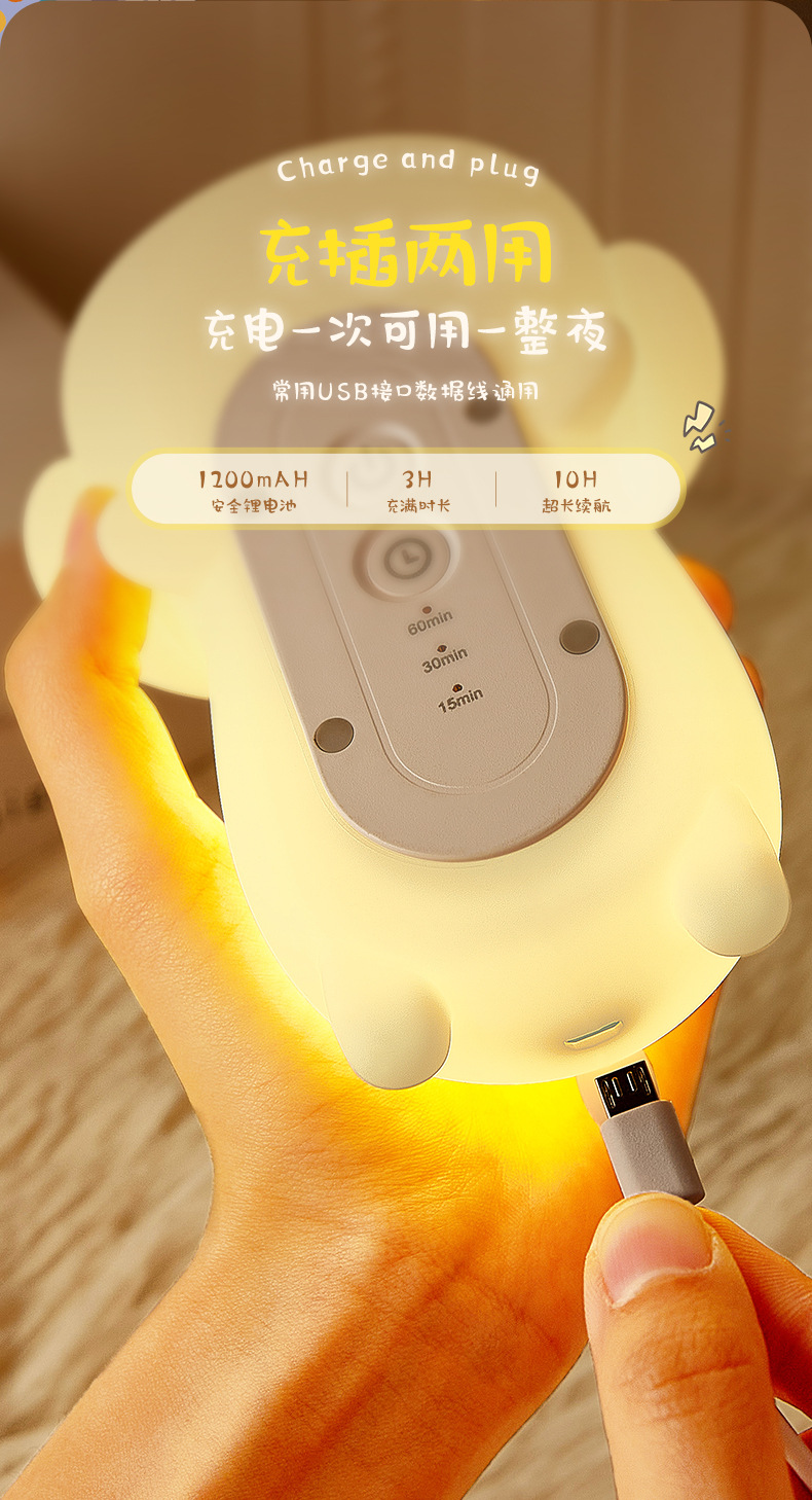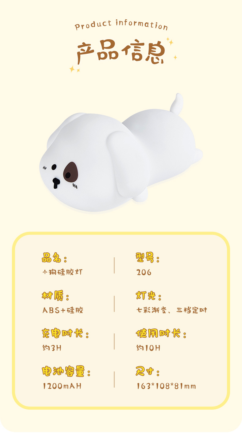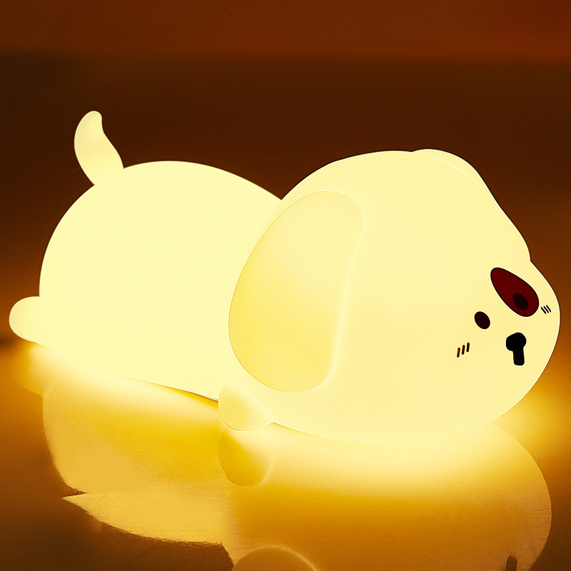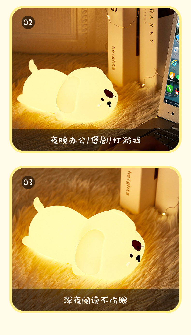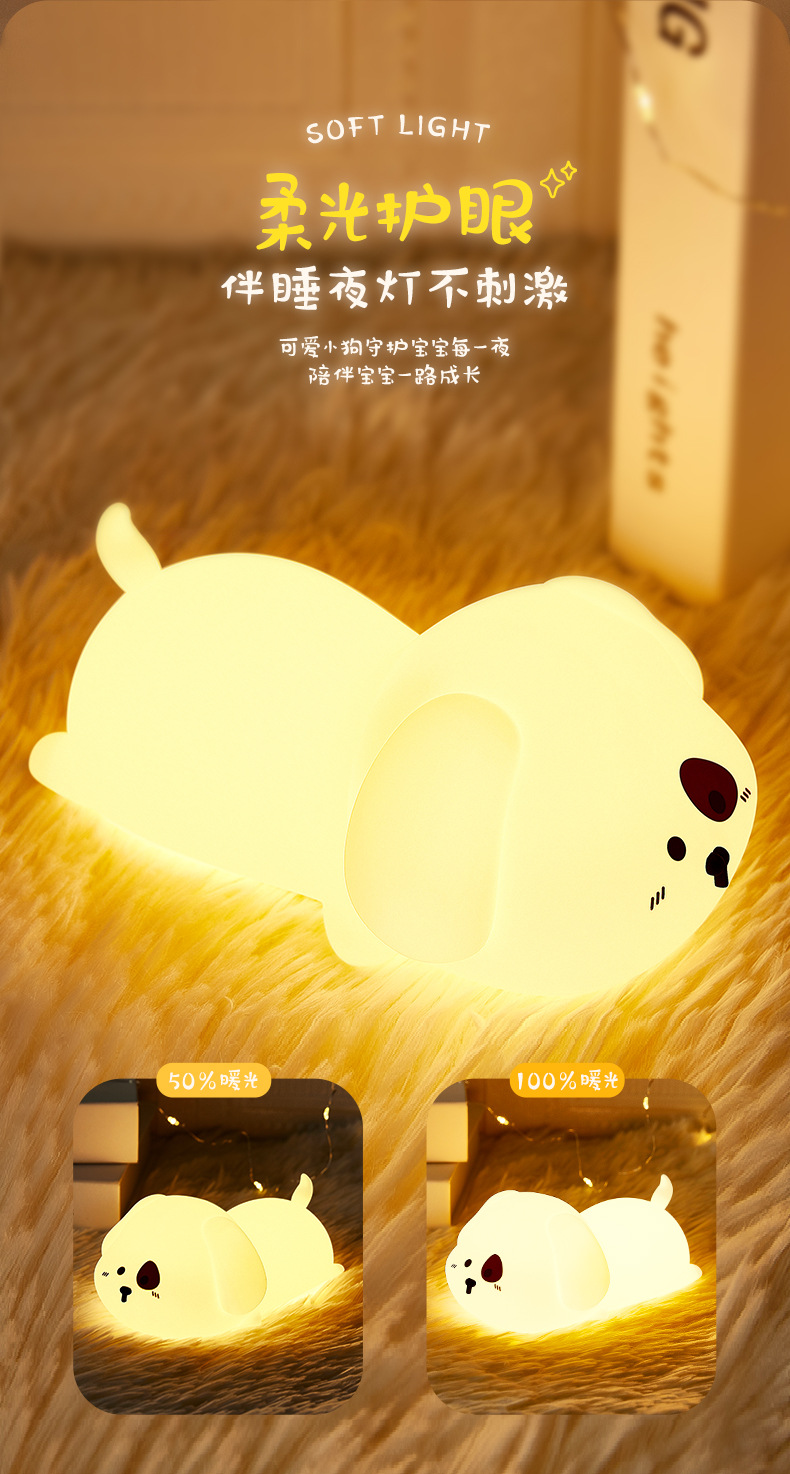 小狗硅胶小夜灯柔光调节拍拍定时伴睡床头灯US充电七彩呼吸灯