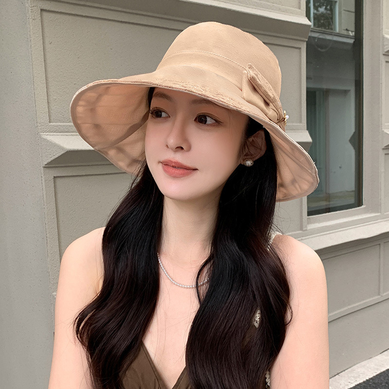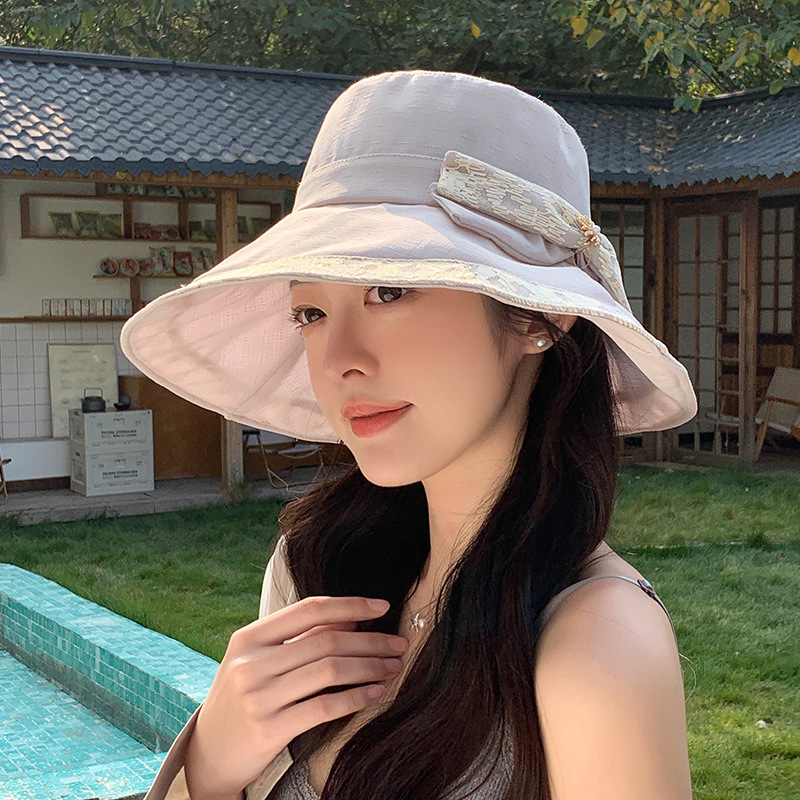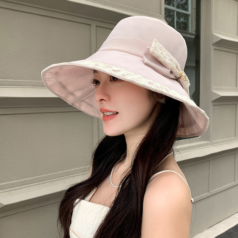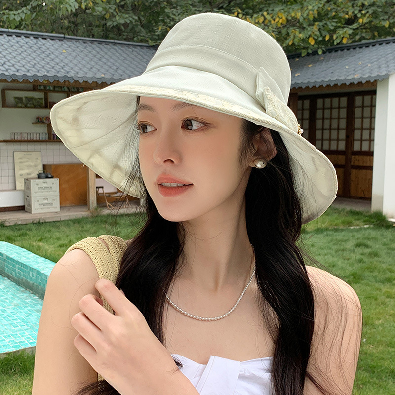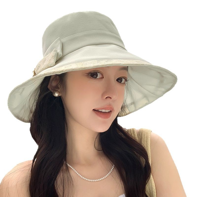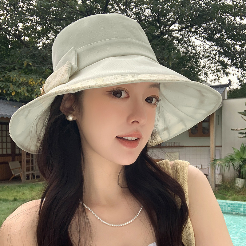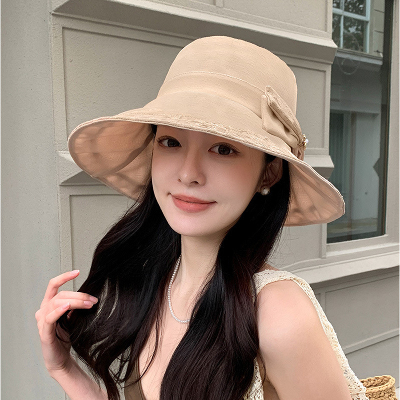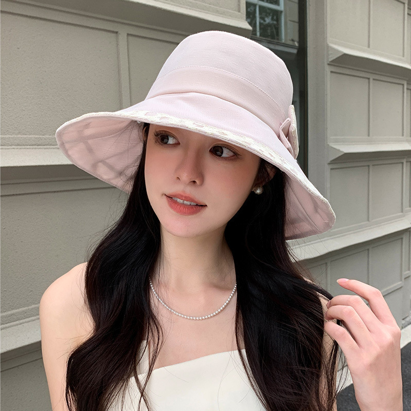 新款出游户外蝴蝶结太阳帽盆帽防晒遮阳帽子韩系优雅百搭渔夫帽