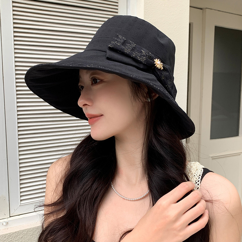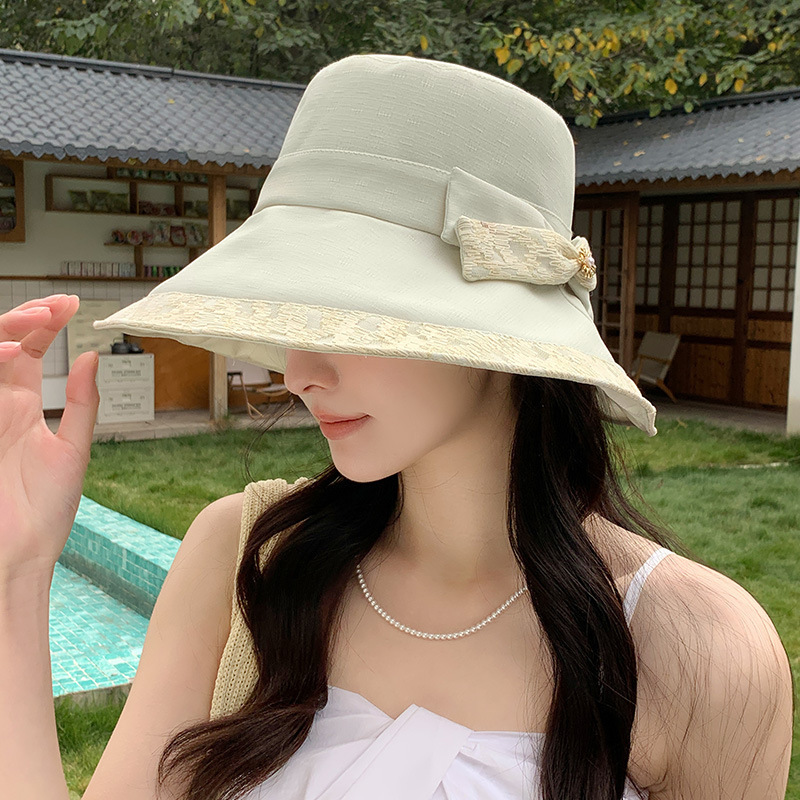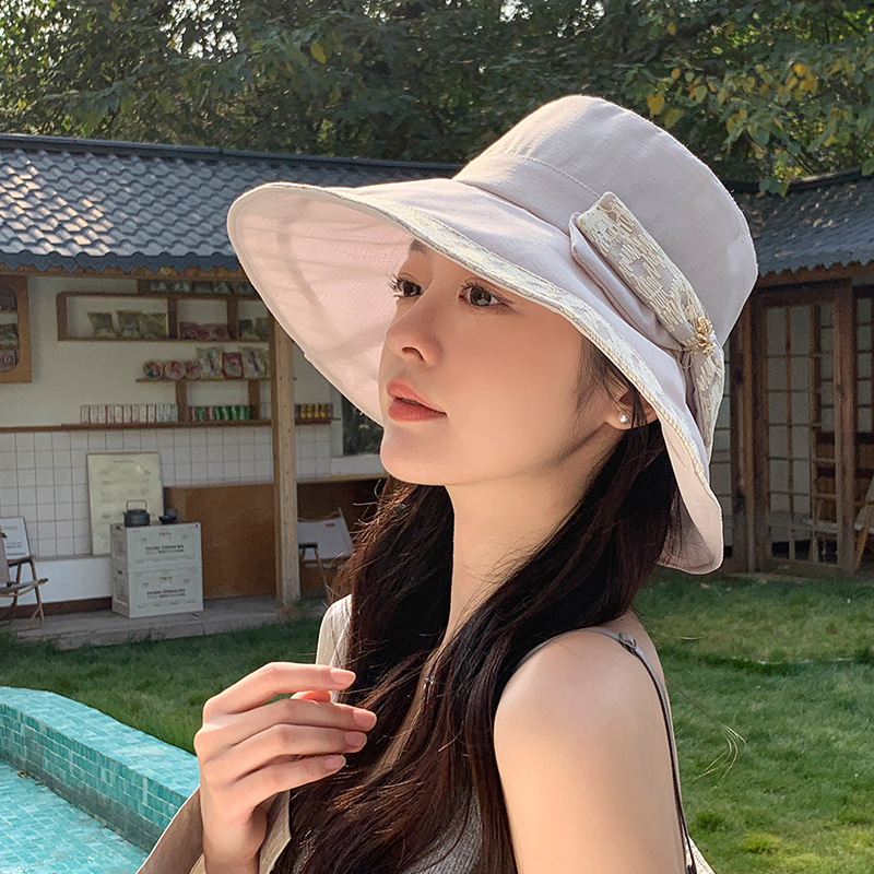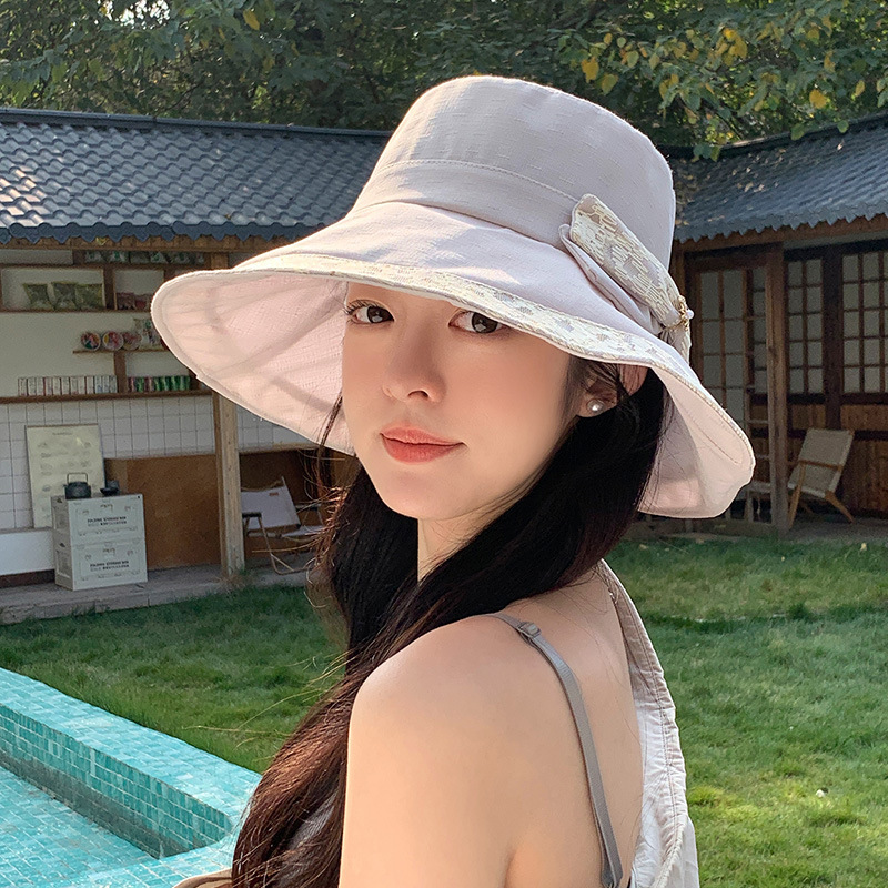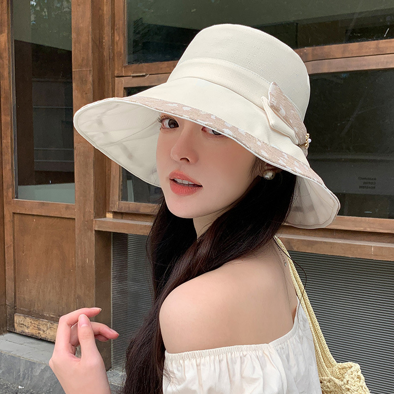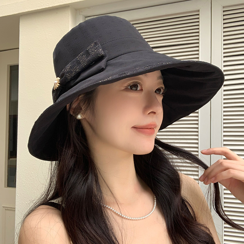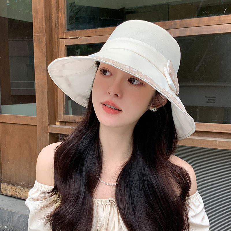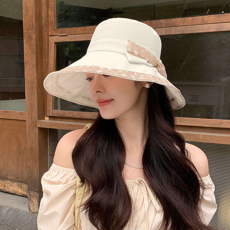 新款出游户外蝴蝶结太阳帽盆帽防晒遮阳帽子韩系优雅百搭渔夫帽