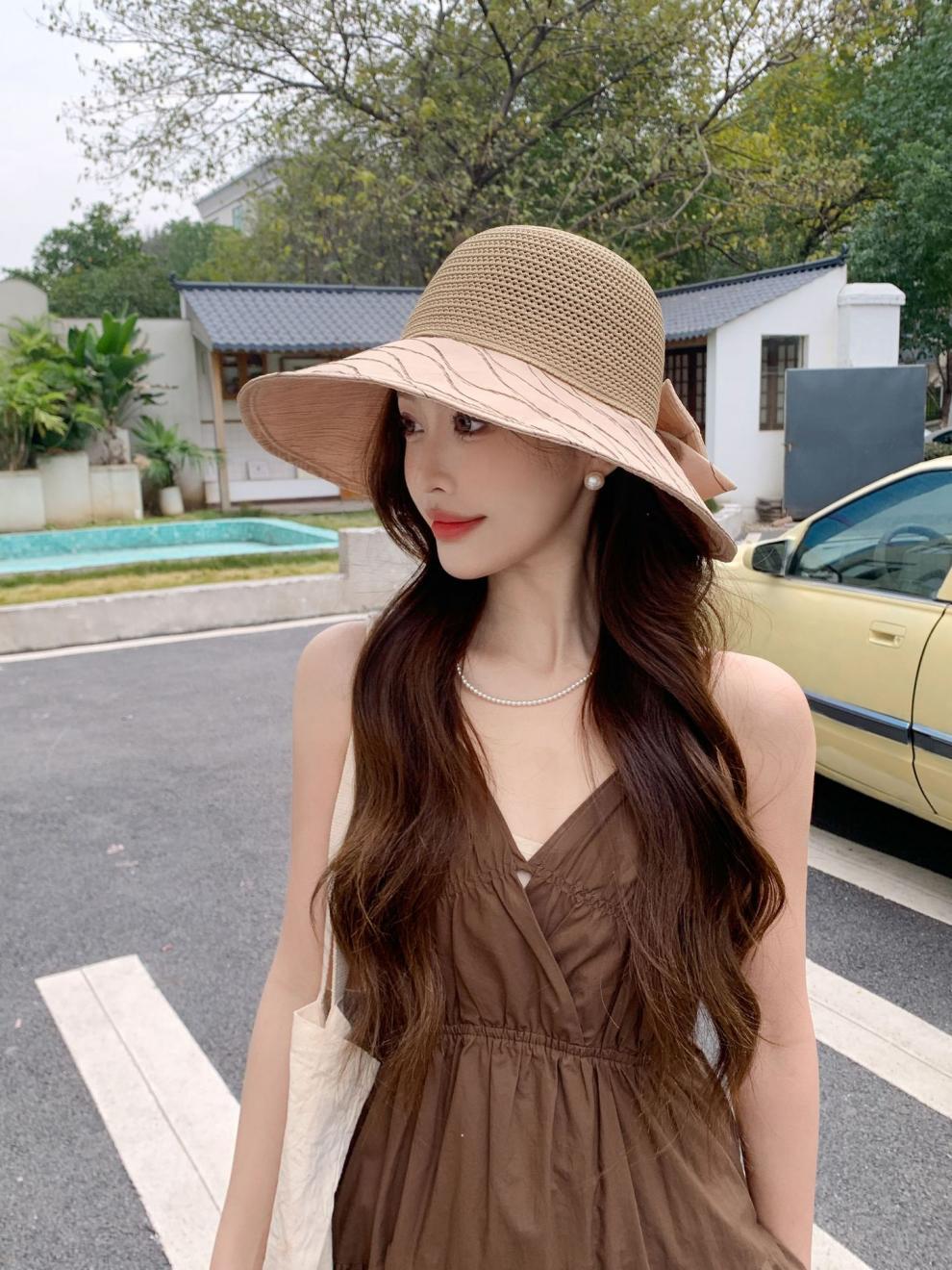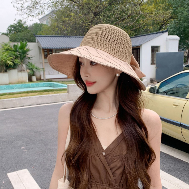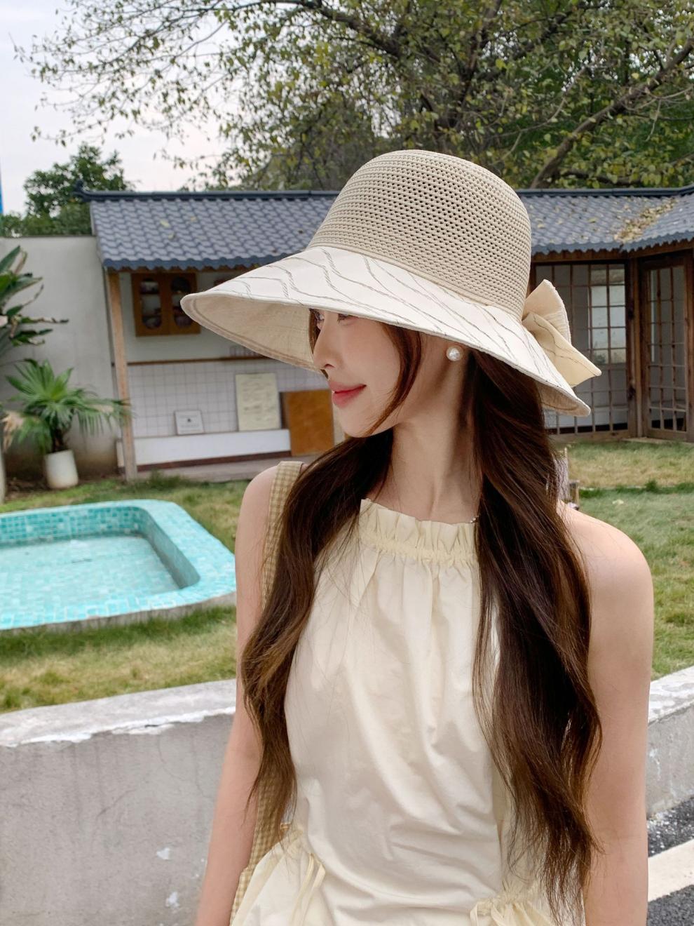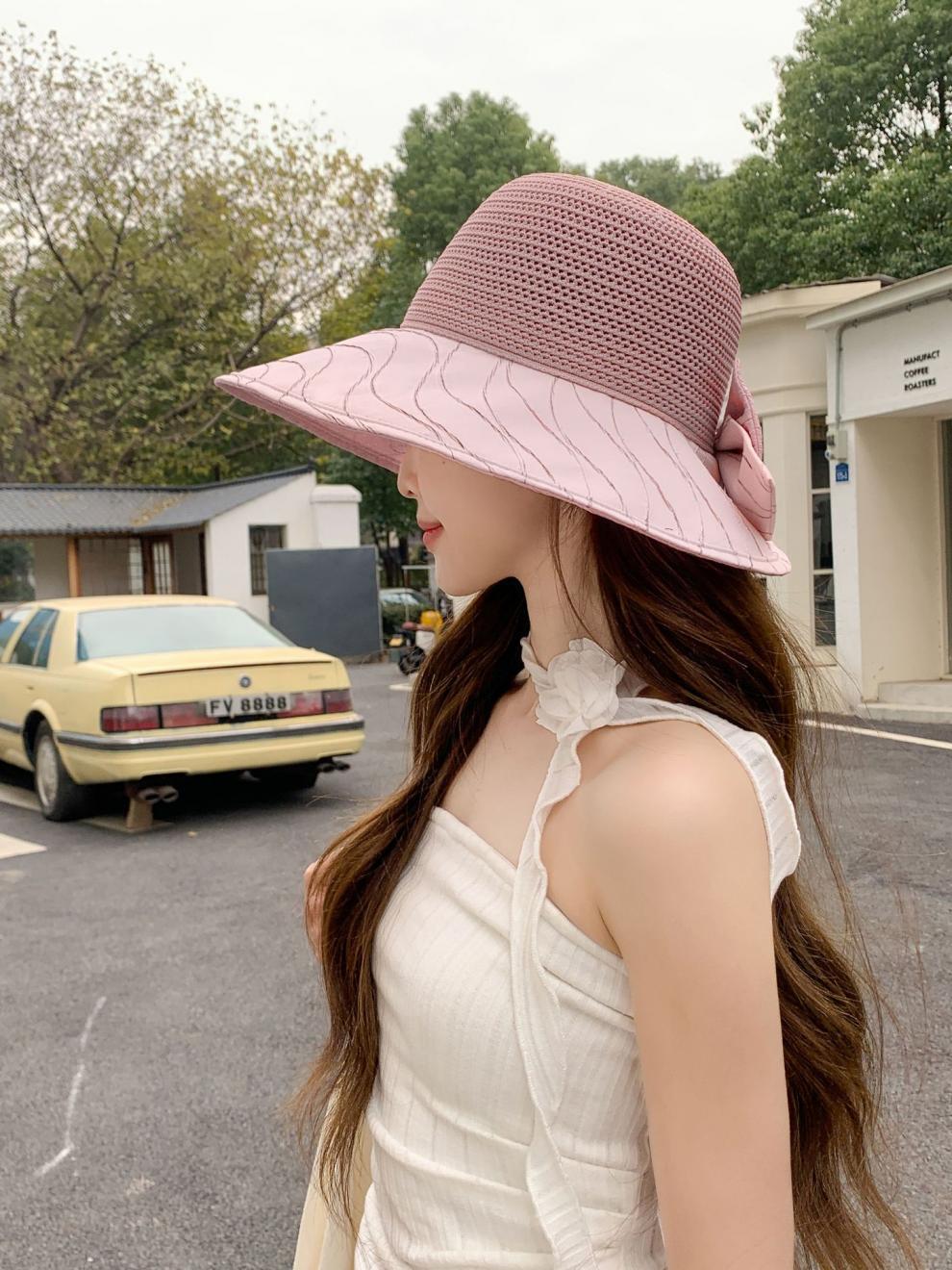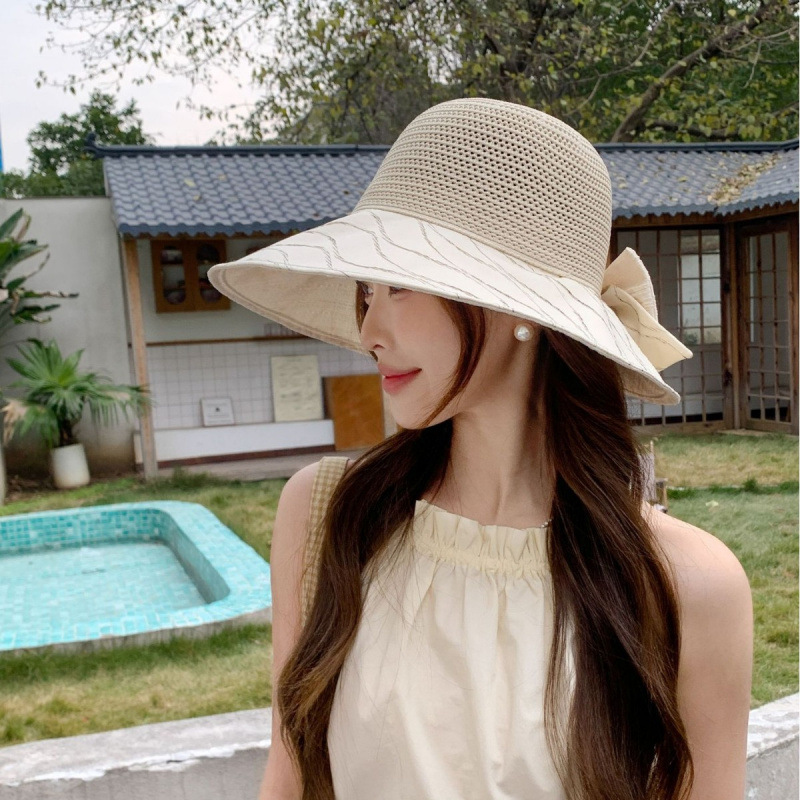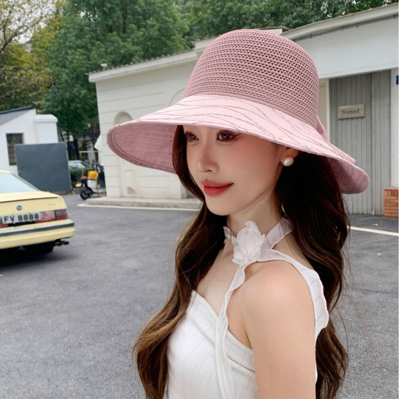 夏季网眼透气渔夫帽女显脸小休闲户外游玩百搭条纹防晒遮阳防晒帽