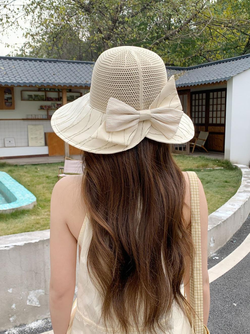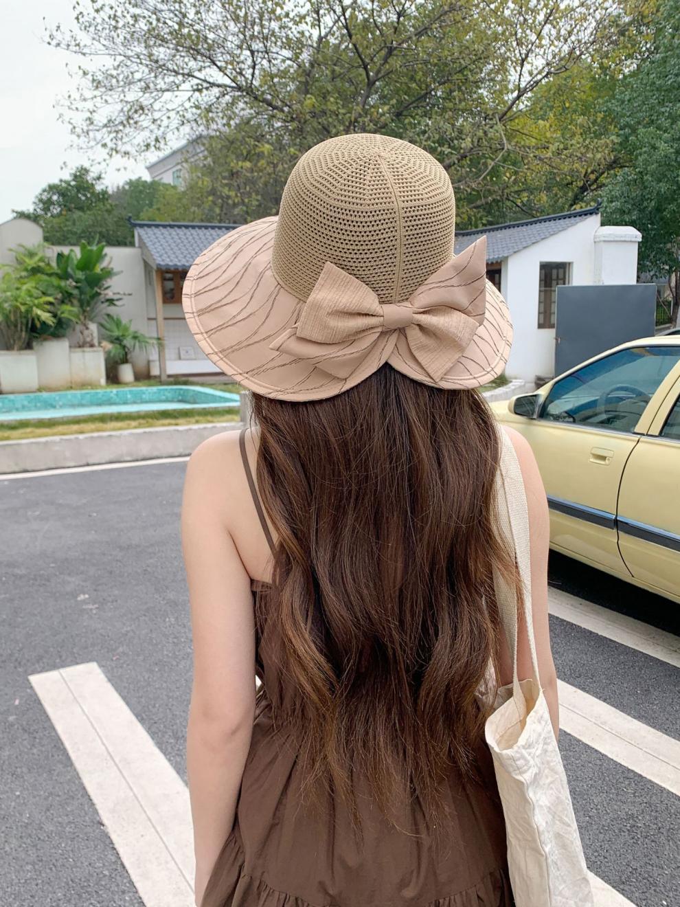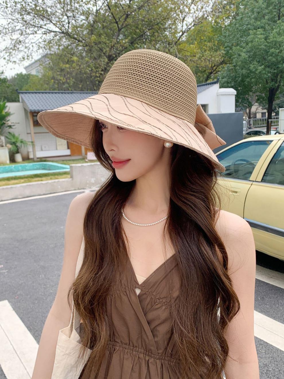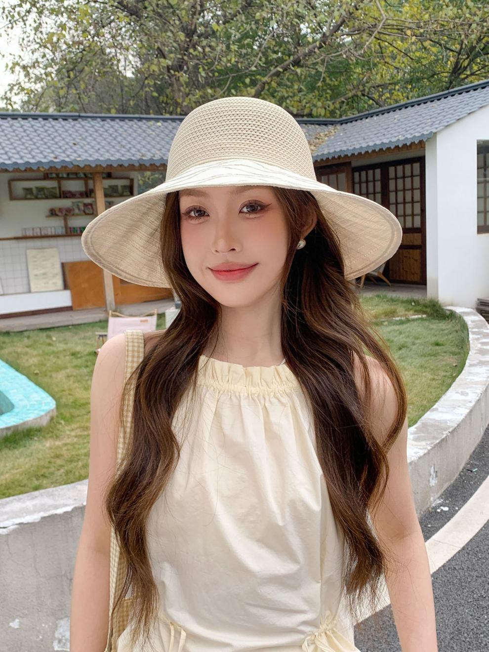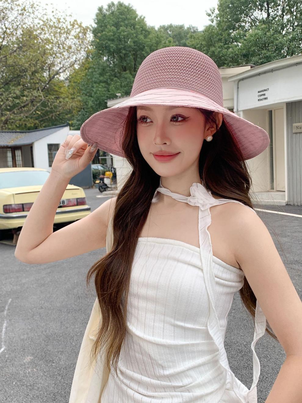 夏季网眼透气渔夫帽女显脸小休闲户外游玩百搭条纹防晒遮阳防晒帽