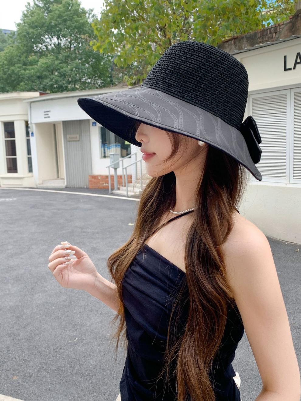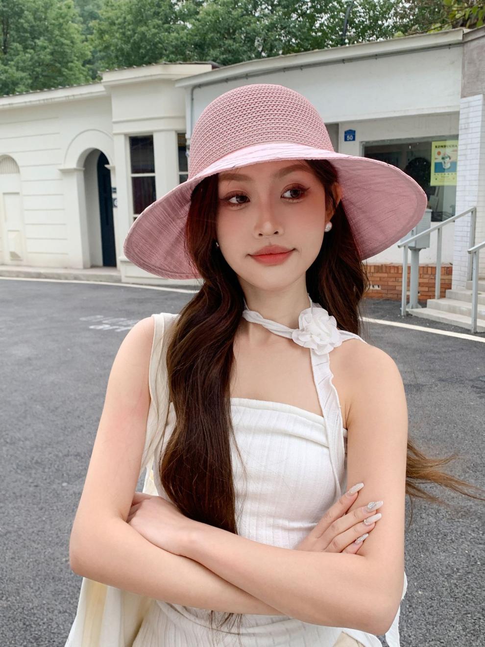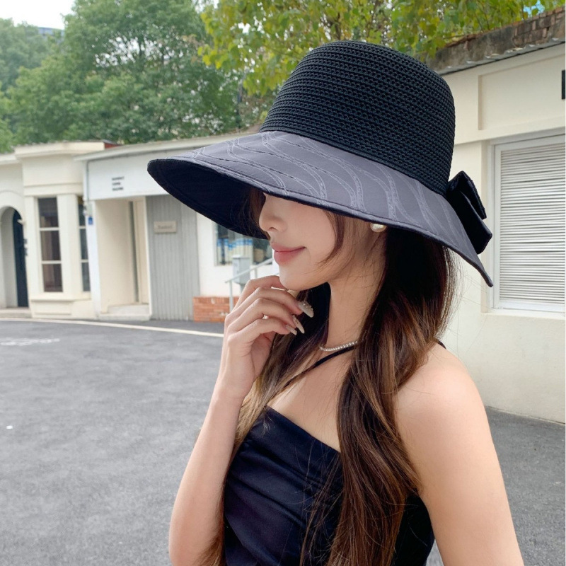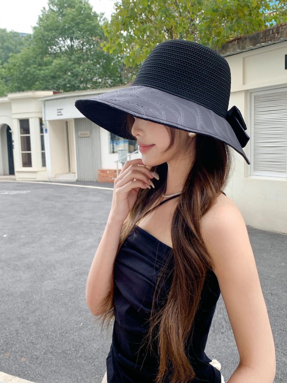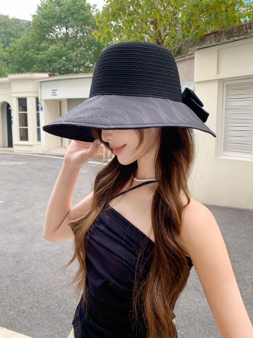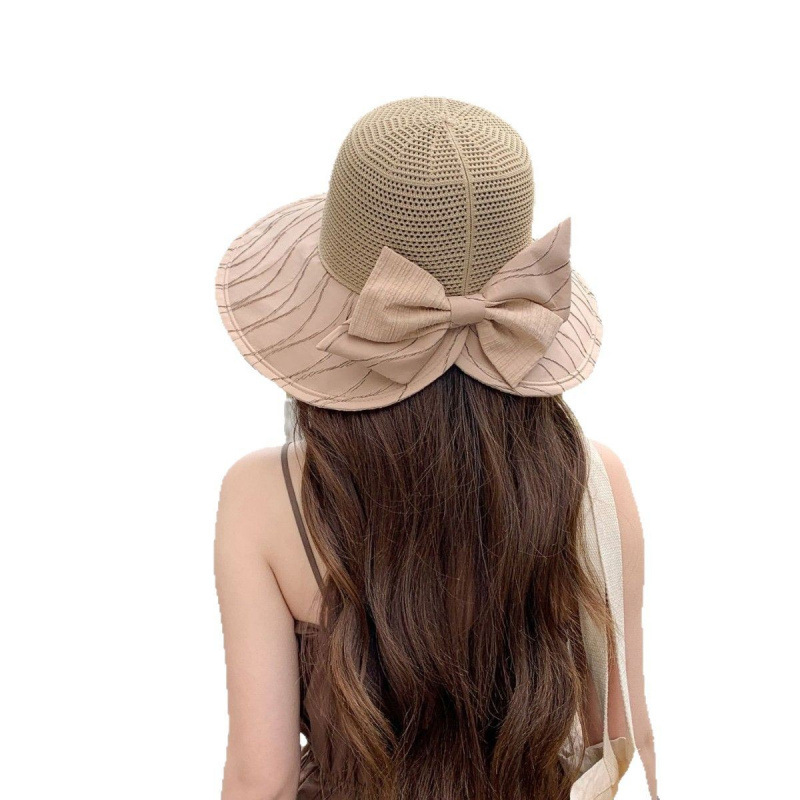 夏季网眼透气渔夫帽女显脸小休闲户外游玩百搭条纹防晒遮阳防晒帽