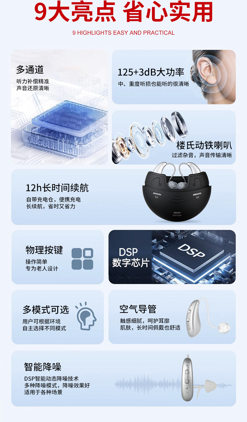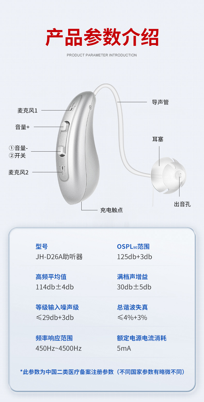 JH-D26A耳背聋式数字助听器空气导管老人声音放大器耳塞式集音器