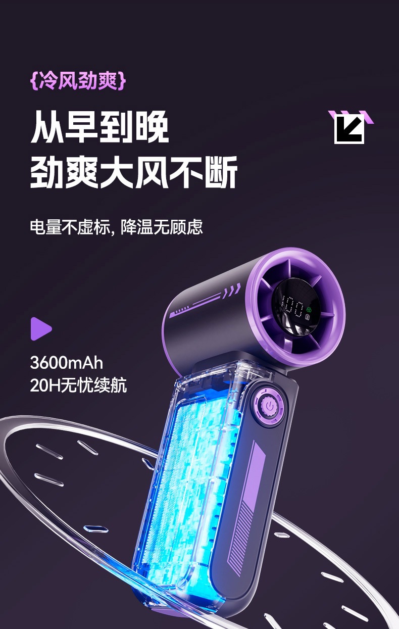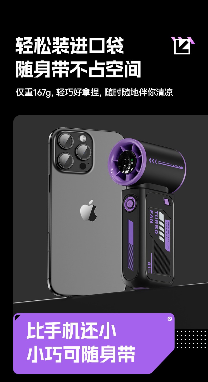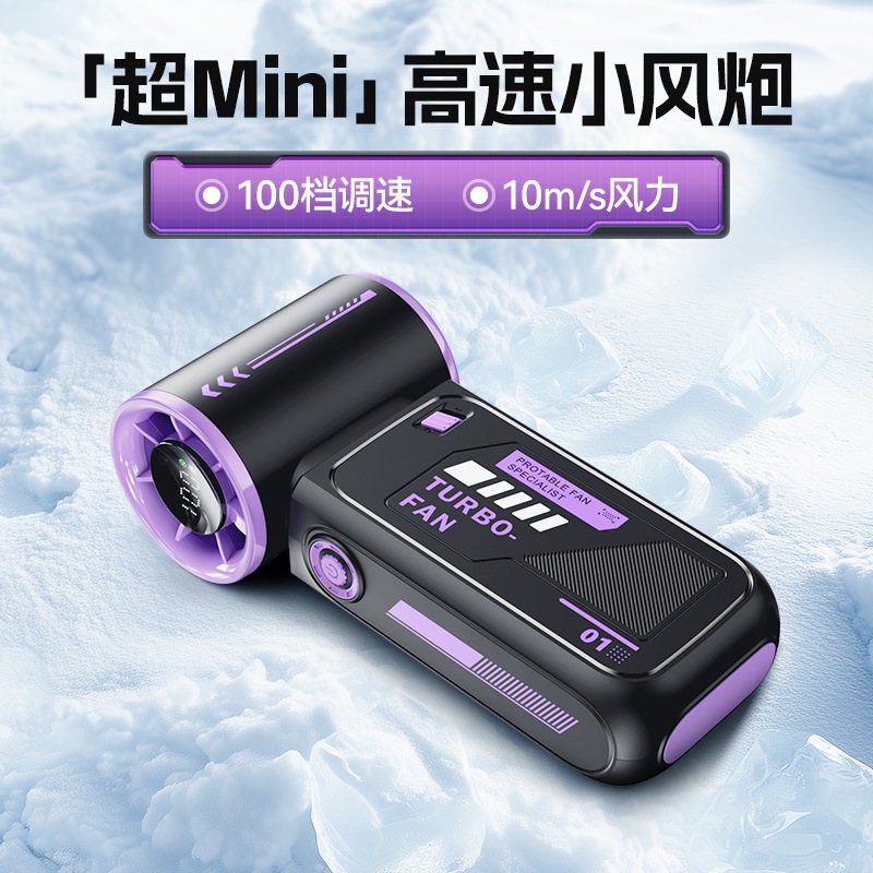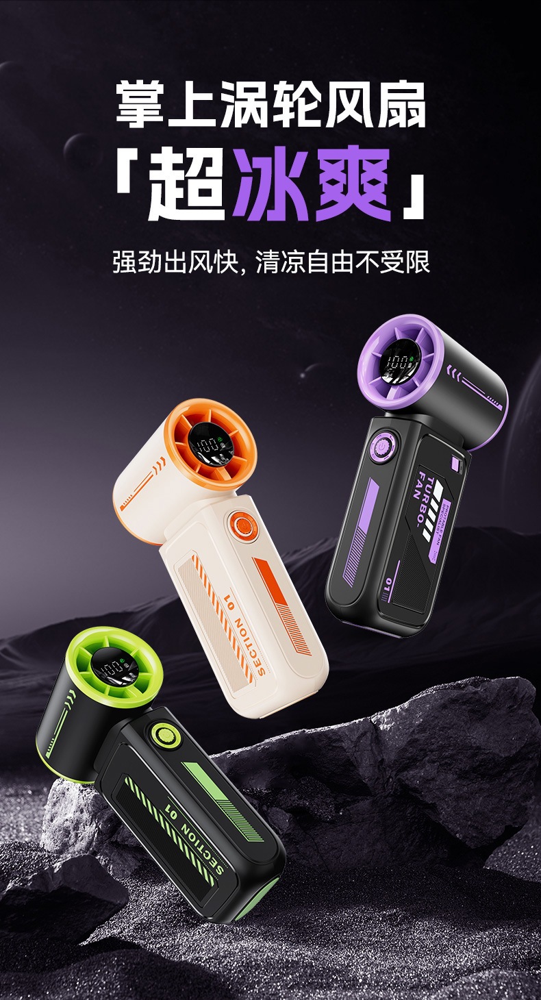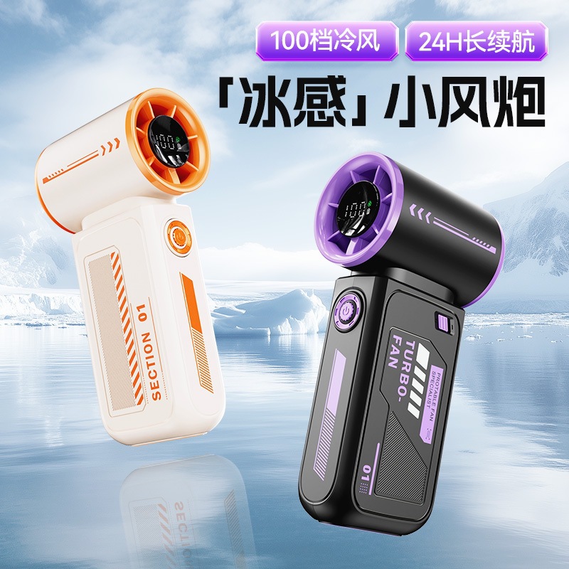 跨境2025新款创意时尚机甲高速涡轮小风炮便携数显手持风扇充电款