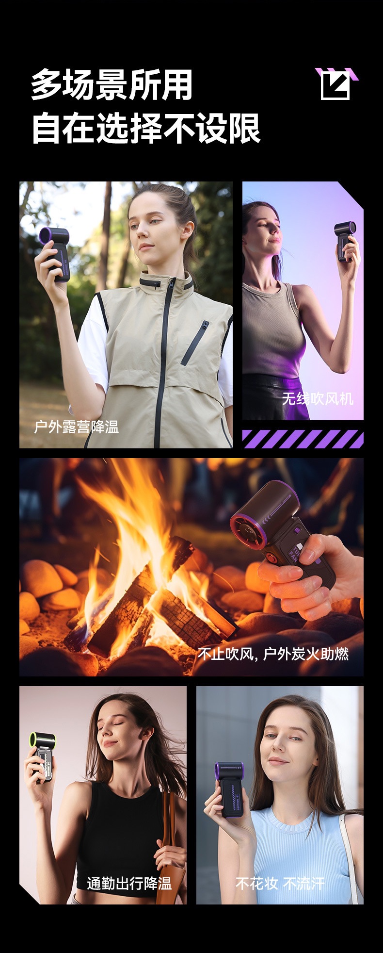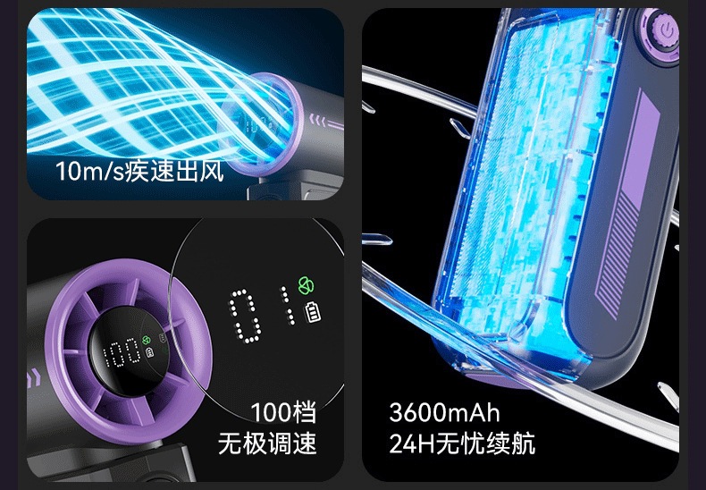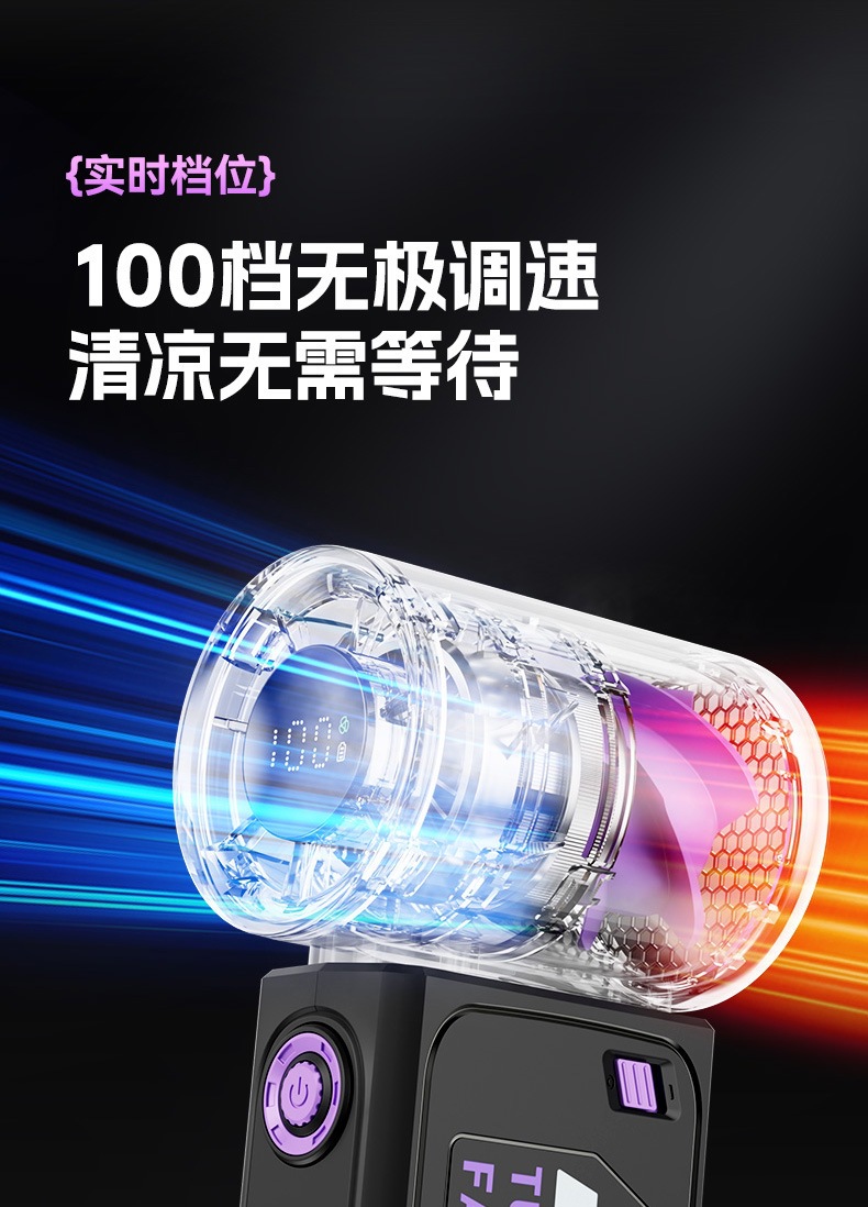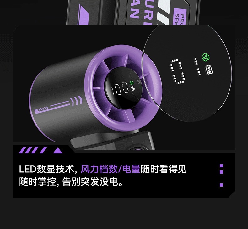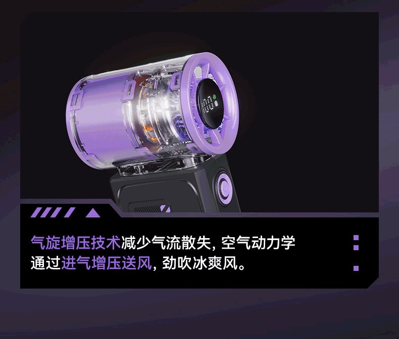 跨境2025新款创意时尚机甲高速涡轮小风炮便携数显手持风扇充电款