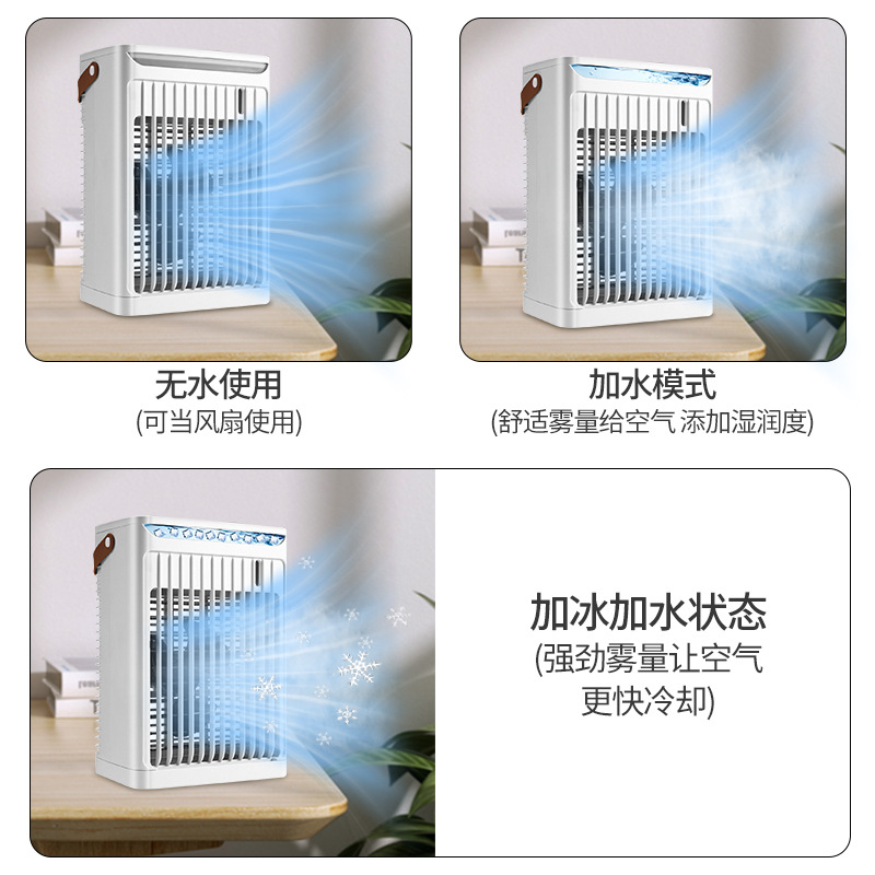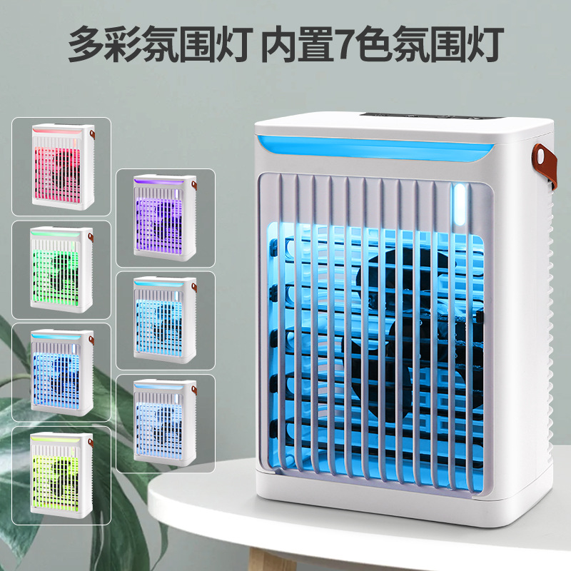 外贸跨境2024新款桌面冷风机加湿器喷雾化空调扇水冷风扇七彩夜灯