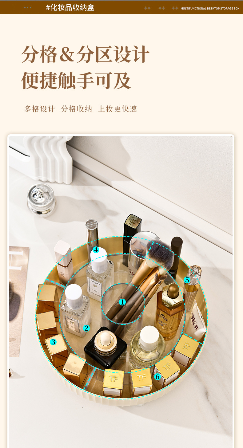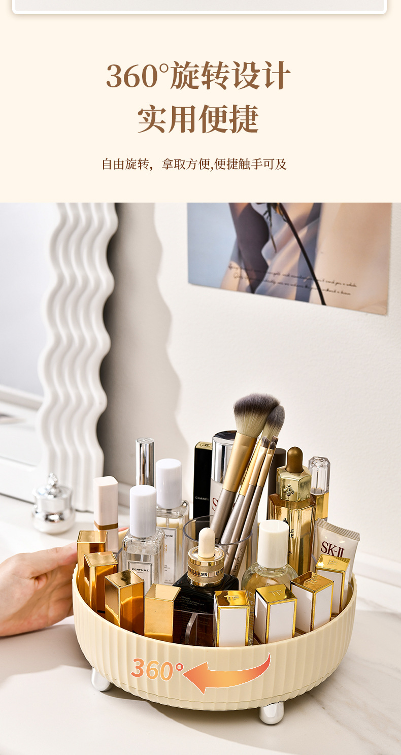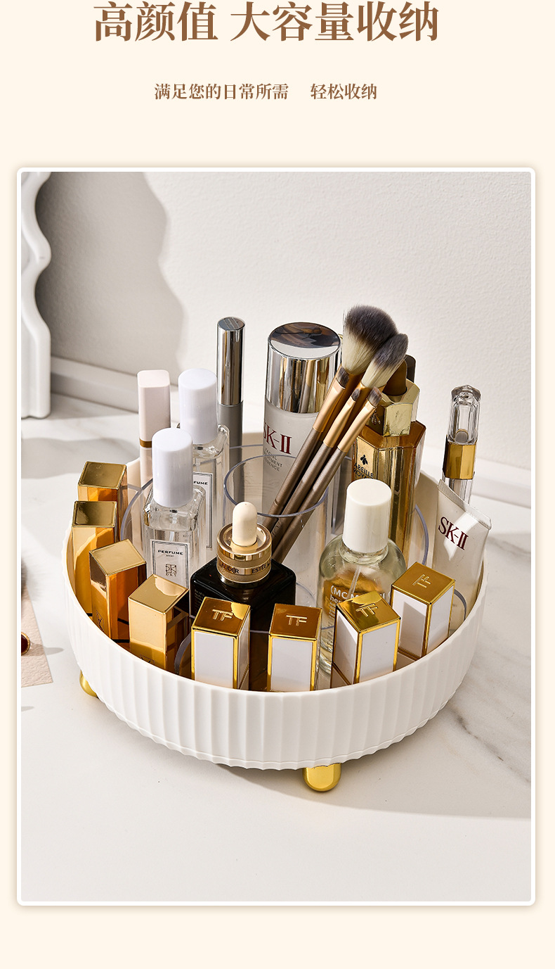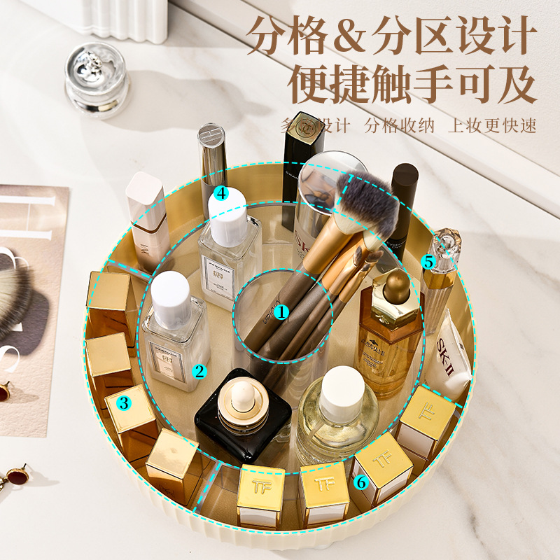 可旋转化妆品收纳盒桌面护肤品口红置物架梳妆台家用分格收纳转盘