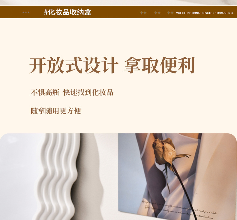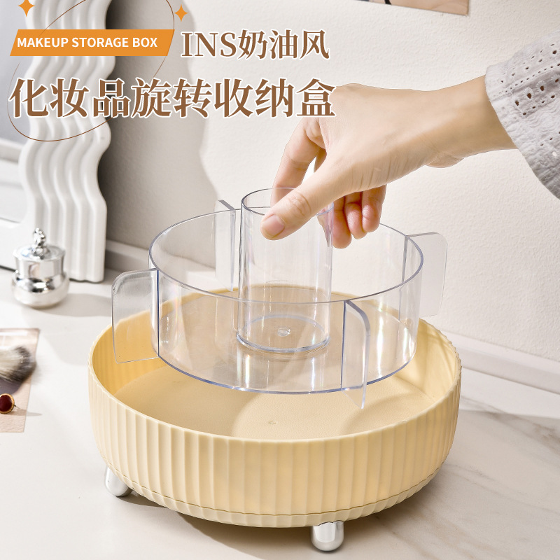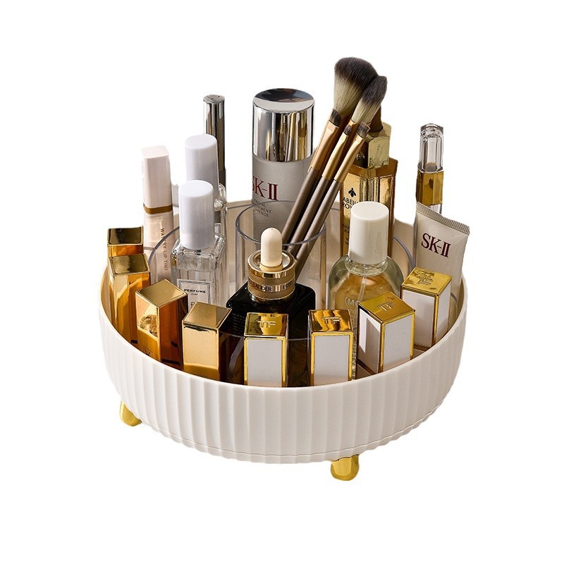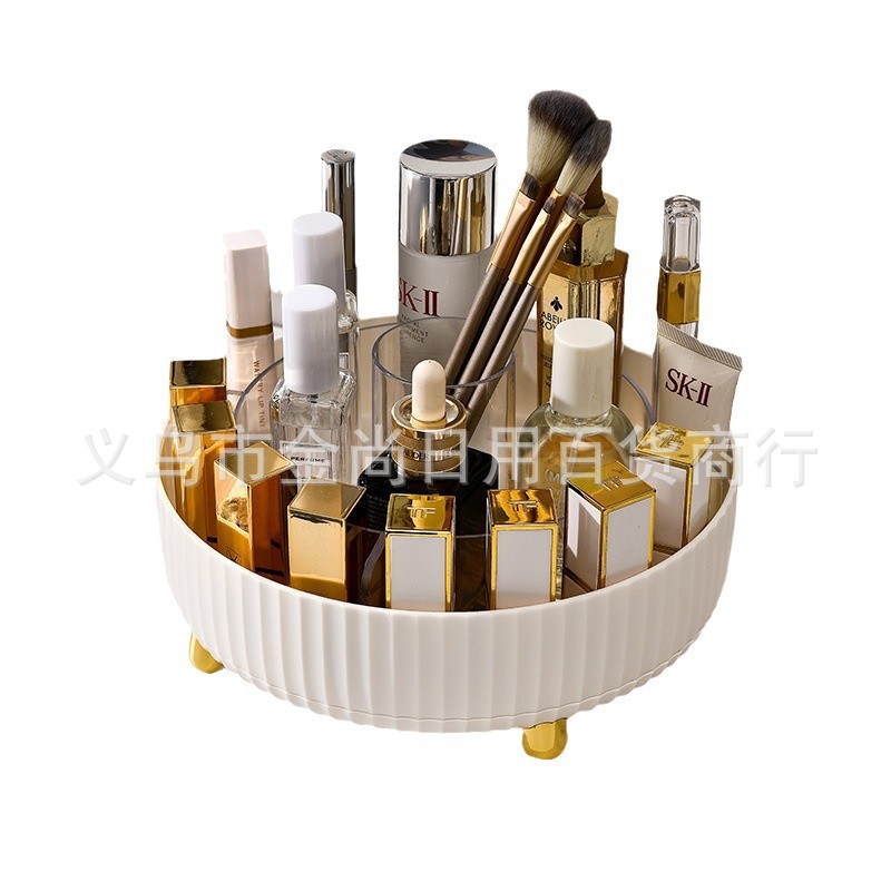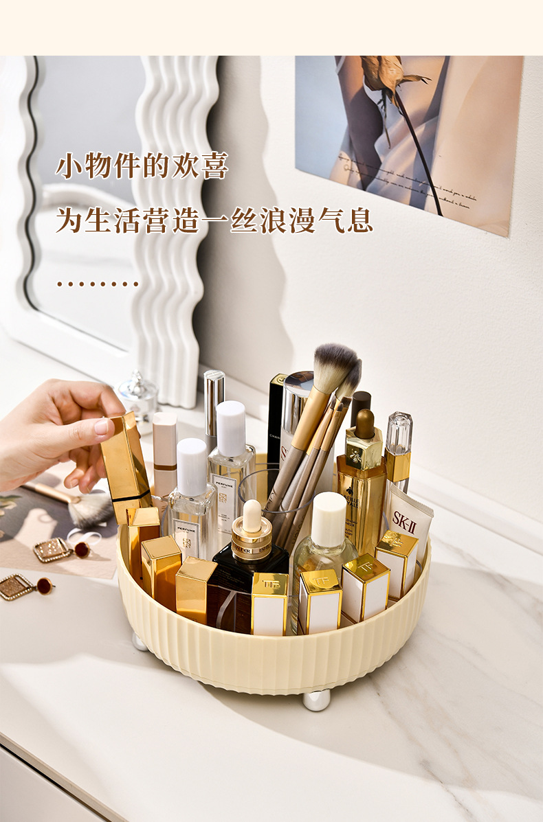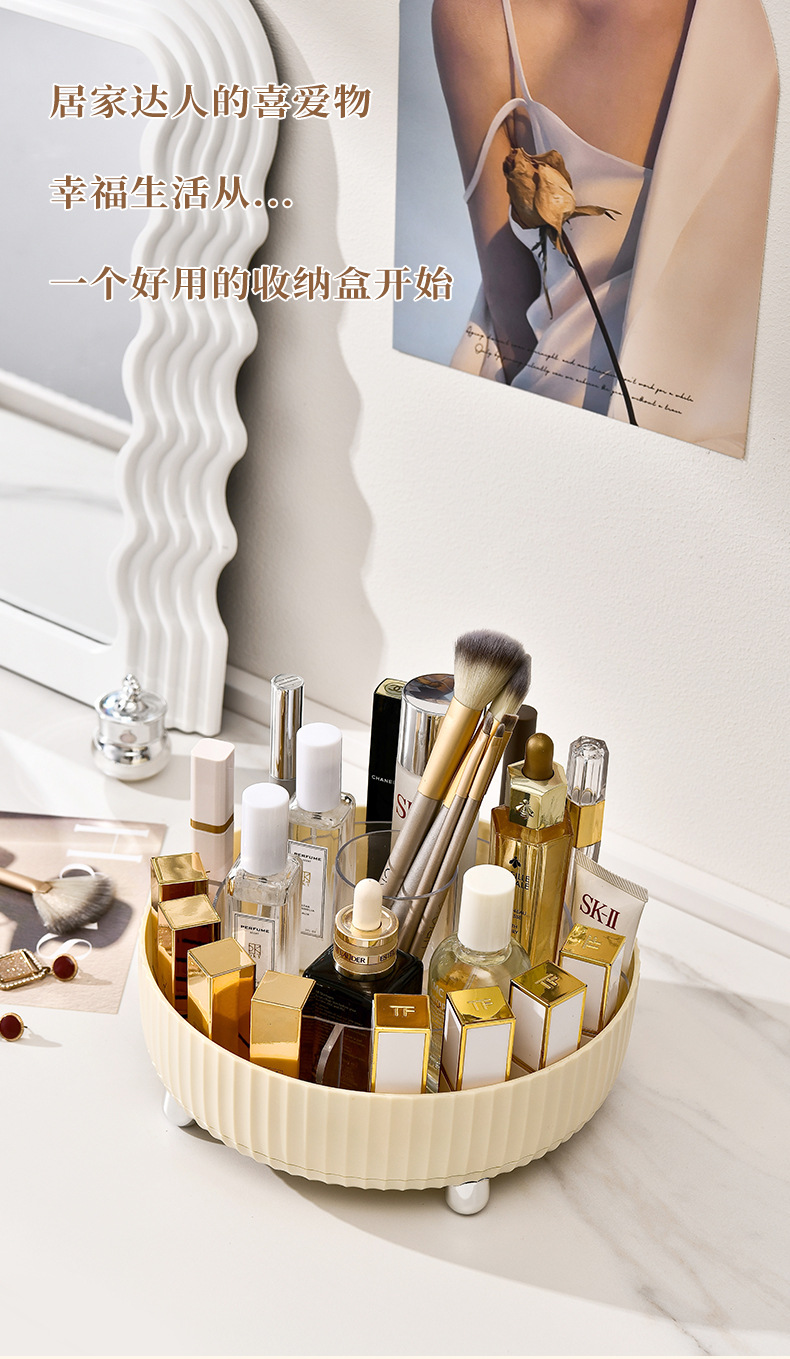 可旋转化妆品收纳盒桌面护肤品口红置物架梳妆台家用分格收纳转盘