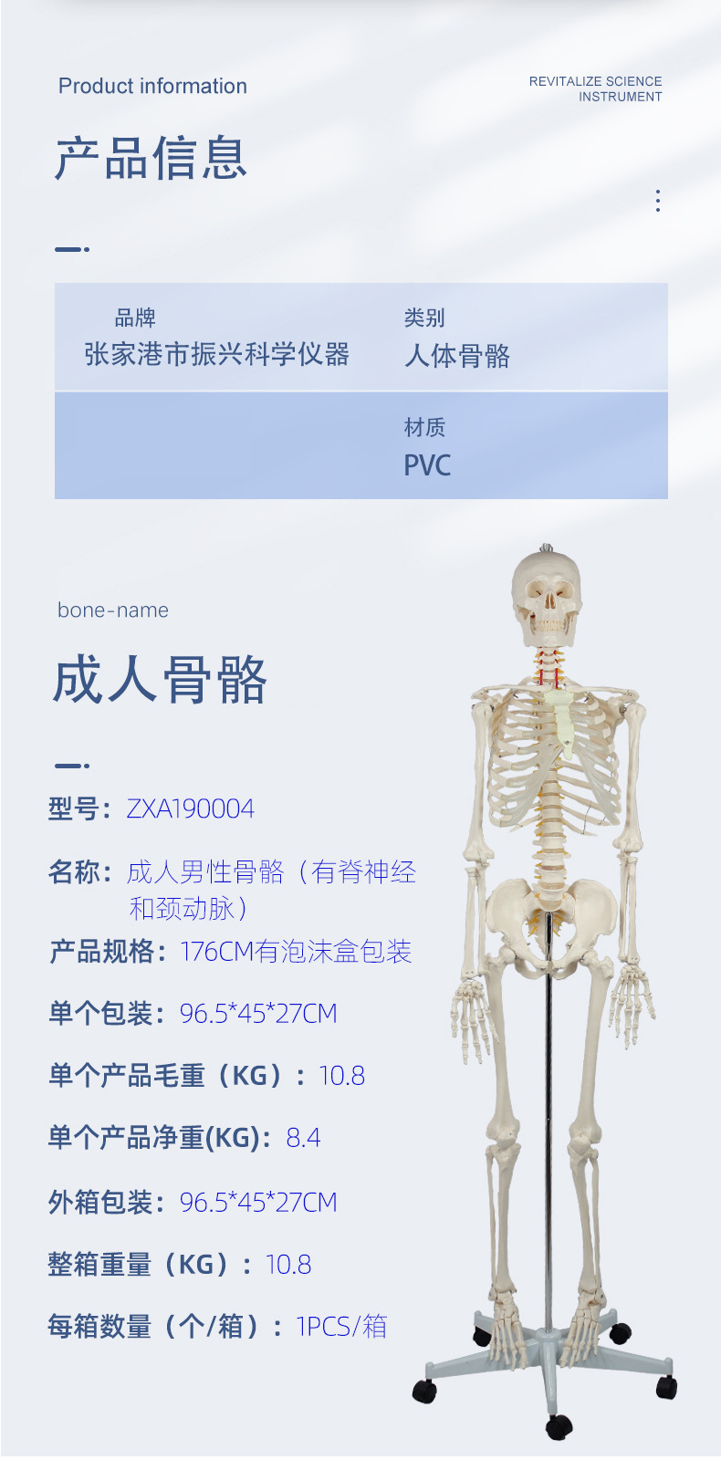 男性骨骼附脊神经和颈动脉全身人体骨骼模型骨骼教学器材仅供出口