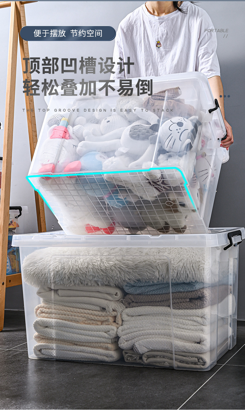 多用途整理箱 大号透明卧室衣服棉被毛衣收纳箱手提防尘杂物衣服