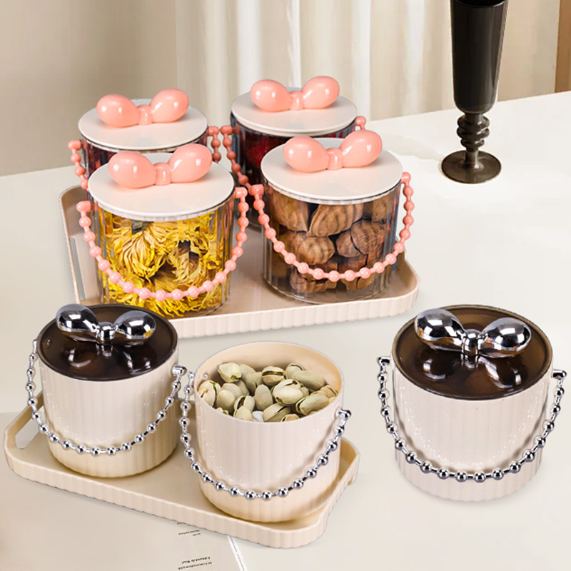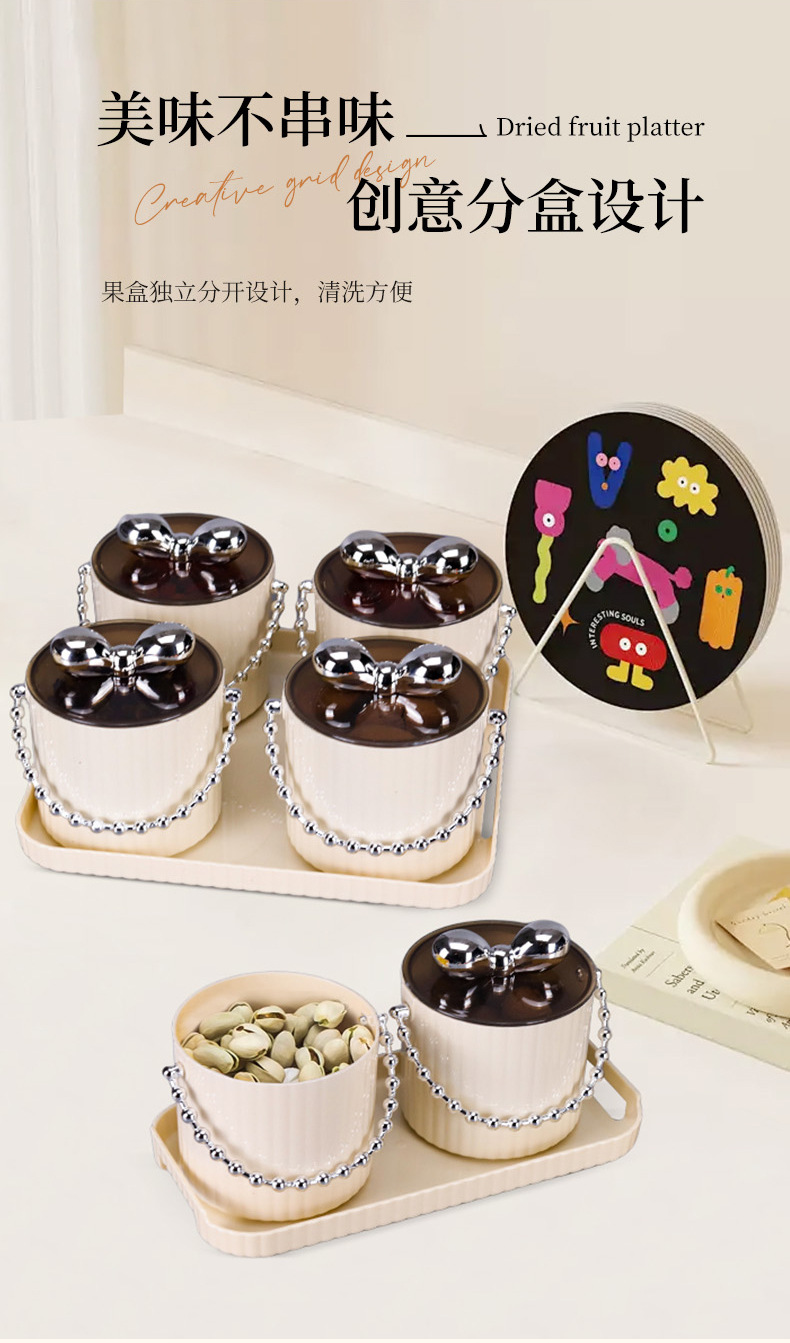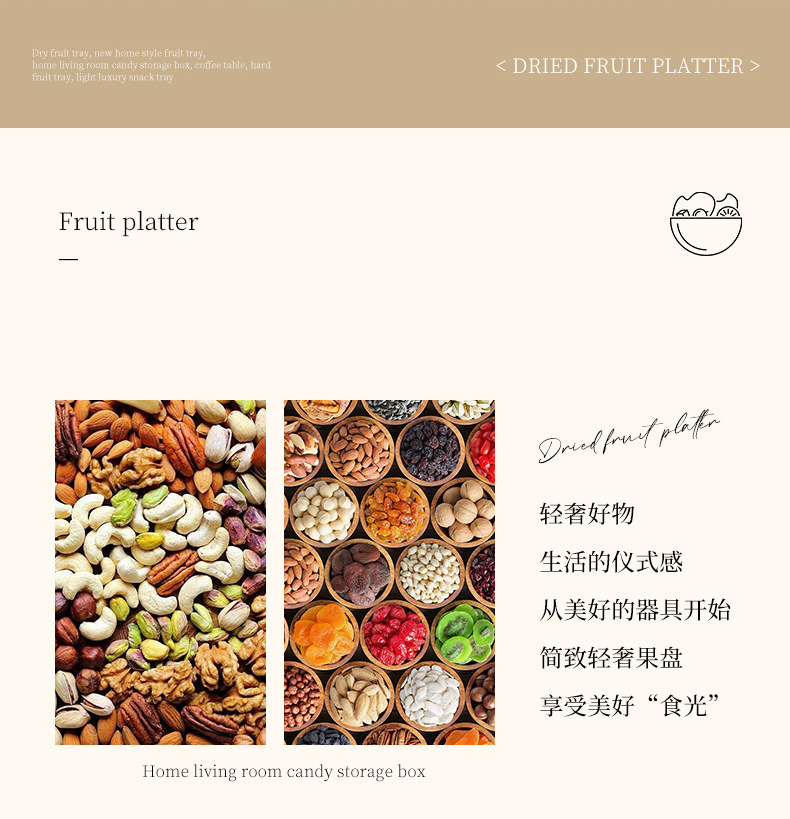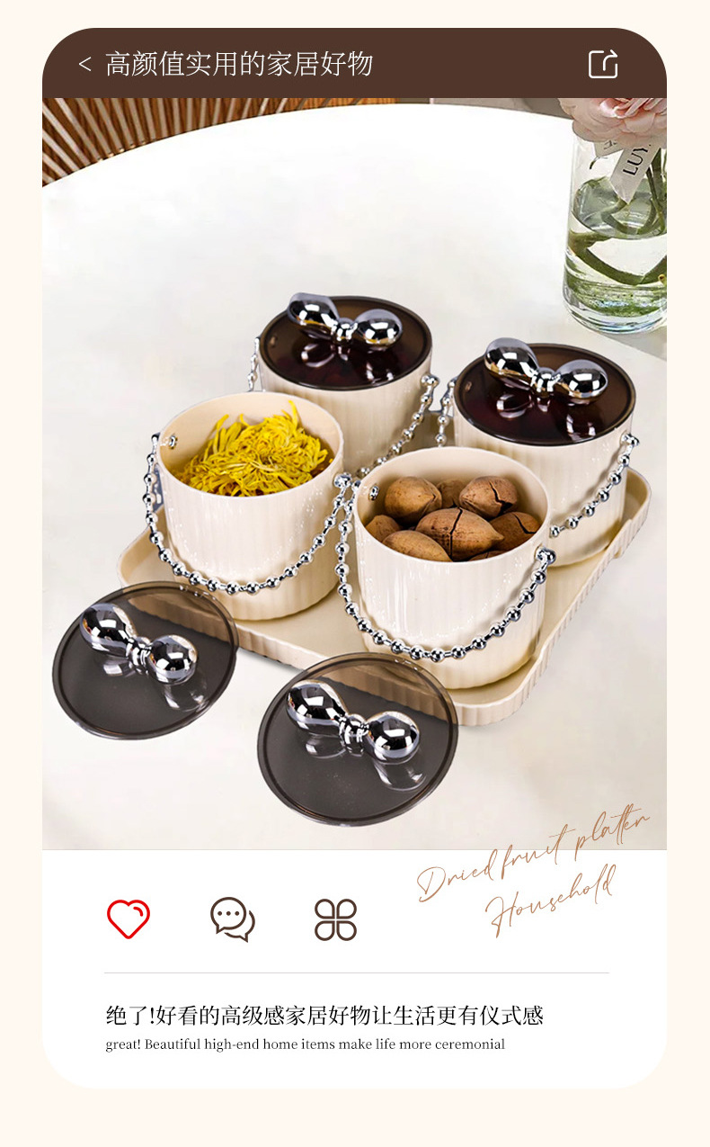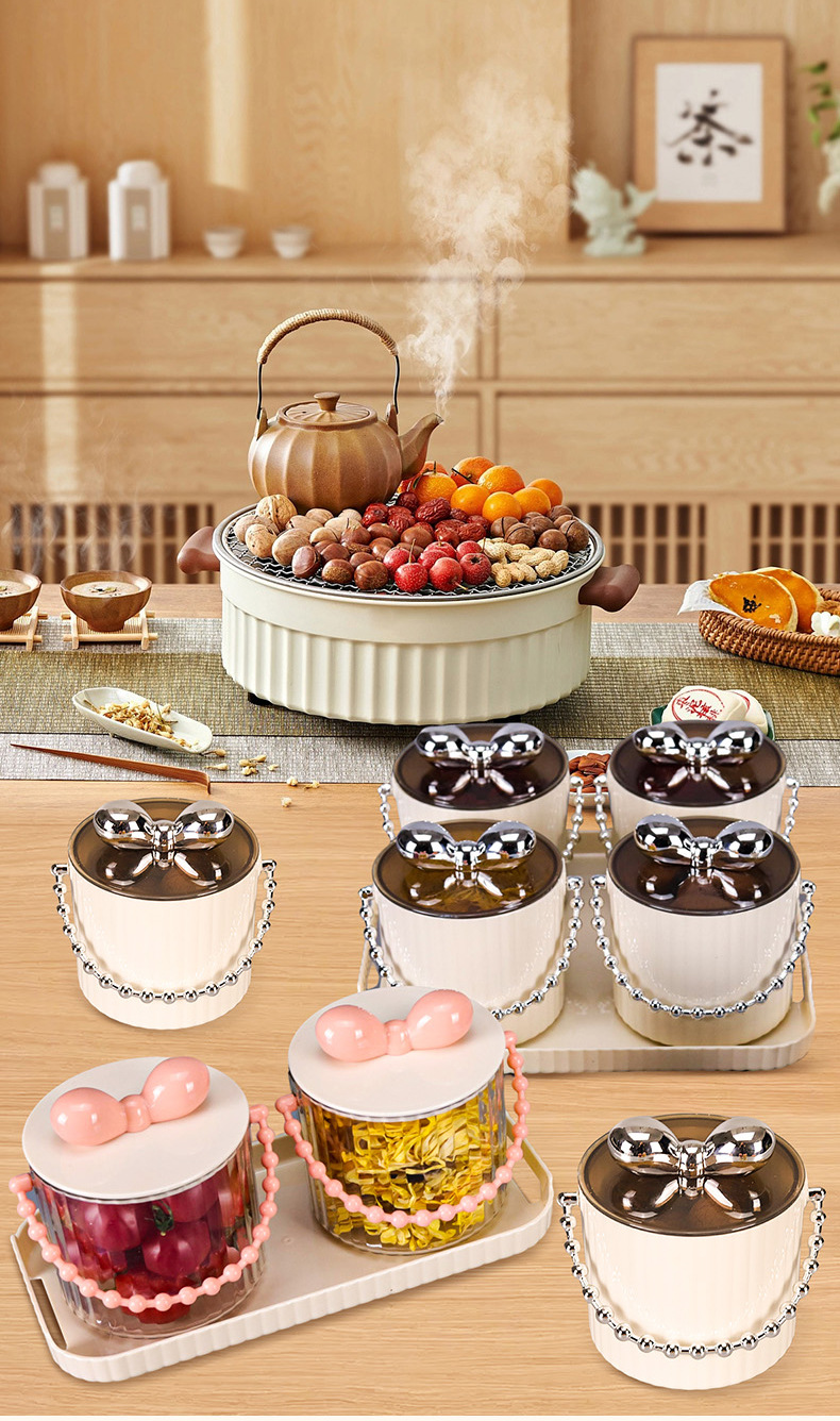 新款家用糖果盒水果盘茶水盘创意轻奢高档奶油风围炉煮茶点心盒