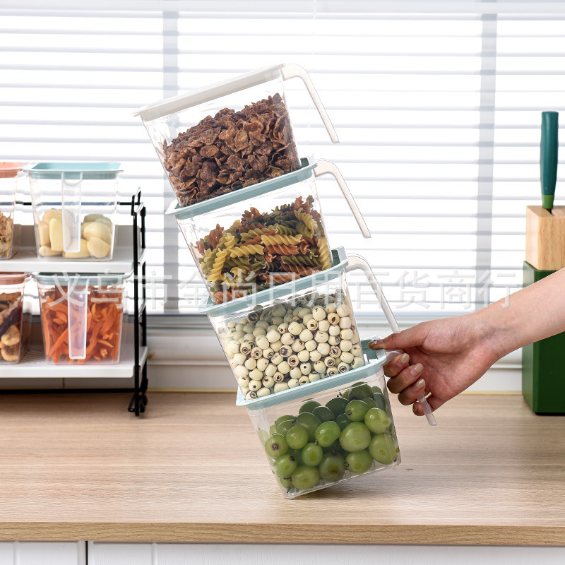 厨房五谷杂粮叠加带手柄收纳盒食物冰箱收纳盒储物盒密封保鲜盒
