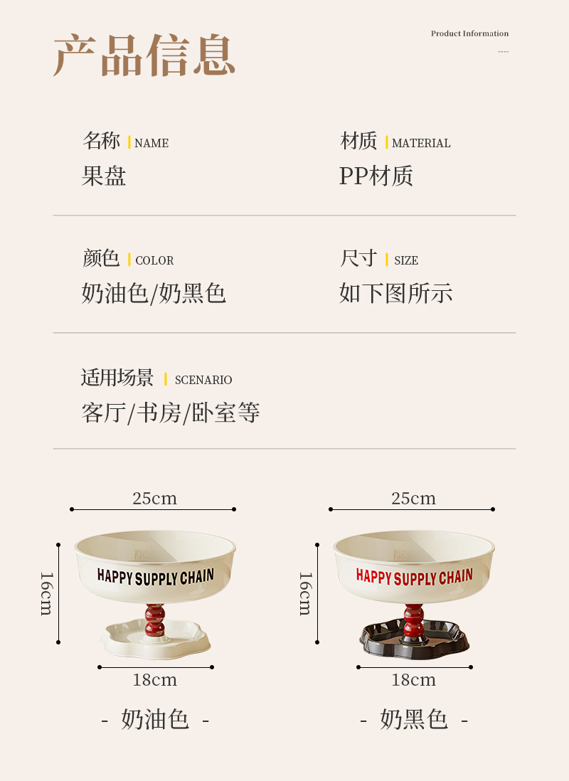 撞色款多巴胺糖果盘新款高脚水果盘客厅家用茶几零食摆放盘新款水