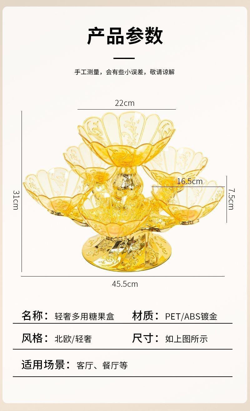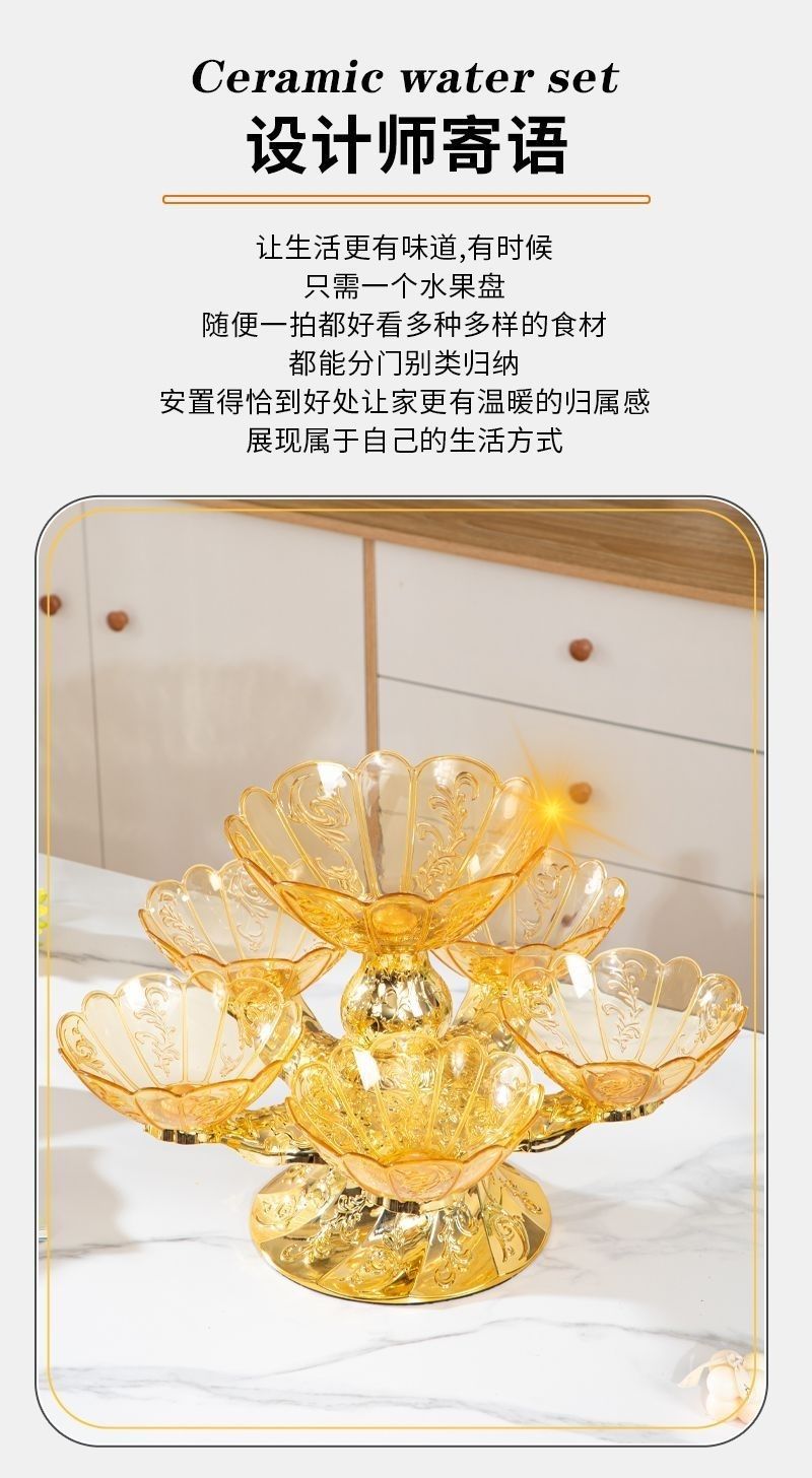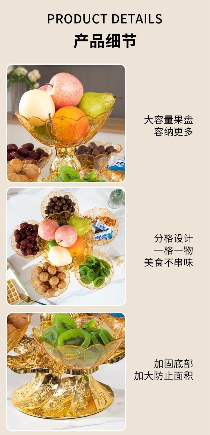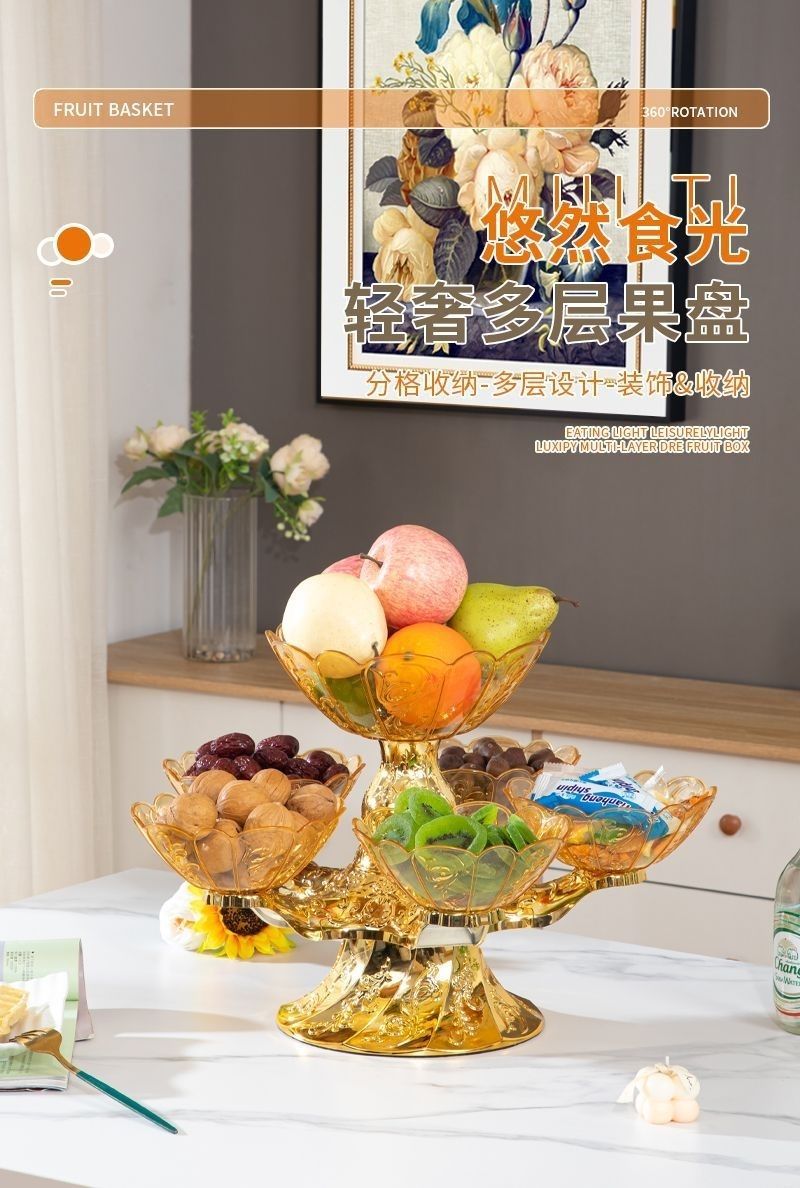 2024新款果盘家用可旋转多层客厅水果盘零食干果糖果轻奢高档水晶